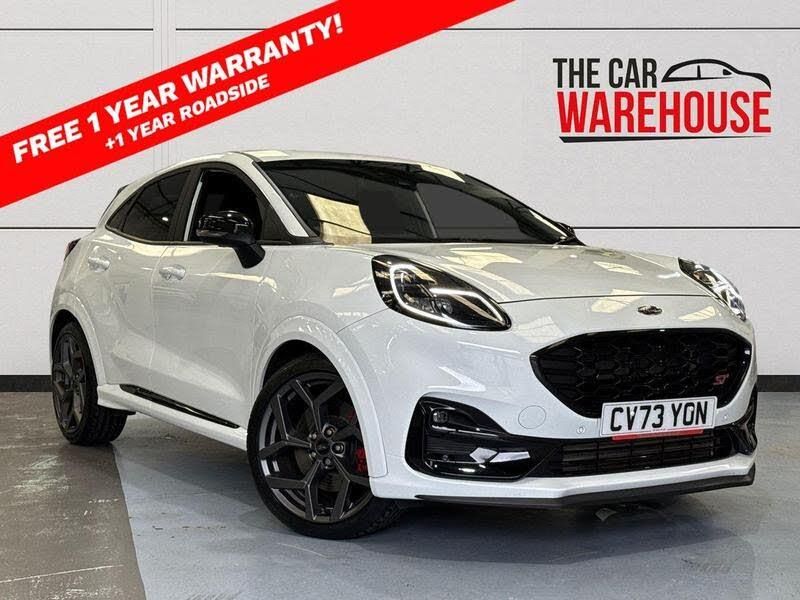 Quickclear heated windscreen, Rear wiper, 3 rear seatbelts, Front and rear head restraints, Third brake light, Front fog lamps, Automatic rain sensing wipers, LED rear lamps, Tyre inflation kit, Red brake calipers, LED daytime running lights, Front and rear parking sensors, Alloy sports pedals, Dual chrome exhaust, Child safety lock, 3 seat bench in 2nd row, Ford easy fuel, Power assist steering, Speed sign recognition, Lane keeping aid with lane departure warning, Tyre pressure monitoring system (TPMS), Cruise control with Intelligent speed assist, B&O Premium Audio system + Ford SYNC 3 navigation pack - Puma, Winter pack - Puma, Thatcham alarm, Carbon look interior deco spears, Privacy glass to side rear windows and tailgate glass, Electronic stability control (ESC) and hill start assist, Front and rear floor mats, Full digital 12.3 instrument cluster, Centre console with armrest and stowage, Ford megabox extended bootspace, Pre collision assist system, Driver impairment monitor, Emergency call service, Engine sound enhancer, Unique ST gear shift knob, ST scuff plates, ST flat bottomed steering wheel with metal grey stitching, ST performance pack - Puma, ST suspension, ST logo projection, 19 5 Spoke magnetite dark finished alloy wheel, Wireless charging pad with electronic air temperature control (EATC), Selectable drive modes (normal, sport, eco, track), Pedestrian/cyclist detection & post-collision braking, Automatic headlights with auto high beam, Power foldable heated door mirrors with puddle lamps and puma logo protection, Ford Performance sensico partial premium leather upholstery with metal grey stitching, Manual 6 way driver seat adjust with lumbar adjustment, Manual 6 way passenger seat with lumbar seat adjustment, Keyless entry and power start button, Fixed LED signature headlamps, Single front passenger seat, Rear side wing doors, Unique ST body styling kit including wing mirrors and Ford Performance embossed splitter