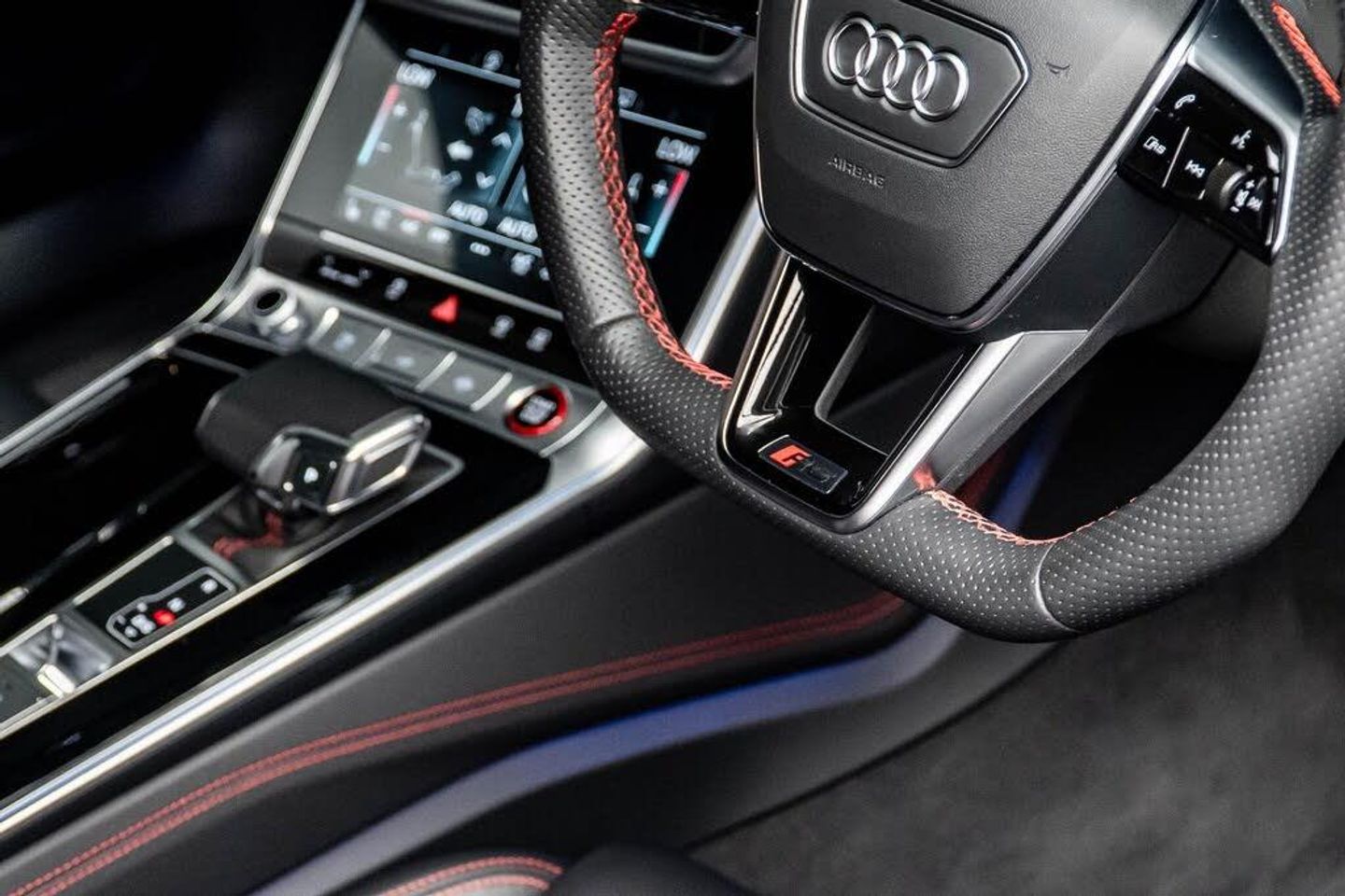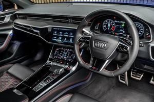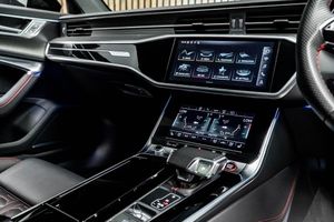 2 USB-C Ports with Charging Functionality in the Rear, 22in Alloy Wheels - Titanium Matt Gloss Turned Finish, 4-Way Electric Lumbar Support, ABS - Anti-Lock Braking System, AMI - Audi Music Interface, Air Quality Pack, Airbags - Driver, Airbags - Front Passenger, Anti-Theft Alarm with Tow-Away Protection, Audi Beam, Audi Connect (3 Year Subscription From New), Audi Connect Safety and Service - e-call, Audi Connect with Amazon Alexa Integration, Audi Drive Select with Efficiency, Audi Pre-Sense Front, Audi Smartphone Interface, Audi Virtual Cockpit with RS Specific Design and 12.3in Display, Auto Dimming and Frameless Rear View Mirror, Black Mirror Housings, Bluetooth Interface, Camera Based Traffic Sign Recognition, City Assist Pack, Cloth Headlining in Black, Comfort and Sound Package, DAB Digital Radio, Deluxe 4-Zone Automatic Climate Control, Direct Tyre Pressure Monitoring System, Dynamic All-Wheel Steering, Electric Steering Column Adjustment, Electric Windows - Front and Rear, Electrically Adjustable Front Seats with Memory Function for Drivers Side, Electromechanical Parking Brake, Extended LED Interior Lighting Package - Multi-Coloured, Extended Pedestrian Protection Measures, Exterior Mirrors -? Electrically Adjustable - Heated - Folding and Automatically-Dimming, First Aid Kit and Warning Triangle, Front Centre Armrest, Front and Rear Floor Mats, Front and Rear Side Airbags with Head Airbag System, Gloss Black Styling Package, HD Matrix LED Headlamps with Audi Laser Light with Dynamic Light Design and Dynamic Turn Signal, Head-Up Display, Headlight Washers, Heated Front and Rear Seats, ISOFIX Child Seat Mounting and Top Tether - Front Passenger Airbag Deactivation, Illuminated Door Sill Trims with RS Logo, Inlays - Fine Grain Ash - Natural Grey-Brown, Keyless Go, LED Rear Combination Lamps with Dynamic Light Design and Dynamic Turn Signal, Lane Departure Warning, Leatherette Upper Instrument Panel and Door Shoulders, MMI Navigation with MMI Touch, Operating Buttons in Gloss Black, Panoramic Glass Sunroof, Pedals and Footrest - Stainless Steel, Power Door Closure, Power Latching for the Doors, Power Operated Tailgate, Privacy Glass, RS Flat Bottomed Leather Multifunction Steering Wheel, RS Rear Spoiler in Body Colour, RS Specific Bumpers - Front Bumper Air Inlets on Both Sides, RS Sports Suspension Plus with Dynamic Ride Control - DRC, RS Steel Brakes with Black Calipers, Radiator Protective Grille in Honeycomb Structure - Gloss Black with Large Front Air Inlets and Rear Diffuser in Gloss Black, Rear Sports Exhaust System - Black, Seat Ventilation for Front Seats, Storage Package, Top Speed Restriction Increase to 174mph, Tour Pack, Towbar Preparation, Voice Control System, Wheel Arch Extensions - Front and Rear, quattro with Sports Differential, RS Steel Brakes with Brake Calipers in Red Gloss, Inlays - Carbon Twill