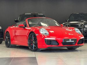 19in Alloy Wheels - Carrera, 3-Point Automatic Seat Belts - Front and Rear with Seat-Mounted Buckles, Analogue Gauges for Engine Speed - Vehicle Speed - Oil Pressure - Oil Temperature - Coolant Temperature - Fuel Tank Level, Ascending Centre Console with Buttons and Storage Boxes, Auto-Deployed Rear Spoiler, Auto-Deploying Roll-Over Protection System, Automatic Headlight Activation including Welcome Home Lighting, Bi-Xenon Headlights, Brake Calipers - Black, Cabriolet Roof - Black, Clothes Hooks on Seat Backrests, Connect Plus, Digital Radio - DAB - DAB+DMB, Door Sill Guards - Model Designation Logo, Electric Parking Brake, Electric Windows Lifts with One Touch Operation and Door-Seal Protection, Electrically Adjustable - Heated - Exterior Mirrors Mounted on the Doors - Aspherical on Drivers Side, Electrically Operated Rear Side Windows, Electromechanical Power Steering with Variable Steering Ratio and Steering Pulse Generator, Engine Immobiliser, Extended Head Restraints Integrated into the Front Seats, Extra Storage Behind the Rear Seat Backrests, Floor Mats, Front Wing - Luggage Compartment Lid - Rear Lid - Doors in Aluminium, Full-Size Airbags for Driver and Front Passenger, Fully Automatic Fabric Hood, Gear Indicator in Rev Counter, Green Tinted Heat-Insulating Glass, Heated Rear Screen, Hood Lining in Black Fabric, Illuminated Vanity Mirrors in Both Sun Visors - LED, Instrument Cluster with Central Rev Counter and High Resolution 4.6inch Colour Display, Instrument Dials and Rev Counter in Black, Integral Electrically Powered Wind Deflector, Integrated 4G-LTE Compatible SIM, Integrated Cluster of Five Round Instruments, LED Reading Lights Orientation Ignition Lock and Vanity Mirror Lighting, Luggage Compartment - Front, McPherson-Strut Suspension with Anti-Roll Bar at Front, Multi-Link Suspension with Anti-Roll Bar at Rear, PASM - Porsche Active Suspension Management with Ride Height Lowered by 10mm, PCM - Porsche Communication Management - Include Navigation, PORSCHE Logotype and Model Designation on Rear Lid in Chrome Look, Pad-Wear Sensors on Each Brake Pad, Park Assist - Rear, Particle-Pollen Filter with Active Carbon Filter, Porsche Side Impact Protection - POSIP, Porsche Stability Management - PSM with ABS with Advance Brake Functions, Power Release Buttons for Front-Rear Luggage Compartments Lids, Pre-Tensioners and Force Limiters at Front, Preparation for ISOFIX Child-Seat Mounting with Switch-Operated Front Passenger, Remote Control for Central Locking and Luggage Compartment Lid Release, SPORT Button to Activate Dynamic Driving Setting for Engine - Transmission - Chassis, Seats - Heated Front, Seats - Split-Folding Rear, Separate Auxiliary Lights in the Front End with LED Indicators and Position Lights, Side Air Intakes at the Front with Active Cooling Air Flaps and Air Blades, Sound Package Plus, Sports Seats - 4-Way Electric, Sports Steering Wheel with Manual Fore-Aft and Height Adjustment, Steering Wheel - Smooth Leather, Storage Compartment in Each Door, Three-Dimensional LED Taillights with Integral 4-Point Brake Lights, Twin-Tract Exhaust System with Twin Single-Tube Tailpipes in Stainless Steel, Two Individual Cupholders, Two Sockets - 12-Volt in Passenger Footwell and Glove Compartment, Two-Zone Automatic Climate Control, Tyre Pressure Monitoring - TPM, Tyre Sealing Compound and Electric Air Compressor, Windscreen Washer System with Two Wiper Speeds and Washer Jets, Windscreen with Grey Top-Tint