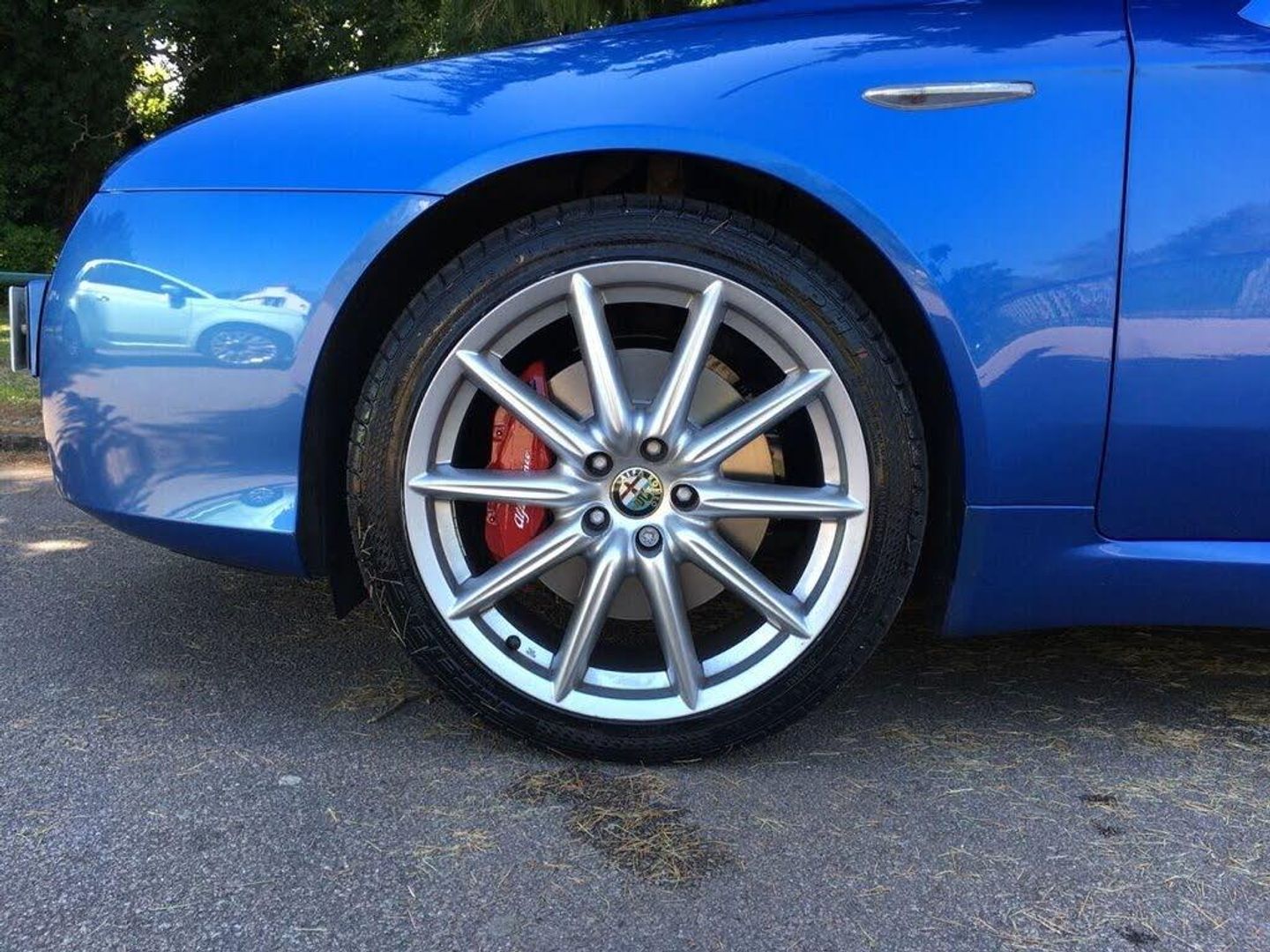 Hi-Fi BOSE Sound System+Digital Amplifier+Woofer, Metallic Paint, Poltrona Frau Leather (Natural), Montecarlo Blue, Satellite Navigation Syst. by Maps CONNECT syst., Sat nav with colour display + hands free phone + voice controls + CD changer, Poltrona Frau leather electric/heated seats + driver door mirror memory - Ferrari natural Beige, Hi-fi BOSE sound system with digital amplifier (8 speakers + 1 central + subwoofer), 19" Alloy wheels, Metallic - Misano blue, Brake pad wear/brake failure sensor, Cruise control, Engine start/stop button, Multi function display, Oil level gauge, PAS, Rear Park assist, Service interval indicator, Trip computer, Alfa Romeo branded aluminium brake callipers, Drivers knee airbag, Fire prevention system, Front passenger airbag deactivation, Front seatbelt pretensioners + load limiters, Front side airbags, Full size driver and passenger airbags, Seatbelt warning, VDC with hill holder (ABS + ASR + EBD + Brake assist), Window airbags, Alfa code immobiliser, Inclination sensor, Remote central locking/doors + fuel cap + boot, Volumetric anti theft alarm, Radio/CD, Air quality control system, Ambient interior lighting, Dual zone automatic climate control, Front armrest with storage compartment + controlled temperature box, Front courtesy lights, Front door puddle lamps, Front headrests, Front reading lights, Height/reach adjust steering wheel, Illuminated glovebox, Illuminated sun visor mirrors, Illumination of luggage compartment, Leather steering wheel and gear knob with steering wheel mounted radio/phone controls, Pollen/active carbon filters, Sports seats, Stainless steel kick plates, Velour floor carpets, Body coloured bumpers, Body coloured door mirrors, Electric adjustable/heated/folding door mirrors, Electric front windows + one touch + anti-pinch, Electric hood, Follow me home headlights, Front fog lights, Tinted windows, Twin chromed exhaust pipes, Wind deflector, Windscreen washer jets, Brushed aluminium centre console, Brushed aluminium trim, Space saver spare wheel