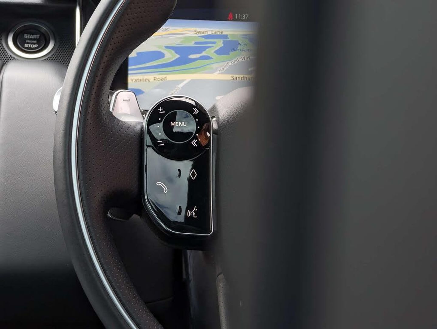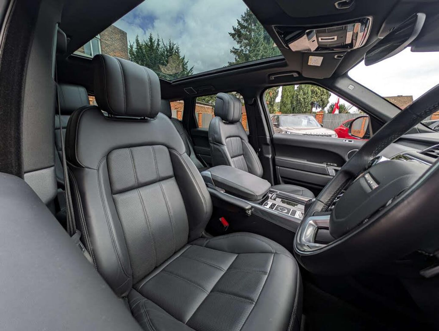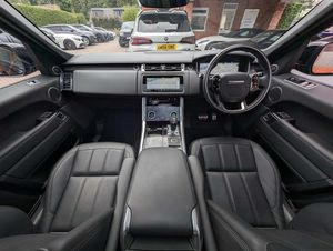 Santorini Black with Ebony perforated Windsor leather, electrically adjustable front seats with memory, heated fronts seat, heated rear seats, 4-way lumbar support, heated steering wheel, Ebony Morzine headlining, satin chrome gearshift paddles, door mirrors in a gloss black finish, side vents in a gloss black finish, door handles in body-colour, body-coloured roof, fixed panoramic sunroof, electronic air suspension, 21in style 9012 alloy wheels in a gloss black finish, Android Auto, Apple CarPlay, DAB Radio, Bluetooth telephone/audio connectivity, satellite navigation centre, Meridian surround sound system, voice activated controls, pro services, Wi-Fi hotspot, InControl protect, rear-view camera system, 2-zone climate control, cruise control, front/rear parking aid, terrain response 2 with dynamic progress, all terrain progress control, autonomous emergency braking level 2 (city, urban + pedestrian), lane departure warning system, hands-free powered tailgate, privacy glass, heated windscreen, keyless entry/start, tyre pressure monitoring system, power-folding heated door mirrors with memory functionality, auto-dimming rear-view mirror, illuminated treadplates with model script, highline ambient lighting, headlamp power wash, daytime running lamps, full service history.