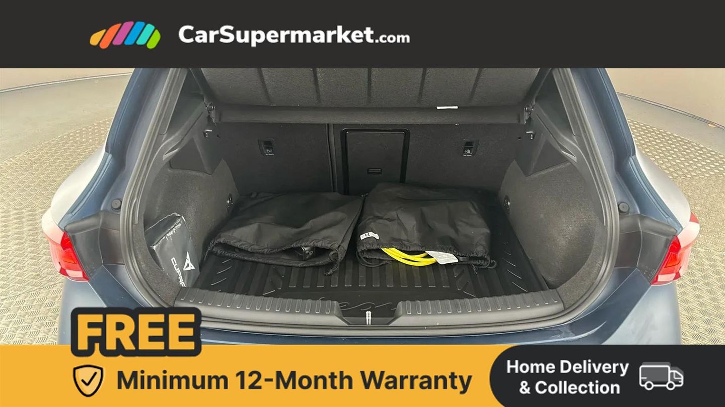 CUPRA drive profile selection with 4 modes (Comfort/Cupra/Sport/Individual), throttle response and gearshift mode,Digital cockpit,E-call,Four x USB Type C ports,Front assist with forward collision warning braking reaction to vehicles, pedestrians and cyclists,Full link smartphone integration with Mirror Link, wireless Apple CarPlay and wired Google Android Auto,Lane assist,Lockable tailgate,Park assist (inc front/rear parking sensors),Rear view camera,RPM, trip computer, outside temp gauge, instrument light brightness, low fuel warning light, lights on reminder, gearshift indicator,Service interval indicator,Start/stop system with regenerative braking,Wireless phone charger,10 amp mode 2 charging cable,16 amp mode 3 charging cable,3.6 kw On-board charger,Standard suspension,XDS electronic differential lock and dynamic traction support,Auxiliary input socket,Auto dimming rear view mirror,Body colour door handles,Body coloured bumpers,Cupra sports bumpers,Dark tinted rear windows,Electric front/rear windows,Electrically adjustable, heated and folding door mirrors,LED front fog lamps with cornering function,LED rear fog lamp,Matrix LED Headlights with variable light distribution, Matrix Beam and Dynamic headlight range control,Rain sensing wipers,Rear coast to coast lighting,Rear diffuser with twin exhaust pipe on each side with simulated exhausts,Rear side wing doors,Rear wash/wipe,Separate daytime running light with automatic headlight control and coming home feature,Third brake light,12v power supply in centre console,3 seat bench in 2nd row,5 headrests,60/40 split rear bench seat with armrest,Ambient lighting (glovebox, footwell, ambient lighting multicoloured),Black headlining,Cupra sports pedals,CUPRA Supersports, heated steering wheel with satellite buttons,Dust/pollen filter,Folding boot cover,Front and rear reading lights X 4,Front centre armrest,Heated front seats,Height/reach adjust steering wheel,Illuminated interior front door sills,Interior wraparound lighting,ISOFIX points in outer rear seats with top tether anchorage points,Luggage tie-down hooks,Nappa leather upholstery,Powered driver seat with memory and manual height adjustment for passenger,Powered lumbar adjustment on driver side, manual on passenger side,Single front passenger seat,Sports bucket seats,Storage pockets on rear of front seats,Sunvisors with illuminated mirror,Three zone climate control,Dynamic and comfort pack - Leon Cupra,Media system plus with navigation pack - Leon Cupra,Safety and driving pack (XL) - Cupra leon,3 point seatbelts on all rear seats,ABS,Brake control system - ESC and brake booster,Child proof door locks,Cupra black brake calipers,Driver and front passenger airbags with front passenger airbag de-activation, front side and curtain airbags,Electronic parking brake,Extended safety system - seat belt tensioner, window closure and hazard lights,Hill hold control,Rear disc brakes,Seat belt reminder for front and rear seats,Tiredness recognition system,Tyre pressure monitoring system,Anti theft alarm system with interior monitoring in cab, backup horn and towing protection,KESSY Advanced - Keyless start, keyless entry,Locking wheel bolts,Chrome and copper interior detailing,Copper stitching on dashboard trim,19" Aerodynamic machined sport black and silver alloy wheels with 91Y tyres,Breakdown kit,Tool kit
