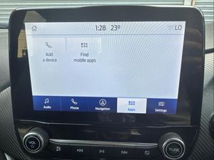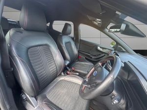 18in Alloy Wheels - 5-Spoke - Matt Black Machined Finish, ABS - Anti-lock Braking System, Acoustic Laminated Windscreen, Active Grille Shutter, Alloy Sports Pedals, Automatic Headlights with Rain-Sensing Wipers and Auto High Beam, B&O Premium Audio System and Ford SYNC 3 Navigation, Carbon-Look Interior Deco Spears, Centre Console with Armrest - Stowage, Courtesy Lights - Ambient LED Courtesy Lighting - Single Colour, Cruise Control - Lane Keeping Aid and Lane Departure Warning, Driver Assistance Pack, Driver and Passenger Seat Lumbar and Height Adjustment, ESC - Electronic Stability Control and Hill Start Assist, Electric Windows - Front and Rear, Electronic Air Temperature Control - EATC, Fixed LED Headlamps, Floor Mats - Front and Rear, Ford Easy Fuel System, Ford MegaBox Extended Bootspace, Front Bumper - Unique ST-Line Sport Design - Body Colour, Front Fog Lights with Cornering lights and LED Rear Lamps, Full Digital 12.3in Instrument Cluster, Headliner - Deluxe, Instrument Panel - High Level, Locking Wheel Nuts, Lower Bodyside Moulding - Body Colour, Post Collision Braking, Power Liftgate, Power Steering, Power-Foldable Heated Door Mirrors with Puddle Lamps, Pre-Collision Assist with Autonomous Emergency Braking and Pedestrian-Cyclist Detection, Privacy Glass, Projector Headlamps with LED Daytime Running Lights, Puma Badge, Quickclear Heated Windscreen, Rear Bumper Body Colour - Diffuser, Rear Parking Sensors, Rear Seats - 2-Way Head Restraint Up-Down, Rear Seats - Second Row 60-40 Folding Seats, Restrain Device Pack, ST-Line Badge, ST-Line Bodykit with Large Rear Spoiler and Sports Suspension, ST-Line Flat-Bottomed Sensico Steering Wheel - Leather Handbrake and Aluminium Gear Knob, ST-Line X First Edition Pack, Selectable Driving Modes - Normal - Eco - Sport - Slippery and Trail, Speed Limiter, Thatcham Alarm, Trip-Fuel Computer, Tyre Pressure Monitoring System - TPMS, Tyre Repair Kit, Wireless Charging, Black Contrast Roof, Comfort Pack, Agate Black, 19in Alloy Wheels - 5-Spoke - Matt Black Machined Finish