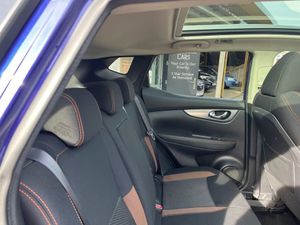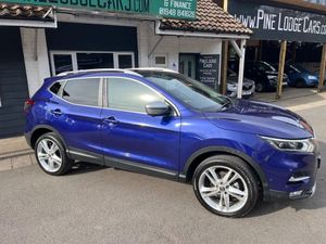 19in Alloy Wheels - Ibiscus, 3 Height Adjustable Rear Headrests, 6 Speakers, 60-40 Split Rear Folding Seats, AM-FM-CD Audio System with DAB, AUX Socket for MP3 Player, Advanced Drive Assist Display - 5in TFT Coloured Screen, Ambient Lighting Centre Console, Auto Wipers, AutoHold Function - Stand Still Assist, Bluetooth with Audio Streaming, Body Coloured Handles, Boot Light, Carbon Graphite Dash Trim, Centre Console Storage and Armrest, Chrome Glass Surround, Chrome Interior Door Handles, Cruise Control with Speed Limiter, Daytime Running Lights Dip Function When Turn Signal Applied, Driver Seat Height Adjustment, Driver-Passenger-Side and Curtain Airbags, Drivers Seat with Manual Lumbar Support, Dual Zone Climate Control Air Conditioning, ESP ABS EBD and Brake Assist, Electric Heated Auto-Folding Door Mirrors, Electric Parking Brake, Electric Speed-Sensitive Power Steering, Front 12v Power Sockets x2, Front Fog Lights, Front and Rear Door Pockets with Drink Holders, Front and Rear Electric Windows, Front and Rear Seat Belts with Load Limiter and Pretensioners, Front and Rear Seatbelt Warning, Front and Rear Styling Pack, Glass Roof Pack, Gloss Silver Door Mirror Caps, Height Adjustable Front Head Restraints, Height Adjustable Front Seatbelts, Hill Start Assist, ISOFIX Child Seat Anchoring Points - Rear x2, Individual Rear Seat Reading Lights, Intelligent Around View Monitor, Intelligent Auto Headlight, Intelligent Park Assist, Interior Ambient Lighting, LED Pack, LED Signature Daytime Running Lights, Leather D Shaped Steering Wheel, Leather Gear Lever, Leather Knee Pad, Luggage Board System, Matt Silver Roof Rails, Monoform Front Seats with Plastic Backboard, Nissan Anti Theft System Immobiliser, Nissan Chassis Controls, Nissan Connect 7in Touchscreen Navigation and Entertainment System, Nissan Intelligent Key, One Touch 4 x Auto Windows with Illuminated Switches, Outside Temperature Sensor, Parcel Shelf - Stow Function Under Luggage Board, Passenger Airbag Deactivation System, Passengers Seat with Manual Lumbar Support, Pollen Filter, Puncture Repair Kit, Rear Door Child Locks, Rear Roof Spoiler, Rear View Camera, Rear Wiper with Reverse Link, Remote Audio Control, Remote Central Locking with Superlocking, Safety Shield Plus, Seats - Passengers Height Adjustment, Selectable Steering - Normal or Sport, Smart Vision Pack, Smartphone App Integration, Start Push Button, Steering Wheel Mounted Audio Controls, Synthetic Leather Wrapped Door Handle with Contrasting Stitching, TPMS - Tyre Pressure Monitoring System, Tech Pack, Thatcham Category 1 Alarm, Tilt and Telescopic Adjustable Steering Wheel, Trip Computer, USB Port, Underbody Vortex Generators