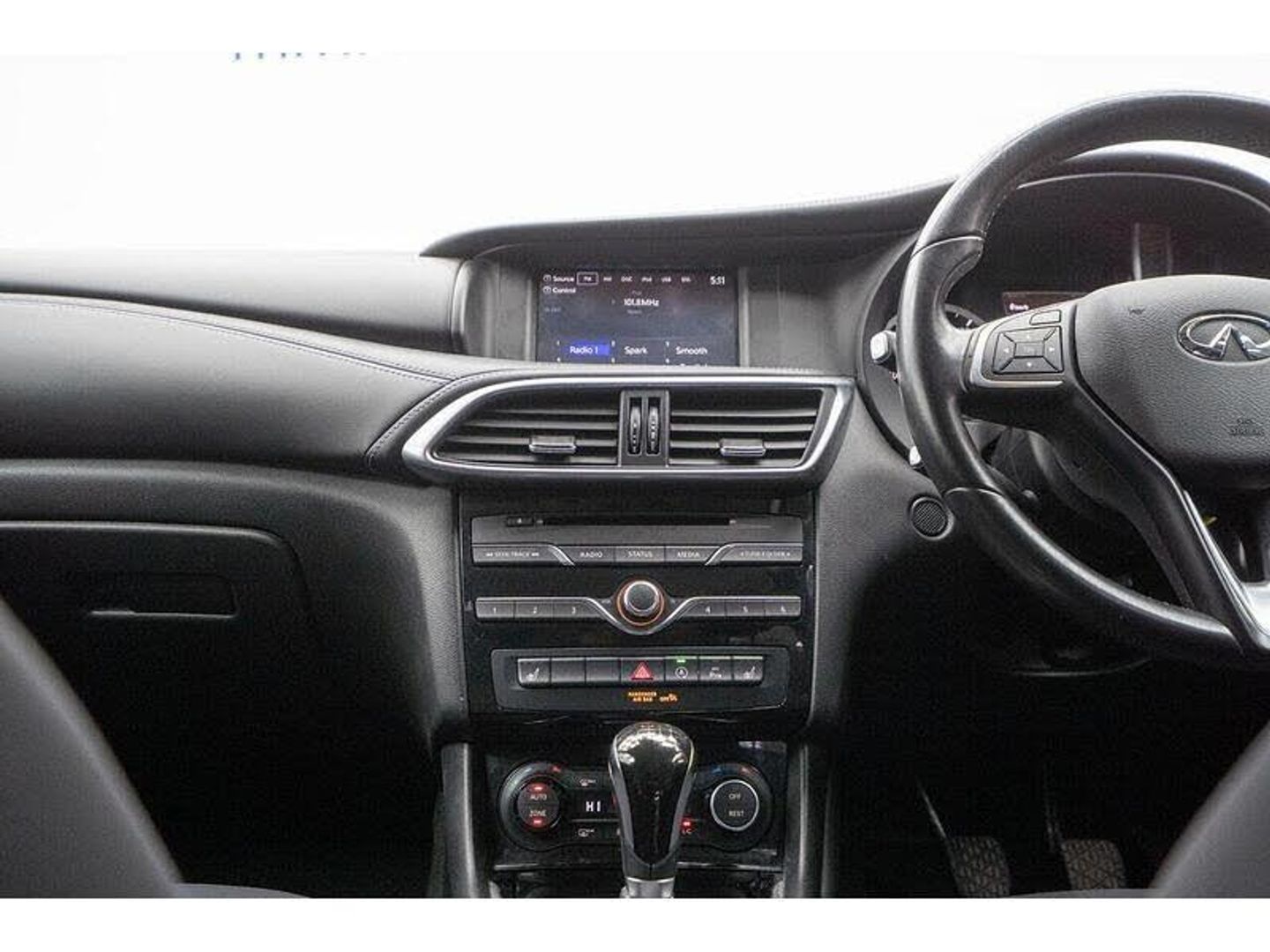 18in Alloy Wheels - 5 Double-Spoke Light, 2 USB Ports with Smart Phone and iPod Connectivity, 40-60 Split-Folding Rear Seat Back, 4-Wheel Anti-Lock Braking System - ABS - Electronic Brake Force Distribution - EBD - Traction Control System - TCS and Vehicle Dynamic Control - VDC, 6 Speaker Sound System, 7 Airbags, Adaptive Brake Assist, Adaptive Front-Lighting System - AFS, Aluminium Kick Plates with Purple Insert, AM-FM Audio System with Single CD Player, Attraction Light, Auto Dimming Driver Door Mirror, Auto Dimming Rear View Mirror, Automatic Air Conditioning with Dual Zone Climate Control and Rear Vent Centre Console, Automatic Headlight Activation, Black Lacquer Roof-Side Spoiler, Bluetooth Audio Streaming with Phone Book Functionality, Body Coloured Exterior Door Handles, Cruise Control, Dashboard - Alcantara Finisher, Drivers Power Lumbar Support, Electronic Parking Brake, Fog Lights - Black Lacquer Finishers, Forward Collision Warning and Stop, Front and Rear One Touch Up and Down Electric Windows, Front Centre Armrest, Front Fog Lights - LED, Front Passenger Footwell Net, Heated and Electrically Adjustable Exterior Mirrors with Power Folding, Heated Front Seats, Heated Windscreen Washer Jets, Height Adjustment on Driver and Passenger Seat, Hill Start Assist, Immobiliser, Infiniti InTouch - Navigation System, ISOFIX Seat Mounting Points in the Rear, Key Fob - Purple Insert, LDW - Lane Departure Warning, Leather Steering Wheel and Gear Shift Lever, LED Auto-Levelling Headlights, LED Daytime Running Lights, LED Rear Combination Lights, Multifunction Steering Wheel, Privacy Glass for Rear Side and Tailgate, Puddle Lamps on Door Mirrors, Rain Sensing Wipers, Reach and Rake Adjustment for Steering Column, Rear Parking Sensors, Remote Central Locking, Satin Chrome Window Trim, Satin Silver Door Mirrors with LED Turning Signal, Side Sills - Black Lacquer, Smart Beam - Auto High-Low Beam, Speed Limiter, Speed Sensitive Power Steering Assistance, Touch Screen Infotainment System - LCD VGA 7, Tyre Pressure Monitor System - TPMS - Warning, Tyre Repair Kit, Ultrasonic Alarm System, Voice Recognition System, Wheel Arch Mouldings - Black Lacquer