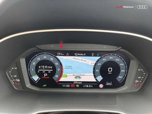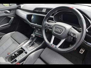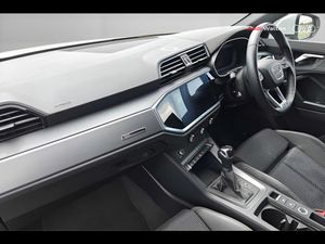 Audi connect safety and service (e-call), Audi drive select, Audi lane departure warning, Audi Virtual Cockpit - 10.25" display, Bluetooth interface, Camera based traffic sign recognition, MMI Navigation Plus with high resolution 10.1 inch touchscreen colour display, Power operated tailgate, Progressive steering, Service interval indicator, Smartphone interface includes wireless Apple carplay/Android Auto, Start stop system with recuperation, Voice control system with natural language interaction, 3 pin 10 amp domestic charging cable, Standard suspension, Type 2 mode 3 32 amp charging cable, Type 2 socket for AC charging, 2 USB-C ports with charge and data functions, 6 passive loudspeakers, DAB digital radio module, Acoustic windscreen, Aluminium window trim, Auto dimming frameless rear view mirror, Diffuser grille in grained matt black, Diffuser trim in selenite silver, Electrically folding, adjustable and heated door mirrors with integrated LED side indicators and kerb view function for passenger side, Front and rear electric windows, Front fog lights, Front side air inlets in selenite silver, Front underbody protection in manhattan grey paint finish, Grille surround in aluminium silver matt, High gloss black finish B and C pillars, LED headlights with LED daytime running lights and dynamic rear indicator, LED rear lights, Privacy glass dark tinted rear and rear-side windows (from B-pillar backwards), Radiator grille in titanium black with inlay in matt aluminium silver, Rain and light sensors, Rear side wing doors, Rear underbody protection in matt black, Rear wiper, S line badges on front wings, Side skirt insert in matt Platinium grey, Third brake light, Tinted rear windows, Variable front intermittent wipers, 12V socket in rear centre console, 3 seat bench in 2nd row, 40:20:40 folding with manual adjustment for 60:40 forwards/backwards position and backrest angle, Adjustable rear seat bench/backrest with centre armrest and cupholder, Black cloth headlining, Dual zone electronic climate control, Front and rear black floor mats with contrast stitching, Front and rear headrests, Front and rear roof module including reading lights, Front centre armrest, Glove compartment lighting, Height and reach adjustable steering wheel, Illuminated door sill trims with S logo, ISOFIX child seat mounting for front passenger with airbag deactivation and outer rear seat including top tether attachment point for outer rear seats, Luggage compartment light, Manual front seats with height adjustment, Perforated leather gearknob, Single front passenger seat, Stainless steel luggage compartment sill finisher, Stainless steel pedals, Non smoking pack - Q3, 3x3 point rear seatbelts, 6 airbags - Driver, front passenger, curtain and side windows, Audi pre-sense front with pedestrain and cyclist recognition, Electrically operated child locks on rear doors, Electromechanical parking brake, Electronic stabilisation control including ABS, ASR and EDL, Front seatbelt reminder, Hill descent control, Hill hold assist, Pre sense basic, Seatbelt monitoring, Tyre pressure warning, Warning triangle and first aid kit, Anti theft alarm, Anti theft wheel bolts, Immobiliser, Remote central locking, Black dashboard, Dark matt brushed aluminium inlay, Detail dashboard around MMI touch colour display in glass look, black with surround in aluminium look, Leatherette door armrest, Tool kit, Tyre repair kit