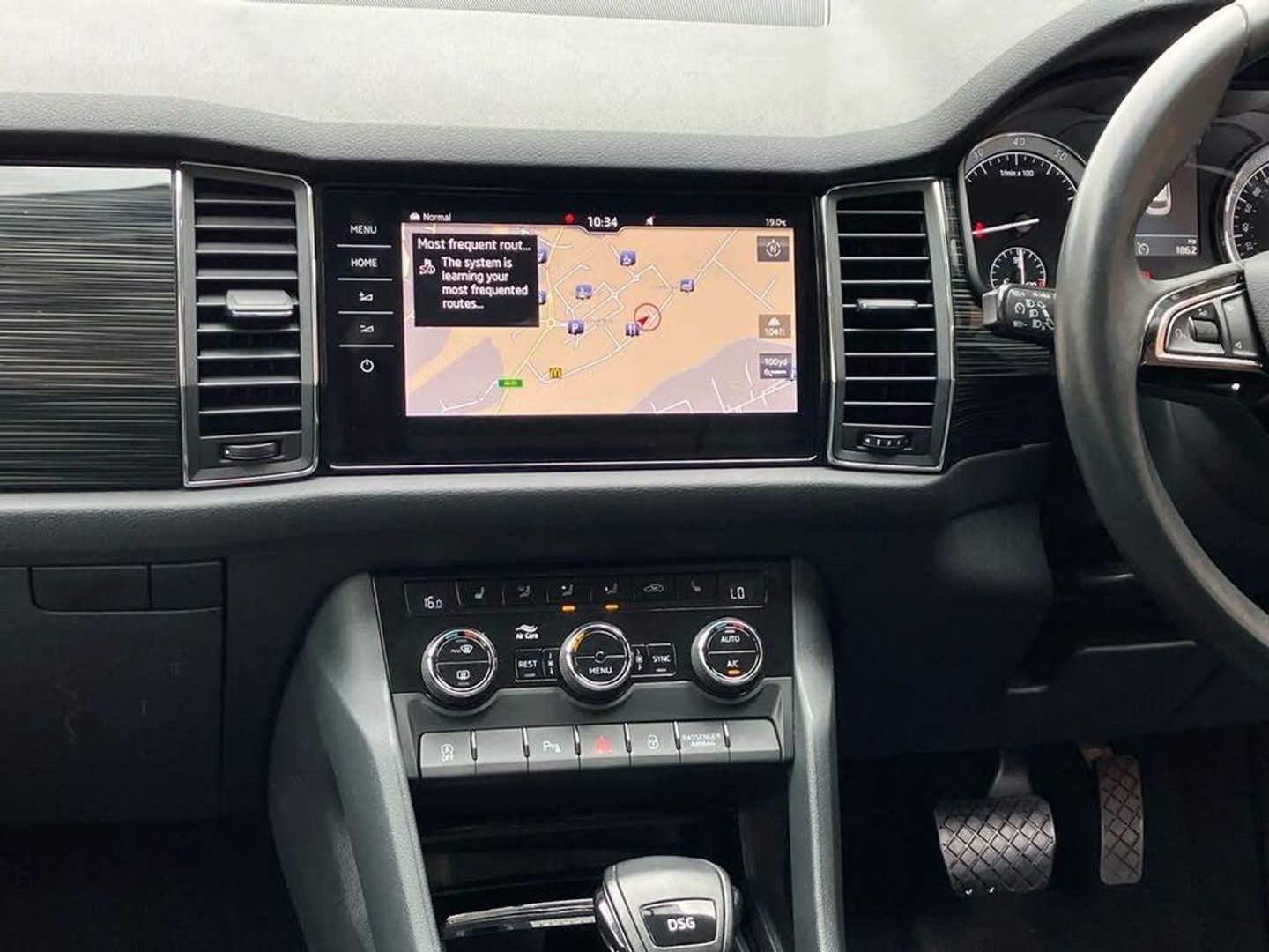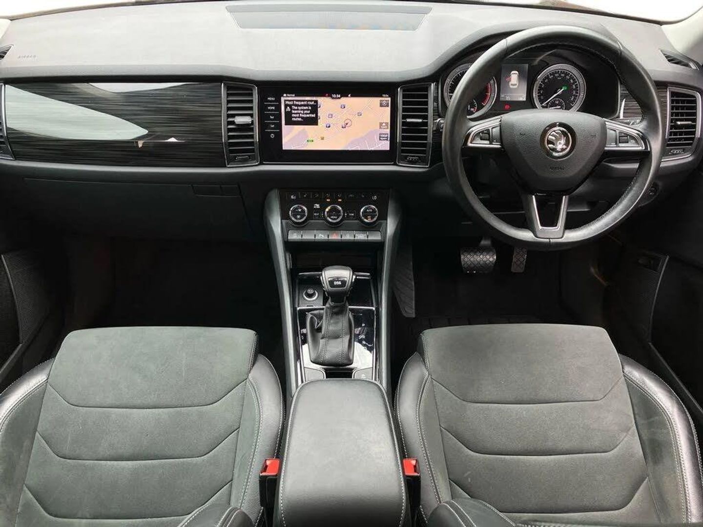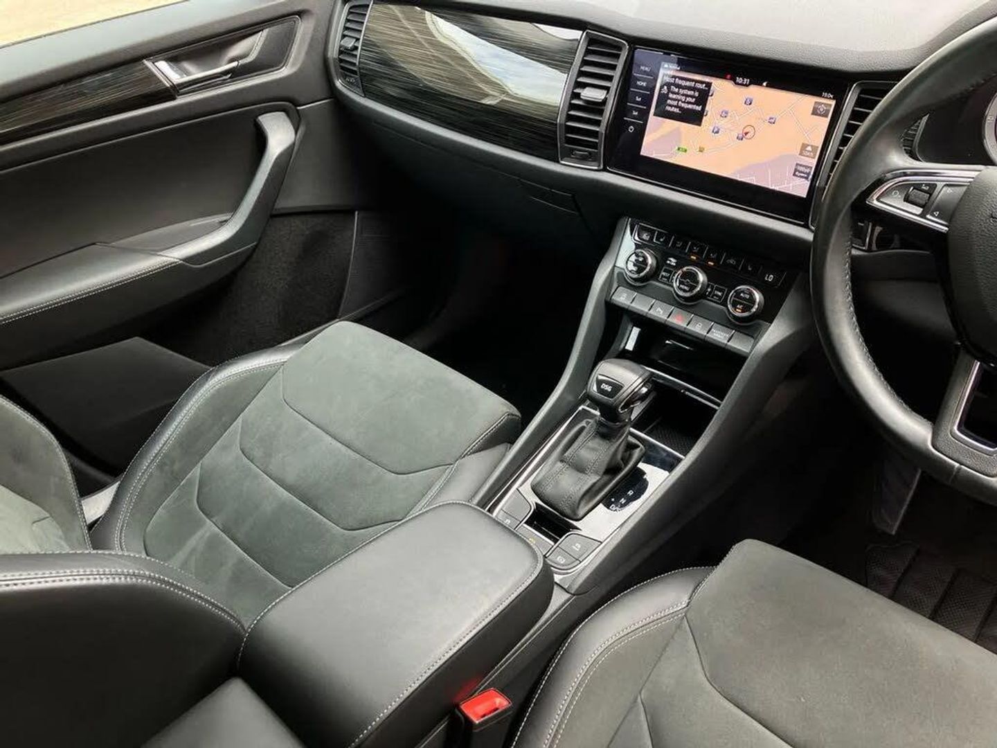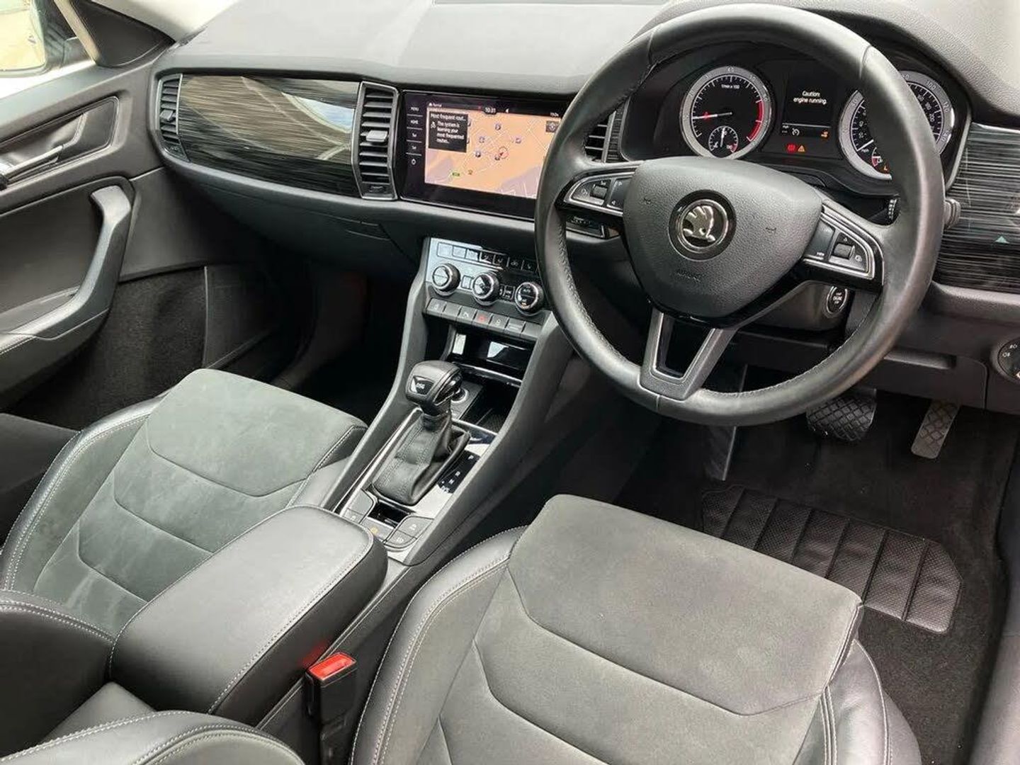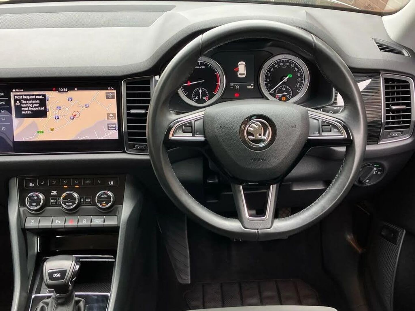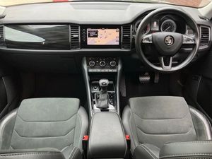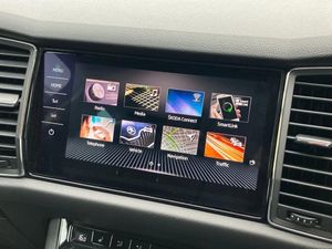 Bluetooth system,Digital voice enhancement,ECO Stop/start function,Exterior temperature indicator,Map care,Smartlink wireless for apple carplay and wired for android auto,Speed limiter,Tailgate unlocking from outside,USB C Port x 2 in front centre console,DAB Digital radio,Aero front windscreen wipers with intermittent function,Aero rear window wiper,Auto dimming rear view mirror,Automatic activation of hazard warning lights,Black electric window control buttons,Black wheel arch surrounds,Body colour bumpers,Body colour door mirrors and handles,Electric adjustable heated door mirrors with integrated indicators,Electric front and rear windows,Electrically folding and auto dimming door mirrors,Front and Rear door steps,Full LED Headlights with adaptive front light system and LED daytime running lights,Headlight washers,Heated rear window,Invisible tailpipe,LED front fog lights with static cornering light function,LED rear fog light,LED third brake light in rear spoiler,Light assistant (coming home/tunnel light),Radiator grille frame in matt black with chrome strip,Rain and light sensors,Rear spoiler,Safety reflectors on front and rear doors,Sunset privacy glass,12V socket in boot,2 rails with 2 hooks including 4 hooks for net programme,4 foldable roof handles with rear coat hooks,4 lashing points on luggage floor,60:40 foldable rear seat with sliding adjustment and backrest angle adjustment,Bottle holders in door panel in the 1.5 litre front and 1 litre rear,Cargo storage compartments,Centre console with open storage box, cup holder and 12V socket,Chrome headlight control button,Chrome interior door handles,Coat hooks on B pillar,Covered storage compartment on driver side,Front and rear door armrest with black adductor trim,Front and rear height adjustable headrests,Front centre armrest with storage compartment, cup holder and 12V socket,Front courtesy lights,Gear shift lever with chrome frame and black gloss insert,Illuminated and cooled glovebox,Illuminated luggage compartment,Isofix child seat fittings in outer rear seats with top tether,Manually adjustable steering column,Net programme in boot (1x horizontal Net, 2x vertical Nets),Overhead glasses storage compartment,Pollen filter,Rear centre armrest with cupholders,Roll up luggage compartment cover with intermediate position,Small Bags on the inner sides of the front backrests,Storage compartment in lower middle instrument panel with closing,Three rear height adjustable headrests,Ticket holder on A Pillar,Umbrella in door panel,Chrome pack - Kodiaq,Auto door release and activation of warning lights in the event of an accident,Driver and passenger airbags,Electronic parking brake with hill hold control,Emergency rear braking signal,ESC (incl. ABS+MSR+ASR+EDS+HBA+DSR+RBS+MKB),Front and rear three point safety belt on all seats,Front assist includes AEB city/urban,Front passenger airbag deactivation switch,Front side airbags,Fuel cut off safety device,Head and knee airbags,Rear disc brakes,Safety vest holder in door,Seat belt reminder for all seats,Two tone horn,Tyre pressure monitor,Warning lights in front doors,Alarm with interior monitoring and tilt sensor with safe function,Immobiliser,Keyless entry and start system (KESSY),Remote central locking