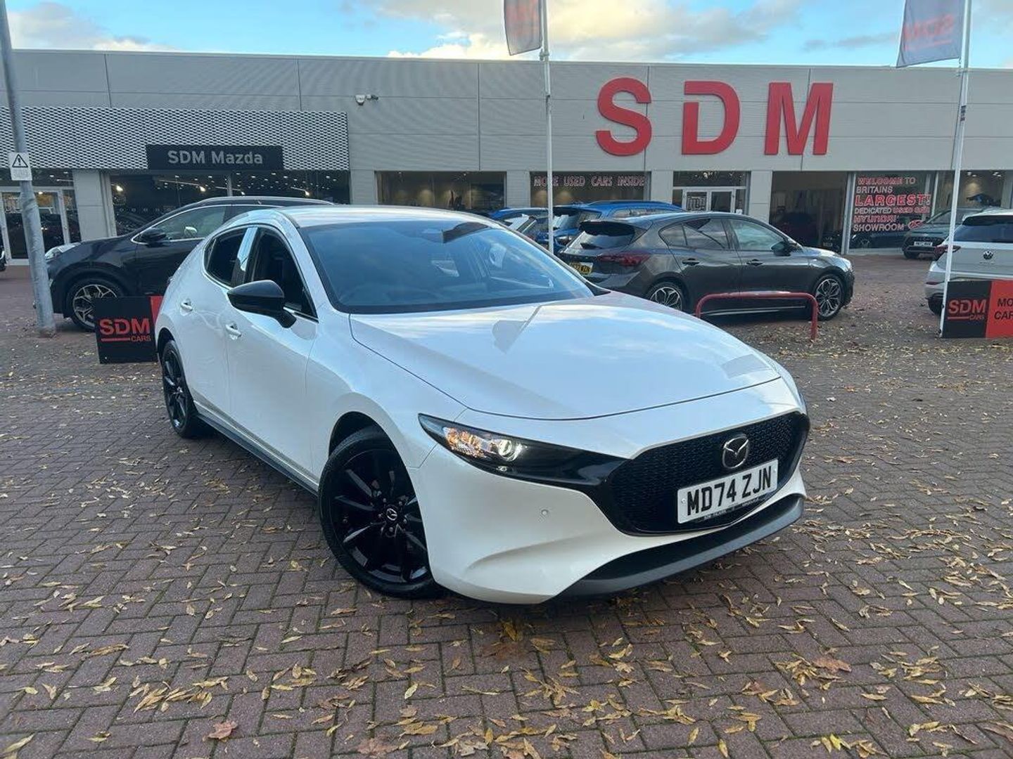 10.25in Colour Centre Display, 12V Electrical Power Outlet, 18in Alloy Wheels - Black, 7in Colour TFT Display, ABS - Anti Lock Braking System, AM-FM-DAB Radio with 8 Speakers, Advanced e-Call with GPS, Airbags - Front Dual Stage Driver and Single Stage Front Passenger, Alexa In-Car Voice Assistant, Apple CarPlay and Android Auto, Auto Dimming Rear View Mirror, B-Pillar Garnish - Piano Black, Blind Spot Monitoring with Rear Cross Traffic Alert, Bumper - Front Body Coloured with Black Lower Bezel, Bumper - Rear Colour Coded with Gloss Black Lower Moulding, Car-Finder, Colour Active Driving Display - Colour Head-Up Display, DSC - Dynamic Stability Control, Door Mirrors - Electrically Adjustable-Heated-Auto Power-Folding, Door Pockets - Driver - Front Passenger and Two Rear, Door Trim - Dark Cloth Insert, Driver Attention Alert - DAA, Dual Tailpipe - Chrome Tip, Dual-Zone Climate Control Air Conditioning, Electric Windows - Front and Rear with One-Touch Auto Down - Up, Electronic Parking Brake with Auto-Disengage Function - Auto-Hold Function, Emergency Stop Signalling System - ESS, Emergency Tyre Repair Kit, Engine Start-Stop Button, Front Centre Storage with Two Cupholders, Front Grille - Black Gloss Finish, Front Grille - Dark Metallic Finish Signature Wing, Front Knee Airbag for Driver, Front Passenger Airbag Cut-Off Switch, Front Seats - Heated with 3-Stage Settings, Front Side Airbags, Front and Rear Curtain Airbags, G-Vectoring Control Plus - GVC Plus, Gear Shift - Leather-Wrapped, Glovebox with Interior Illumination, Grab Handles - Driver - Front Passenger and Two Rear with Coat Hooks, Headlights - Coming-Leaving Home, Headlights - Dusk-Sensing Lights, Headlights - LED with Auto Headlight Levelling, High Beam Control, Hill Launch Assist - HLA, ISOFIX Child Seat Anchorage for Outer Rear Seats, Integrated Bluetooth, Intelligent Speed Assist, Interior Colouration - Dashboard and Doorcards - Black with Dark Stitching, Interior Lighting - Front and Rear LED Lighting, Kodo Turn Signal, LED Rear Combination Lights, Lane Keep Assist with Lane Departure Warning System, Luggage Compartment - Light, Mazda Connected Services, Mazda Navigation System, Mazda Radar Cruise Control, Multimedia Commander, Parking Sensors - Front and Rear, Power Assisted Steering, Privacy Glass - Rear and Rear Side Windows, QI Wireless Mobile Phone Charging, Rain-Sensing Front Wipers, Rear Roof Spoiler - Gloss Black, Rear Seats - Folding Centre Armrest Equipped with Two Cup Holders, Rear Wiper, Remote Central Locking with Deadlocking, Reversing Camera, Roof Headlining Dark - Ceiling and Pillars, Roof Mounted Sunglasses Holder, Seatback Pocket - Located on Rear of Front Passenger Seat, Seatbelt Reminder Audible Warning - Driver-Passenger and Rear Seat, Seats - 60-40 Split Folding Rear, Seats - Drivers Manual Slide-Recline Height and Tilt Adjustment, Seats - Front Passenger Manual Slide - Recline and Height Adjustment, Smart Brake Support - Front, Smart Keyless Entry, Steering Wheel - Leather Wrapped, Steering Wheel - Mounted Audio and Bluetooth Controls, Steering Wheel - Tilt and Telescopic Adjustment, Sun Visors - Drivers and Front Passengers with Covered Vanity Mirror and Ticket Holder, TCS - Traction Control System, Thatcham Accredited Alarm and Immobiliser, Three Height Adjustable Rear Head Restraints, Traffic Sign Recognition, Trip Computer, Tyre Pressure Monitoring System, USB Type-C Input x2