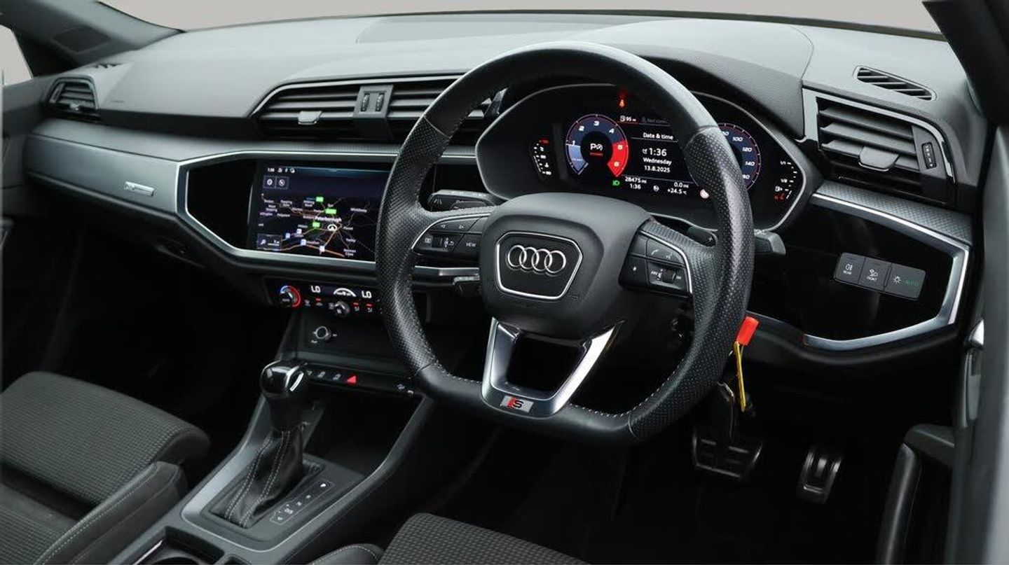 19'' Alloy wheels,Part Leather-Our Audi Q3 comes with optional extras worth £825. Specification includes a range of fantastic features including 19'' Alloy wheels, Part Leather Seats, Leather Seats, Apple CarPlay, Lane Assist, S Line Body Styling, Satellite Navigation, Privacy Glass, Bluetooth, Internet Specification information is supplied by CAPHPI and may vary to the actual car. This data does not form any part of a buying contact. Please check specification prior to purchase in-store. The MOT is valid until July 2026, visit bigmotoringworld.co.uk for more photos, a 360 tour, service history and a free HPI report.Were BIG on peace of mind and this White Audi Q3 has completed our comprehensive 200 point inspection and passed all checks. Its ready for you to drive away with immediate collection in-store. We include a 90-day warranty as standard plus an option to extend for up to 3 years.Reserve this car exclusively for you, safely and securely at bigmotoringworld.co.uk, with a fully refundable £99 deposit. Test drive before you buy, with no commitment, no hassle and a completely haggle free experience. Still searching and want to see thousands more cars? We are BIG on choice with over 8000 cars to choose from.Visit our award winning web site bigmotoringworld.co.uk.Were Big Motoring World and were BIG on what matters to you.