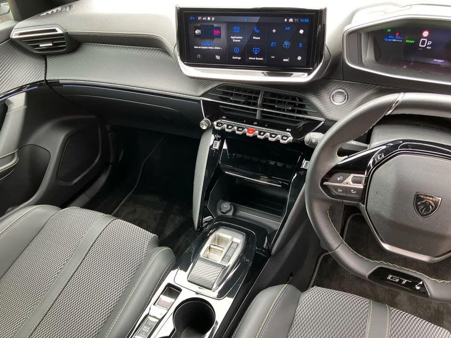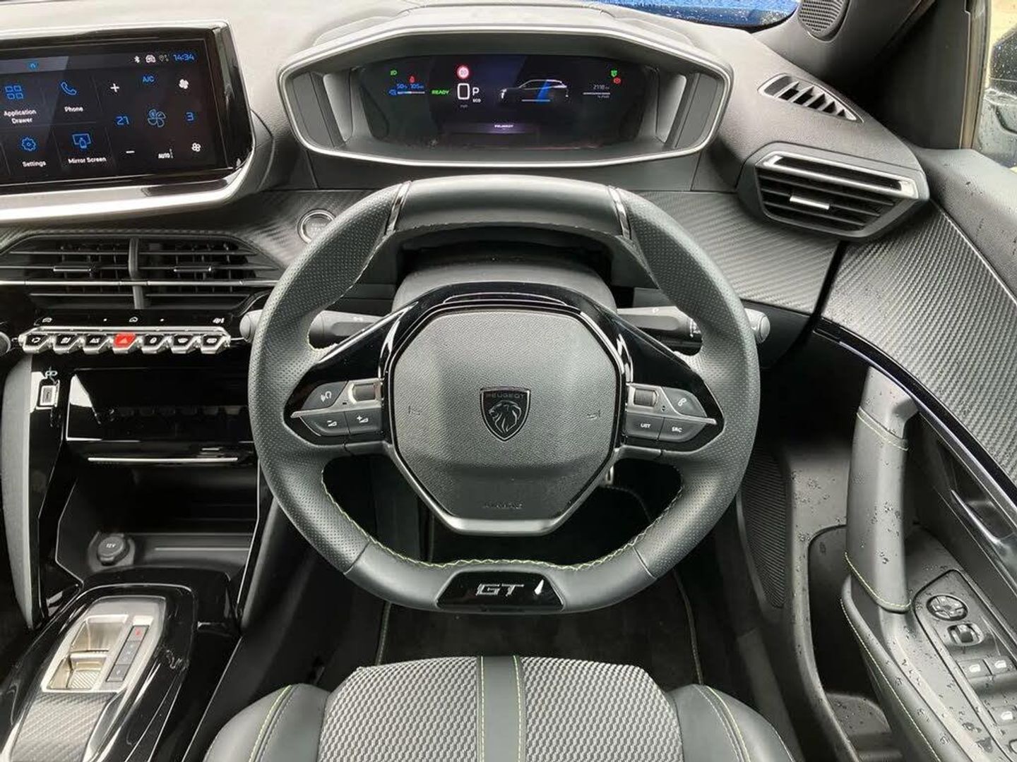 Bluetooth telephone facility,Driver attention warning,E-call,Exterior temperature indicator with ice warning,Front and rear parking sensors,Multi function trip computer,PEUGEOT i-Cockpit with 10" high definition capacitive touchscreen,PEUGEOT i-Cockpit with compact steering wheel,PEUGEOT i-Cockpit with configurable 3D headup instrument panel,PEUGEOT SOS and assistance,Speed limit recognition and recommendation,Wireless mirror screen with mirror link, apple carplay and android auto,Limit charging to 80% for AC charging - Mode 2 (Domestic 3 pin plug) and Mode 3 (Wallbox),Mode 3 type 2 cable for wallbox charging,Vehicle-to-load (V2L) preparation,1x USB-C socket in rear and 1x USB-A socket in rear,2 USB-C ports in the front,6 speakers radio with mp3 compatible,DAB Radio (Digital Audio Broadcasting),Voice recognition for radio, navigation and telephony features,2 X Rear number plate lights,Aluminium door sill scuff plates with peugeot lettering,Automatic hazard light activation upon heavy brake application,Black diamond roof,Black front wing trim with gloss black detail and GT badging,Body coloured exterior door handles,Dark tinted rear side and tailgate windows,Diamond black mirror shells,Diamond black rear roof spoiler,Dichroic badging on tailgate,Electric, heated, and power folding door mirrors,Frameless electrochrome interior rear view mirror,Front bumper - Meteor grey lower trim,Full LED headlights with smartbeam assist with auto height adjustment,Gloss black finish on B pillar,Gloss black rear cluster connecting strip,Gloss black roof bars,Gloss black window surround,GT model designation badging on tailgate,Headlights left on audible warning,LED daytime running lights with distinctive 3 claw signature,LED side indicator lights integrated into door mirrors,LED third brake light,Model designation badges front and rear,One touch electric front/rear windows with pinch protection,Radiator grille - body coloured vertical chequered grille,Radiator grille - gloss black top edge trim,Rear full LED 3D peugeot signature claw effect lights with daylight function,Rear reversing lights,Rear side wing doors,Rear windscreen wiper triggered automatically in reverse gear,Reinforcement of the front bumper,Tailgate with heated rear windscreen and wiper blade,Wheel arch extensions,1/3 to 2/3 split folding rear seats,12V socket,3 seat bench in 2nd row,8 Colour personalisable ambient lighting,Automatic air conditioning with pollen and active carbon filter,Central front armrest with storage compartment,Driver and front passenger sport seats,Electric power steering with reach and rake adjustable steering column,Front and rear carpet mats in black,Front LED interior light with 2 reading spotlights and rear interior light with timer,Front passenger seat manual adjustment - height, longitudinal and back rest angle,High centre console,ISOFIX child seat mounting points on passenger seat,Mistral full-grain perforated leather steering wheel with Lime Green stitch detail and satin chrome 'GT' emblem,Multifunction steering wheel,Piano keys: Gloss black and chrome toggle switches to access main functions of the vehicle and touchscreen functions,Pre heating function,Roof lining - Mistral black,Seatbelt unfastened on the move audible and visual alert for front and rear seats,Single front passenger seat,Two position modular boot floor,Visibility pack - 2008,2x 2nd row ISOFIX child seat mountings,ABS (Anti-lock Braking System) with EBD (Electronic Brakeforce Distribution) and EBA (Emergency Braking Assistance),Active safety brake with night function/cyclists/pedestrians,Adaptive driver and front passenger airbags with passenger airbag deactivation function,Advanced emergency braking system (AEB) with enhanced camera with the high beam and radar,Child locking functionality on rear doors,Driver/front passenger side airbags,Electric parking brake,ESP (Electronic Stability Program) + Hill Start Assist,Front and rear curtain airbags,Front and rear disc brakes,Front and rear three-point retractable seatbelts, with force limiters,Front optimised safety headrests and rear retractable headrests (x3), height adjustable,Tyre pressure sensor,Automatic door locking when moving off,Deadlocks,Electronic code immobiliser,Electronic gearbox lock,Thatcham category 1 alarm,Carbon effect Dashboard, front and rear door panel finish,Tyre inflation kit