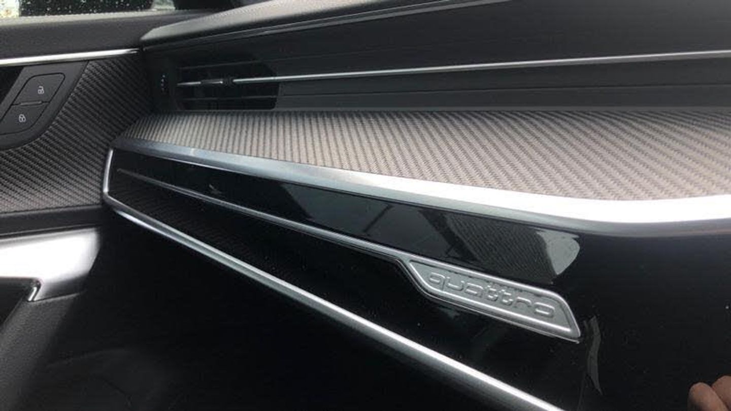 Black Edition identifier, Deletion of power/technology character, Black styling package plus including black Audi exterior rings, 20 8.5Jx20 '10-spoke star' design Audi Sport alloy wheels in black metallic - gloss turned finish with 255/40 R20 tyres, Equipment options subset for Great Britain, [Audio and Communications]Audi application store and smartphone interface, [Exterior]Black door mirrors, [Illumination]Audi beam, [Interior]Flat bottom steering wheel 3-spoke with multi-function, Inlay in carbon twill, Audi phonebox light, [Performance]Fuel tank increase: 73 litres
