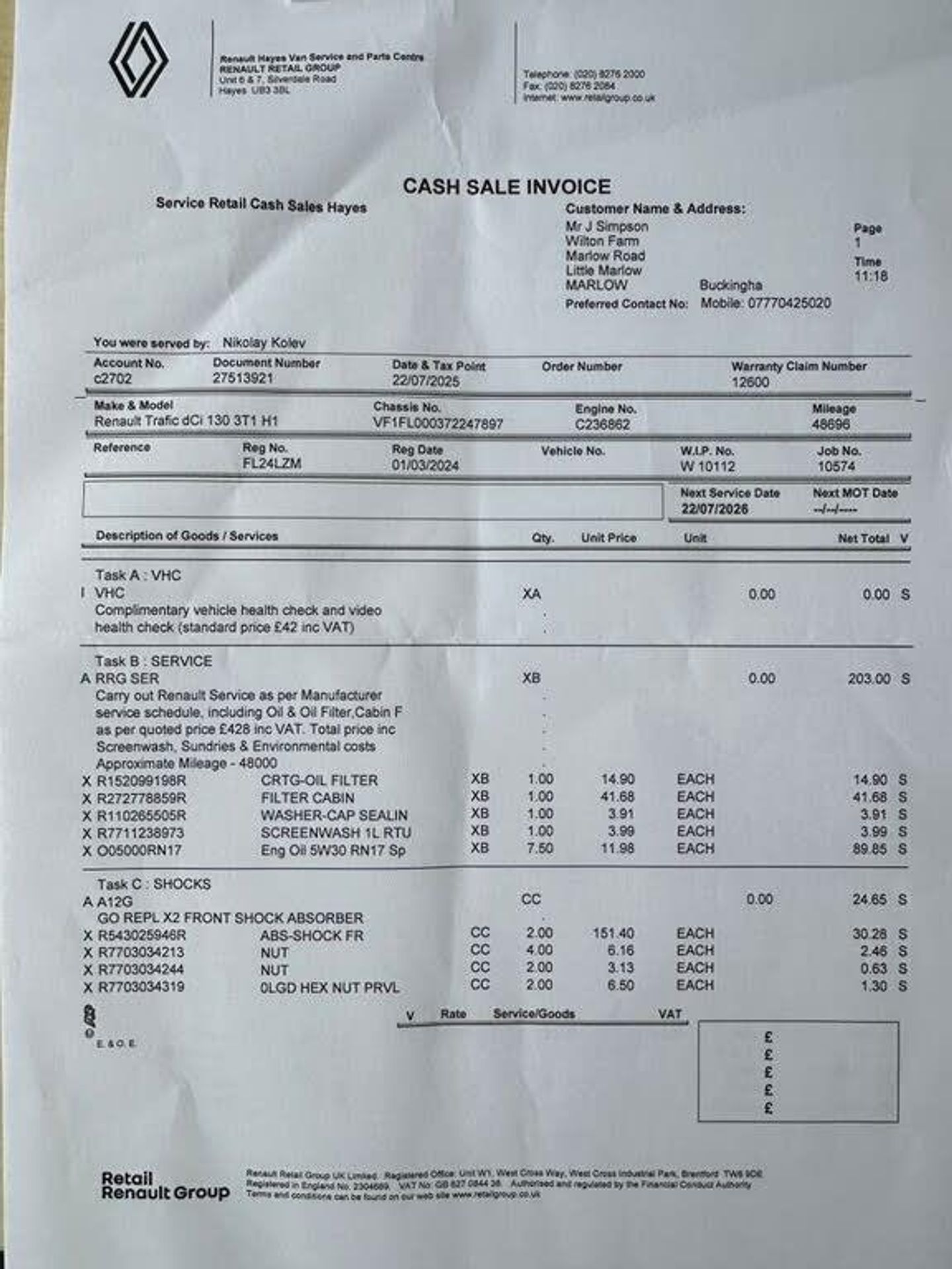 CHECK OUT OVER 40- 5 STAR AUTOTRADER REVIEWS FROM OUR CUSTOMERS- LOW DEPOSIT FINANCE AVAILABLE-INCLUDES THE BALANCE OF RENAULTS 3 YEAR/100000 NEW VEHICLE MILE WARRANTY We have for sale an excellent condition EURO 6 ULEZ COMPLIANT 2024VRenault Traffic 2.0 dCi Blue 30 Advance L2 LWB 130ps in White with full service history In excellent condition throughout the interior and exterior paint and bodywork please view all the pictures to see just how clean this Trafic is Drives perfect as you would expect from such a low mileage van Air conditioning,electric windows and mirrors,park assist,roof bars etc Supplied fully serviced by the Renault main dealer supplied with the balance of Renaults 3 year/100000 mile warranty any independent inspection welcome all vehicles taken in part exchange DELIVERY AVAILABLE FOR ALL THE UK MAINLAND AND ISLANDS Check out our 5 star reviews on Autotrader which show you can buy with complete confidence. All vehicles under 10 years old with less than 100,000 miles have 6 months comprehensive parts and labour warranty, (3 months warranty over 10yr/100k) Flexible competitive finance plans 9.9% APR subject to status £Nil deposit available, same day decision. All debit cards accepted Top prices paid for part exchange. With over 60 years experience in the franchise dealer network, Baxter and Simpson know the importance of providing a first class service. All vehicles are prepared to a high standard, mechanically inspected and if needed, serviced prior to delivery. Minimum 6 months MOT. Independent inspection welcome. Full HPI Experian Check supplied. Test drives available. VIEWING IS STRICTLY BY APPOINTMENT ONLY, we are located on the A1455 just 2 minutes from the Marlow bypass 10 minutes from the M40 High Wycombe junction and 15 minutes from junction 8/9 on the M4