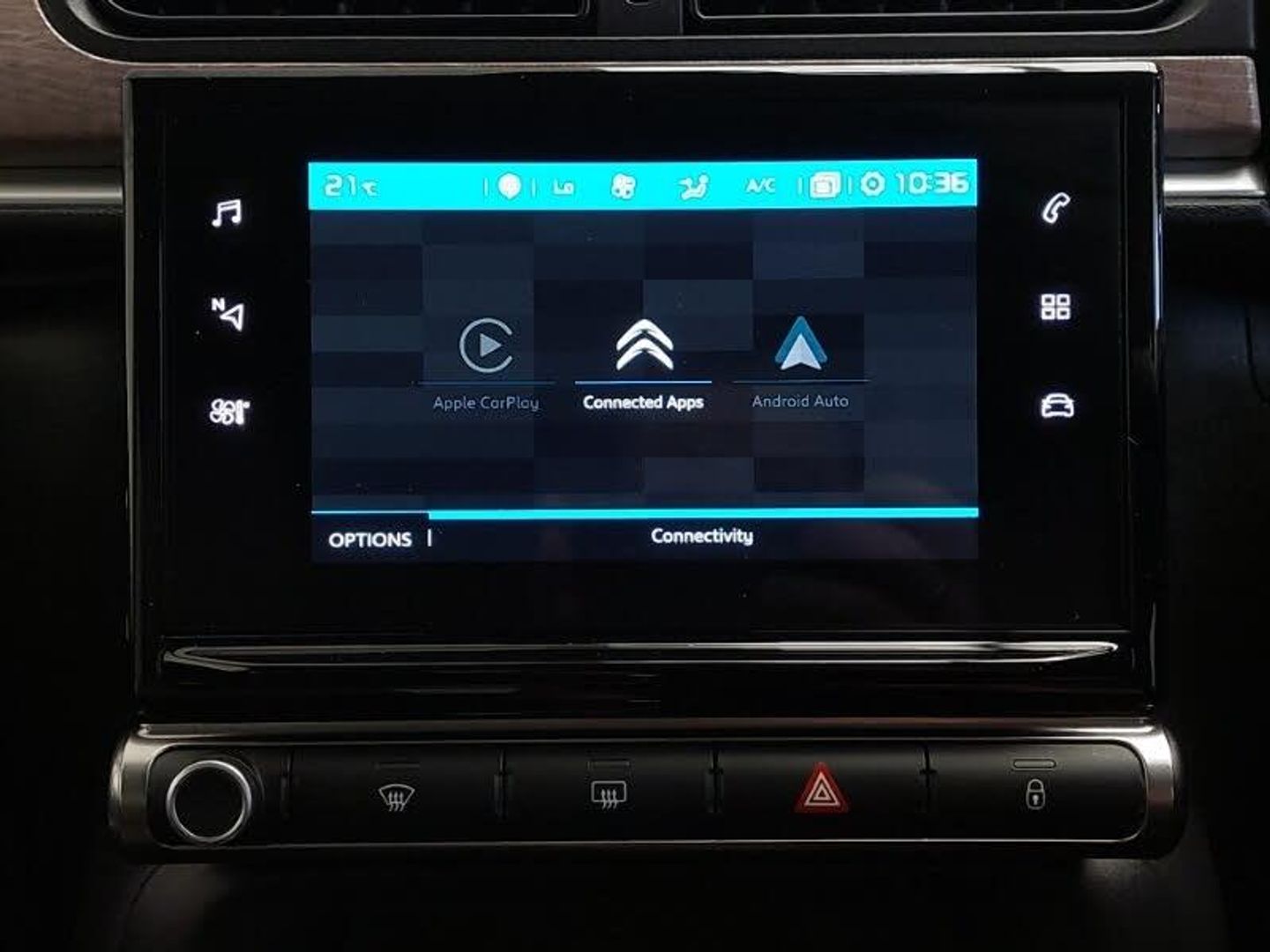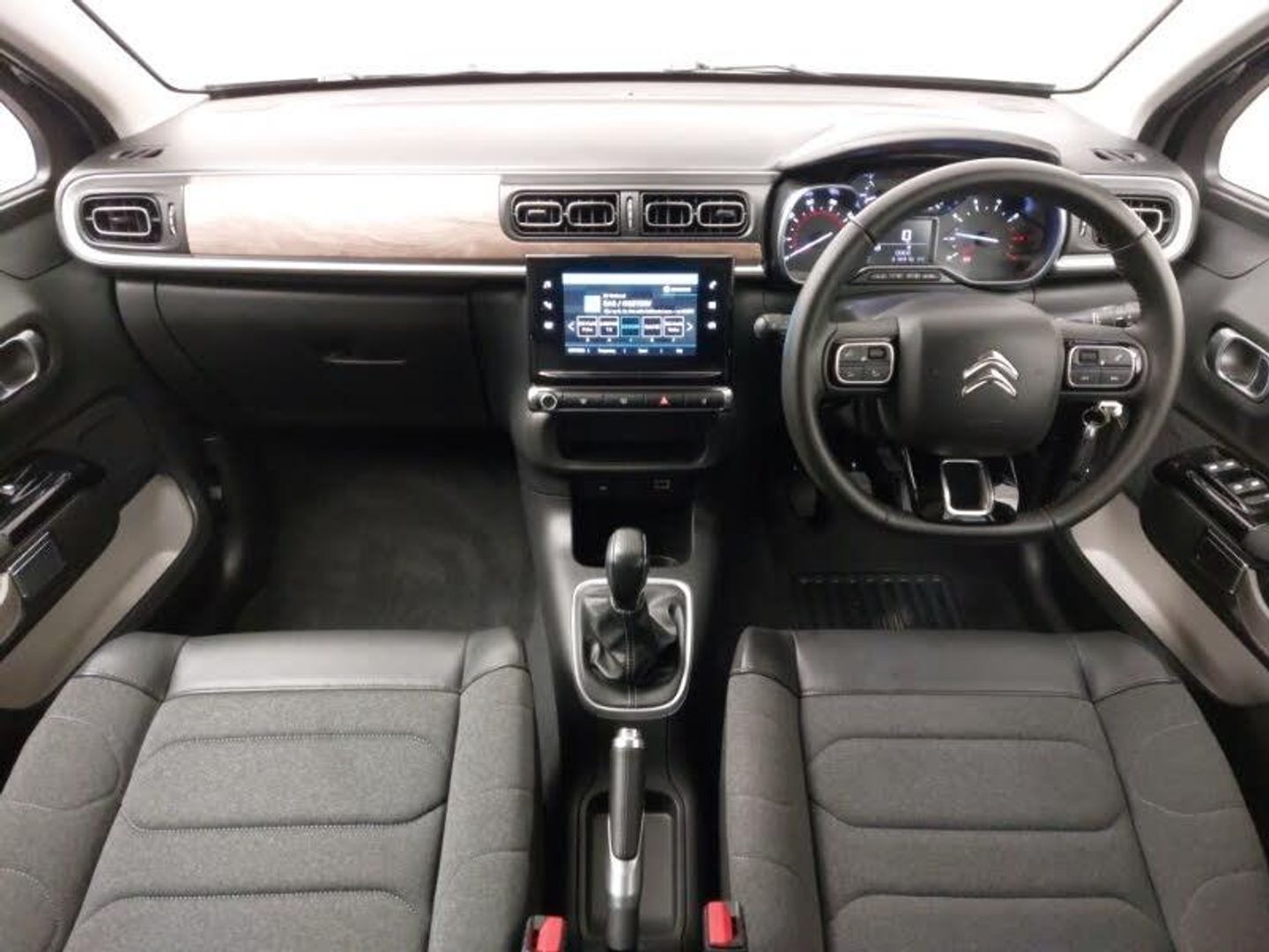 Citroen connected nav with DAB, 6 speakers, 7" captive touch screen, mirror screen includes apple carplay/android auto and bluetooth, Reversing camera, Satin chrome surround instrument cluster with white LCD and analogue gauges, Auto headlights, Dark tinted tailgate and rear side windows, Electric folding and heated door mirrors, LED Headlights, ISOFIX mounting on outer rear seats with top tether and labels indicating fixing points, Safety pack 1 - C3, Safety pack 2 - C3, Visibility pack with automatic lights - C3, Hill start assist, Manual parking brake with leather handle and chrome finish button, Automatic door and boot locking with automatic unlocking in case of impact