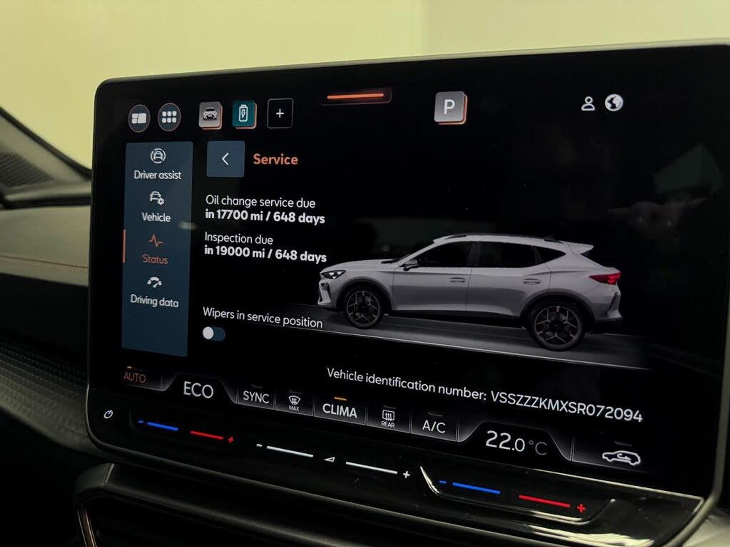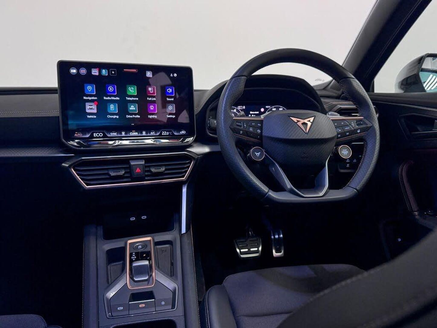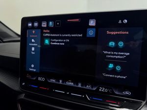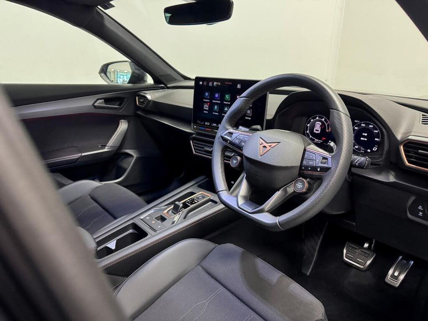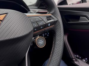 10.25in Digital Cockpit and Configurable Dashboard, 12V Socket, 18in Alloy Wheels - Sonora - Machined - Silver, 2 Front and 2 Rear USB Type C Sockets, 5 Year - 90000 Miles Warranty, 60-40 Rear Seats with Central Armrest and Mechanical Seat Release, Adaptive Cruise Control with Follow-to-Stop and Speed Limiter, Airbag on Driver and Front Passenger Side with Front Passenger Airbag Deactivation, Anti-Theft Alarm, Auto Dimming Rear View Mirror, Brake Control System - ESC and Brake Booster, Breakdown Kit and Toolkit for Tyre Puncture, CUPRA Connect PLUS - Safety - Service - Remote and Online, Central Locking System and Keyless Go, Charging Cable - Mode 2 - 10amp, Charging Cable - Mode 3 - 32amp, Copper and Aluminium Interior Detailing, Cupra Sport Pedals, Daytime Running Lights with Automatic Headlight Control and Coming-Leaving Home Lights, Disc Brakes Front and Rear, Driver Alert System, Driving Profile Selection, Dynamic Headlight Range Control, Dynamic Road Sign Display, Electrically Adjustable - Folding and Heated Door Mirrors, Electronic Locking Differential with Dynamic Traction Support, Electronic Parking Brake, Emergency Steering Support with Turn Assist, Front Assist - Forward Collision Warning with Automatic Braking, Front Centre Armrest, Front Cross Traffic Assist, Front Fog Lights with Cornering Function, Front Side Curtain Airbag, Front and Rear Head Restraints, Gloss Black Roof Rails and Window Surrounds, Headlining - Black, Heated Supersports Multifunction Leather Steering Wheel with Satellite Buttons and Gearshift Paddles, ISOFIX, Illuminated Interior Front Door Sills, Illuminated Sunvisor with Mirror, Interior Ambient Lighting, LED Headlight, LED Taillights with Dynamic Indicator, Lane Assist, Locking Wheel Bolts, Manually Adjustable Height and Lumbar Support for Front Seats, Media System with Navigation, Parking Sensors - Front and Rear, Rain Sensing Wipers, Reading Lights - 2x Front - 2x Rear, Rear Diffuser with Copper Simulated Exhaust Pipes, Rear Fog Lamps, Seat Belt Reminder, Start Stop with Regenerative Braking, Storage Pockets on Rear of Front Seats, Three Zone Climate Control with Control Panel in the Rear, Tinted Rear Windows, Tyre Pressure Monitoring, Welcome Lights, Wireless Phone Charger, Part PVC - Part Cloth - Black with Copper Stitching, Magnetic Tech Grey