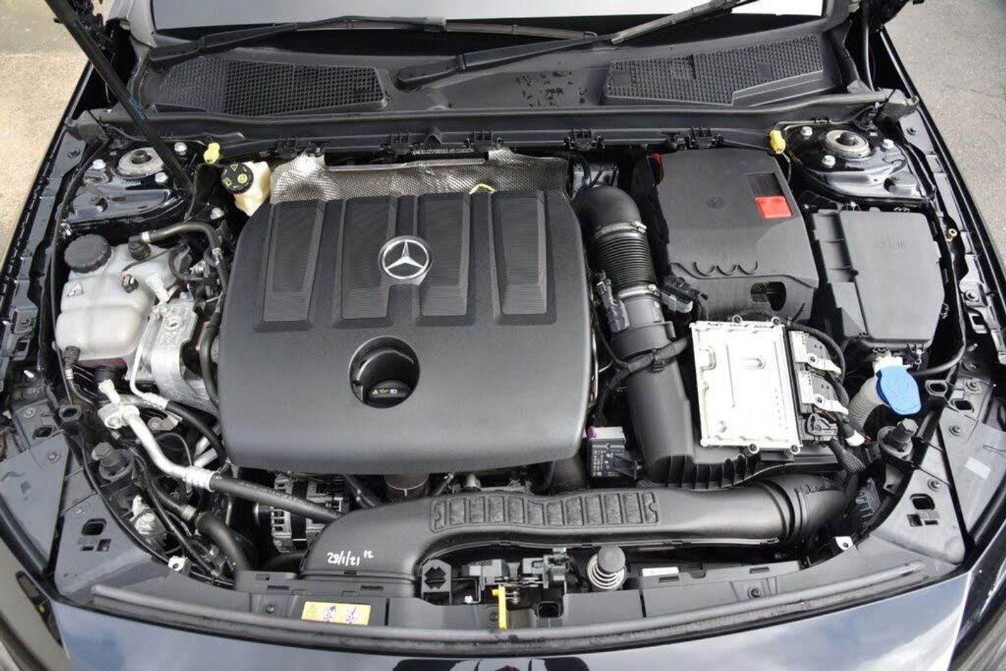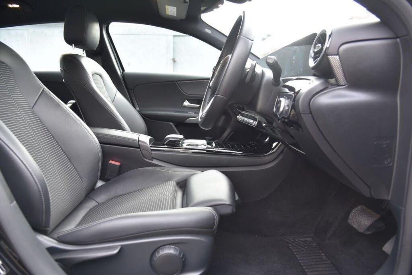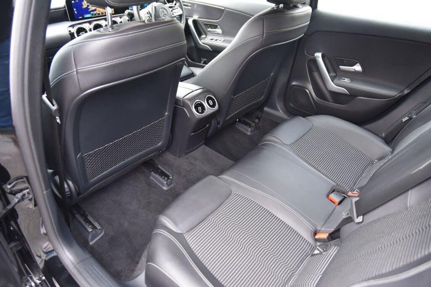 10.25" media display, 180 degree rear view camera with parking guidelines, 7" colour screen in instrument panel, Active lane keep assist, Active park assist with parktronic system including front and rear parking sensors, Attention assist, Brake pad wear indicator warning light, Car wash mode, Cruise control + speed limiter, Direct steering, Dual bluetooth interfaces, DYNAMIC SELECT with a choice of driving modes (ECO, Comfort, Sport and Individual), ECO start/stop function, Fluid level warning indicator for fuel, oil, coolant and washer fluid, Hard-disk navigation, Hey Mercedes Voice activation, Lamp failure indicator, MBUX multimedia system with DAB digital radio and touchpad including satellite navigation, Mercedes me connect including emergency call system, accident recovery, breakdown management and maintenance, Outside temperature gauge, Owners manual in English, Pre-installation for car sharing, Pre-installation for Vehicle Monitoring, Pre-installation for Vehicle Setup, Preinstallation for Mercedes Benz link, Service indicator (ASSYST), Smartphone integration with Apple CarPlay and Android auto, Speed sensitive power steering, Trip computer, Wireless charging, 3 rear 3 point seatbelts, ABS with Brake Assist, Active bonnet, Active brake assist includes forward collision warning system with autonomous braking, Adaptive brake assist with hold function and hill start assist, Black seatbelts, Childproof locks manually operated for rear doors and electrically operated for rear power windows, Crash responsive emergency lighting, Driver and passenger head and side airbags, Drivers knee airbag, Dual stage Driver/Passenger Airbags, Electronic parking brake, ESP curve dynamic assist, ESP with ASR, Front and rear seatbelt reminder, Tyre pressure monitoring system, Warning triangle and first aid kit, Window airbags, Alarm system/interior protection/immobiliser, Keyless Go, Remote central locking and crash sensor with emergency opening function, Urban guard vehicle protection system with immobiliser and interior protection, 2 USB ports (type C) in rear stowage compartment and one in front of center console, 6 speakers, DAB Digital radio, Mercedes-Benz sound system - 100W, 3 Spoke leather multi function steering wheel, 40:20:40 split folding rear seats, Artico man-made leather/Fleron fabric upholstery, Auto Mercedes-Benz child seat recognition sensor, Black air vents with surround in silver chrome, Black roof lining, Controller on centre console with chrome surround, Front centre armrest with storage compartment, Front comfort seats with adjustable head restraints, Front door sills with Mercedes benz lettering, Front seat backs luggage nets, Front seat cushion length adjustment, Gearshift paddles on steering wheel, Heated front seats, Height/reach adjustable steering column, Interior mirror with reading lamps in black and frameless, ISOFIX and top tether child seat fixing points in two outer rear seats, Manual height adjustable front seats, Rear head restraints, Seat occupancy sensor for front passenger seat, Stowage compartment in centre console with retractable cover, Sunvisors with illuminated vanity mirrors, Touchpad on center console, Twin front cupholders, Two zone thermotronic luxury automatic climate control, Velour floor mats, 4 Electric Front and Rear windows, Adaptive brake lights, Black weather strip, Body coloured bumpers, Body coloured door handles, Body coloured side skirt, Body coloured door mirrors, Chrome beltline, Diamond radiator grille with black pins with one louvre in silver + chrome insert, Electric adjustable and heated door mirrors with integrated LED side indicators, Exhaust system - Twin visible tailpipes in polished stainless steel, Headlamp assist automatic headlamp activation, Heated glass rear windscreen + timer control, LED high performance headlamps with integrated LED daytime running lights, LED tail lamp, LED third brake light, Radio aerial, Rain sensing windscreen wipers with two sensitivity settings, Rear fog lights, Rear wiper, Window line trim strip in chrome, Dark carbon fibre interior trim, 17" 5 twin spoke light alloy wheels painted in matt black with a high sheen finish, Summer tyres, Tirefit sealant kit, Light and sight pack - A Class, Mirror package - A Class, Seat comfort pack - A Class, Lowered comfort suspension, Rear axle torsion beam