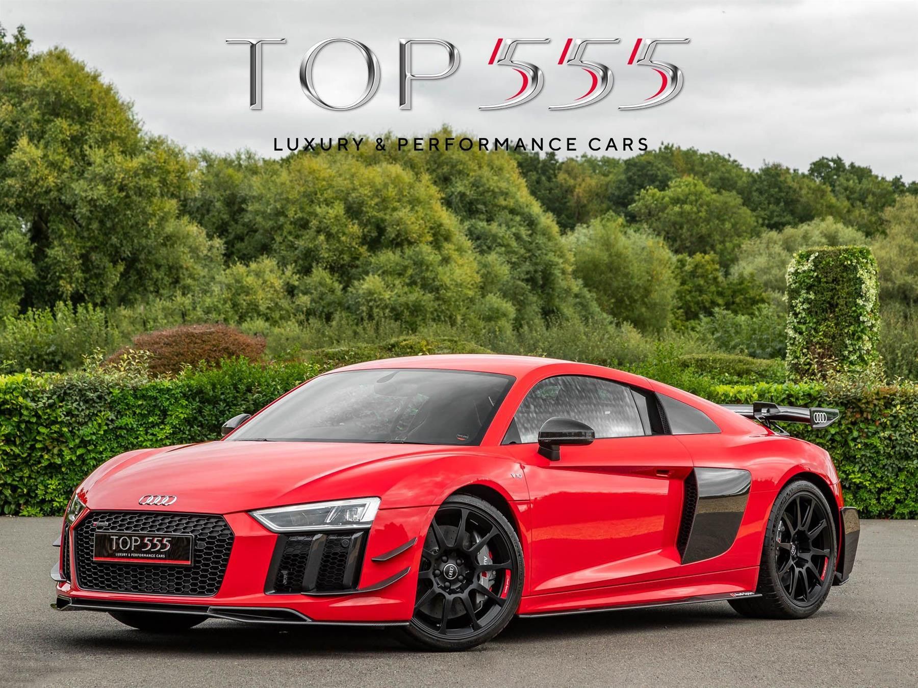 Audi Sport took the acclaimed R8 to its pinnacle with the Audi Sport R8 Performance Parts Edition, a unique and limited edition model and the most focused and capable road going R8 ever built.Just 44 cars were produced worldwide with only 5 right hand-drive examples in the UK all finished in striking Audi Exclusive Misano Red pearl effect paintwork.It was a collaboration between Audi Sport GmbH and Audi Sport Performance Parts to celebrate the success of the R8 in motorsport, specifically in the GT3 racing series.The 602 BHP V10 remains at the heart of this limited edition model but motorsport proven upgrades transform its performance. To start with you have a full aerodynamic styling package with special aerodynamic vanes located behind the rear wheel arches which focus airflow and a bespoke carbon fibre large, fixed rear wing. A deep carbon fibre front splitter, carbon fibre sculpted canards and carbon fibre side skirts with Audi Sport branding and a Audi R8 sports exhaust with titanium components are some of the most noticeable additions. All of these elements result in an increase in downforce so that at 205mph it generates 250kg of negative lift, 100kg more than the standard Audi R8 V10 Plus and at 93mph the aero kit doubles downforce to an astonishing 520kg The car comes standard with ceramic composite brakes with titanium lightweight backing plates, uprated brake pads, three-way adjustable coilovers and ultra-lightweight milled 20 inch satin black forged wheels wrapped in Michelin Pilot Sport Cup 2 tyres delivering razor sharp handling and track ready braking. These offer a substantial 8kg reduction in unsprung mass, aiding agility, acceleration and brakingInside, you will find the R8 sport Seats in Fine Nappa Leather, an Exclusive Alcantara Sport contour steering wheel with 12`0 clock marker in red, carbon fibre trimand extensive use of Alcantara along with the usual excellent standard features found in the R8 V10 Plus such as but not limited to Audi Smartphone Interface, rear view camera, MMI Navigation, Audi connect and Virtual Cockpit