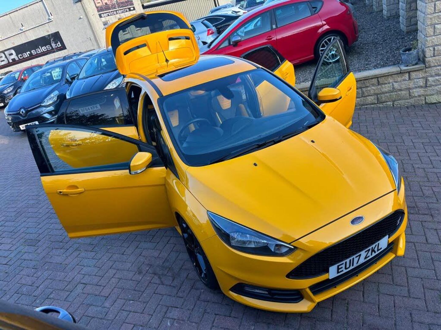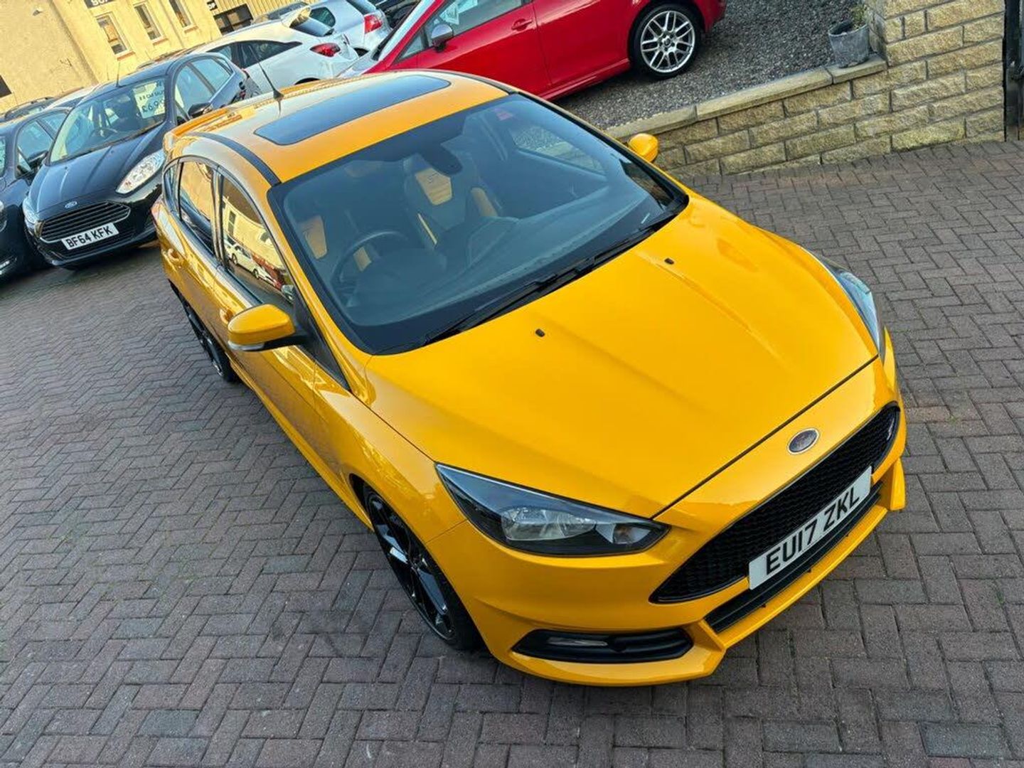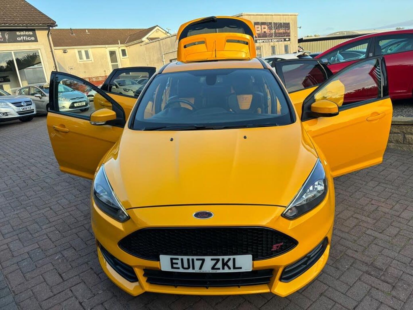 56,064 miles (8 service stamps + Alloys fully refurbished + 4 brand new Mitchelin pilot sport tyres 1 year MOT - 3 month warranty - service all included at point of sale, We are delighted to offer for sale this stunning looking and superb driving low mileage example of this much loved and sought after Ford Focus ST-2 model !! finished in stunning Yellow colour, Excellent condition throughout, never smoked in, Supplying Ford dealer + one owner from new, This Focus has always been maintained to a very high standard and has never been abused in anyway, It drives perfect pulls well and still feels nice and tight to drive, totally standard, Perfect safe/reliable sporty run about, great fun to drive, this ST will have a full years MOT with no advisories on it and serviced, A must see superb driving very rare Focus ST-2 !! Specification: Ghost alarm fitted (great for insurance) SAT-NAV, electric sunroof, half Leather Recaro sports seats, Front heated screen, 6 speed, Voice activation, Bluetooth, 4 electric windows, Electric heated door mirrors, remote central locking, 2 keys, alarm/immobiliser, SYNC touch screen CD/DAB Radio/MP3 player with steering controls + 2 USB sockets, keyless start, start/stop button, auto lights-wipers-dimming mirror, trip computer, tyre pressure monitoring system, sliding front arm rest, storage compartments, cup holders, illuminated vanity mirrors, sunglasses holder, digital clock+outside Temperature display, boost gauge, X2 12 volt sockets, power steering, adjustable steering, adjusting sports seats, 60/40 split/folding seats, front/side/curtain airbags, air bag deactivation switch, headrests, 5 seatbelts, seatbelt pretensioners, Central locking/electric window over-ride switches, ISOFIX, high brake light, ABS brakes, traction control, hill start assist, fog lights, spare wheel/jack present, privacy glass, tail spoiler, body kit, Alloys (fully refurbished) 200 deposit secures this stunning Focus ST-2 !! OPEN 7 DAYS - OPEN LATE 8 PM - PART EX WELCOME - CREDIT/DEBIT CARDS ACCEPTED - FINANCE ARRANGED - NATIONWIDE DELIVERY POSSIBLE BY ARRANGEMENT