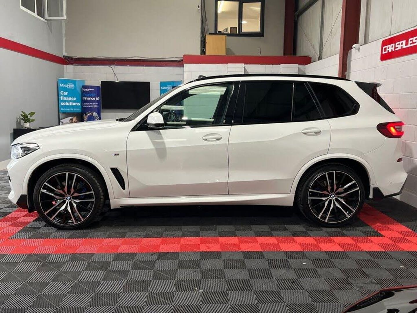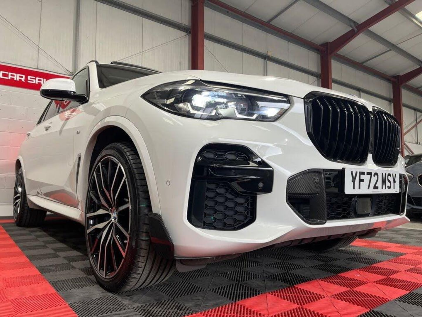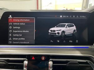 20GB Hard Disc Drive HDD Memory, 20in Alloy Wheels - M light Star-Spoke Style 740 M Bicolour with Mixed Tyres and Run Flat Tyres, ABS - Anti Lock Braking System, Active Air Stream Kidney Grille - High-Gloss Chrome, Active Guard Plus, Adaptive Air Flap Control Bar - High-Gloss Black, Adaptive M Sport Suspension, Air Conditioning - Automatic with 2.5 Zone Control, Airbags - Driver - Front Passenger- Rear and Side, Alarm System - Thatcham 1 with Remote Control and Engine Immobiliser, Ambient Interior Lighting, Armrest - Front and Rear Integrated into Door Trim, Attentiveness Assistant, Automatically Dimming Rear View Mirror, BMW Connected Package Professional, BMW ConnectedDrive Online Services, BMW Individual High-Gloss Shadowline, BMW Individual Roof Rails High-Gloss Shadow Line, BMW Legal Emergency Call, BMW Live Cockpit Professional, BMW TeleServices, Brake Energy Regeneration, Brake Force Display, Brake System, Brake-Pad Wear Indicator, Centre Armrest - Rear - Foldable with 2 Cupholders and Storage Compartment, Centre Console includes Storage Compartment, Centre Lock Switch - Driver and Front Passenger Door, Child Seat ISOFIX Attachment - Outer Rear Seats - includes Top Tether, Closing System with Central Locking, Compartment in Front of Cupholder, Crash Sensor - Activating Central Locking Release - Hazard Warning Lights - Fuel Cut Off - Interior Lighting and Activation of the Safety Battery Clamp, Cruise Control with Brake Function, Cup Holders - Front x2 and Rear x2, DAB Tuner, DSC - Dynamic Stability Control - Stabilises the Vehicle in Extreme Situations - Controls Traction, Daytime Running Lights - LED, Deformation Zones - Front and Rear, Digital Aftermarket - Active Cruise Control, Door Pockets - Front and Rear, Door Sill Inlays - BMW M Designation Illuminated, Double-Wishbone Front Axle, Drive Performance Control with ECO PRO - Comfort and Sport, Dynamic Brake Lights with LED Technology, EPS - Electric Power Steering with Servotronic, Electric Windows - Front and Rear with Open-Close Fingertip Control - Anti-Trap Facility and Comfort Closing Function, Electrical Steering Column with Adjustable Height and Length, Electro-Mechanical Parking Brake with Automatic Drive-Away Release and Auto-Hold Function, Enhanced Bluetooth with Wireless Charging, Exhaust Tailpipes - Single - Left and Right - Chrome, Expanded Exterior Mirror Package, Exterior Mirror Housing - Body Colour, Favourite Buttons, First Aid Kit and Warning Triangle, Follow Me Home Headlight Function, Footwell Lights - Front, Front Grille Bars - Pearlescent Chrome, Front and Rear Air Suspension, Head Airbags - For First and Second Row Seats, Head Restraints - Front Anti-Whiplash, Headlights - Adaptive LED, Headlining - Anthracite, Heated Windscreen Washer Jets, HiFi Loudspeaker System, High-Beam Assistant, Interior Light - Rear Centre, Interior Trim - Aluminium Tetragon, Knee Airbag, LED Rear Lights, Light Inside Glove Compartment, Lockable Glove Compartment, Locking Wheel Bolts - Thatcham Approved, Luggage Compartment - Light, Luggage Compartment Floor Panel with Integral Storage Tray, M Aerodynamic Bodystyling, M Designation on Front Side Panels - Left and Right, M Leather Steering Wheel, M Specific Floor Mats Velour, M Specific Key, M Specific Pedals, M Specific Steering Wheel, M Sport Brake - Blue High Gloss, M Sport Braking System, M Sport Package, Make-Up Mirror Lights, Mechanical Childproof Lock - Rear Doors, Multi-Function Controls for Leather Steering Wheel, Multifunctional Hooks, Non Smokers Package, OBC - On Board Computer, Oil Sensor For Level and Grade, Outer and Central Air Intakes on Front Bumper - High-Gloss Black with Pearlescent Chrome Finish, PDC - Park Distance Control - Front and Rear, Parking Assistant, Passenger Seat Airbag Deactivation - Front, Passive Protection for Pedestrians, Power Sockets 12v - 2x Centre Console - 1x Luggage Compartment, Rain Sensor with Automatic Headlight Activation and Windscreen Wiper Control, Reading Lights - Front, Safety Battery - Terminal Clamp, Seat Adjustment - Front Electric with Driver Memory, Seat Back with Flap Pocket, Seat Belts Front and Rear - Seat Belt Tensioner - Front and Outer Rear Seats - Belt Force Limit, Seat Heating for Driver and Front Passenger, Seat Occupancy Detection for Driver and Passenger Side, Side Elements - High Gloss Black, Side Impact Protection, Side Window Graphics - Satin Aluminium, Speed Limit Display, Speed Limiting Function, Split Folding Rear Seats 40-20-40 Configuration, Sport Seats for Driver and Front Passenger, Start-Stop Toggle - Diamond-Shaped Trim Finisher in Pearl Chrome, Steering Wheel - Paddle Shift, Storage Tray and Compartment with Lid in Centre Console, Sun Visors with Illuminated Vanity Mirrors, TPMS - Tyre Pressure Monitoring System, Tailgate Automatic - Two Part Top-Hinged Section Which Can Be Opened Separately and Manual Bottom-Hinged Section, Third Brake Light - Spoiler, Toolkit Located in Luggage Compartment, Two Tone Horn, USB Connection - USB Type A 1.5A in Cupholder - USB Type C 3A in Centre Armrest, Welcome Light Carpet, X5 on Tailgate - Left, iDrive Touch Controller with Shortcut Buttons, xDrive Designation on Tailgate - Right, 22in Alloy Wheels - M Light Double-Spoke Style 742 M Bicolour with Mixed Tyres, Alpine White, M Sport Pro Package, Perforated Vernasca Leather - Coffee-Black, Sky Lounge Panoramic Glass Sunroof, Sun Protection Glazing, Tyre Repair Kit