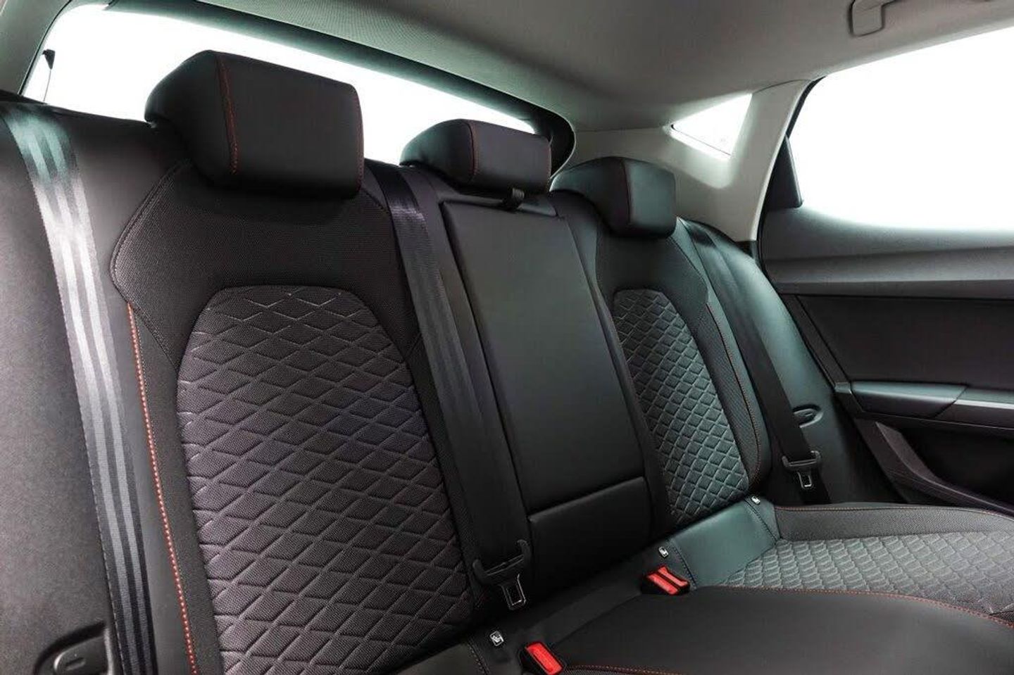 12V Power Supply in Centre Console, 17in Alloy Wheels - Dynamic Bi-Spoke, Ambient Lighting, Anti-Lock Brakes - ABS, Anti-Theft Alarm System - Interior Monitoring - Backup Horn and Towing Protection, Auto Dimming Rear View Mirror, Brake Control System - ESC and Brake Booster, Chrome Interior Detailing, Cruise Control with Speed Limiter, Dark Tinted Rear Windows, Digital Cockpit, Driver and Front Passenger Airbags with Front Passenger Airbag De-Activation - Front Side - Curtain Airbag, Driver and Passenger Seat Manual Height Adjustment, Driver and Passenger Seat with Lumbar Adjustment, Electric Parking Brake, Electrically Adjustable Folding and Heated Door Mirrors, Electro-Mechanical Power Steering - Speed-Sensitive, Emergency Tyre Repair Kit, Extended Safety System, Fabric - Two Tone Grey with Lava Red Stitching, Folding Boot Cover, Four USB Type C Ports, FR Sport Bumpers, Front and Rear Electric Windows, Front and Rear Reading Lights - Four, Front Assist, Front Centre Armrest, Front LED Fog Lights with Cornering Function, Front Seat Back Storage Pockets, Full Link Smartphone Integration - Mirror Link - Wireless Apple CarPlay - Wired Google Android Auto, Illuminated Front Door Sill, Interior Lighting, ISOFIX Points in Outer Rear Seats with Top Tether Anchorage Points, KESSY Go - Keyless Start, Lane Keeping System, Leather Flat Bottomed - Perforated Steering Wheel with Red Stitching and FR Logo, LED Headlights, Lockable Tailgate, Media System Plus with Navigation, Park Assist including Front and Rear Parking Sensors, Rain Sensing Wipers, Rear Bench Seats with 60-40 Split and Armrest, Rear Fog Light, SEAT Connect App, SEAT Drive Profile, Seatbelt Reminder - Front and Rear, Separate Daytime Running Light with Automatic Headlight Control and Automatic Coming Home Feature, Seven Speakers, Sports Suspension, Sunvisors with Illuminated Mirrors, Three-Zone Climate Control, Tiredness Recognition System, Tool Kit, Tyre Pressure Monitoring System, White, Wireless Device Charger