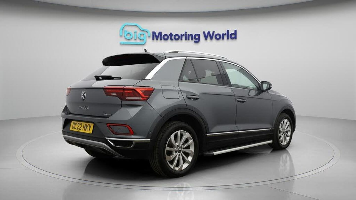 17'' Alloy Wheels,Adaptive Crui-Our Volkswagen T-Roc comes with optional extras worth £685. Specification includes a range of fantastic features including 17'' Alloy Wheels, Adaptive Cruise Control, Apple CarPlay, Lane Assist, Android Auto, Satellite Navigation, Privacy Glass, Bluetooth, Internet, Parking Sensors Specification information is supplied by CAPHPI and may vary to the actual car. This data does not form any part of a buying contact. Please check specification prior to purchase in-store. The MOT is valid until June 2026, visit bigmotoringworld.co.uk for more photos, a 360 tour, service history and a free HPI report.Were BIG on peace of mind and this Grey Volkswagen T-Roc has completed our comprehensive 200 point inspection and passed all checks. Its ready for you to drive away with immediate collection in-store. We include a 90-day warranty as standard plus an option to extend for up to 3 years.Reserve this car exclusively for you, safely and securely at bigmotoringworld.co.uk, with a fully refundable £99 deposit. Test drive before you buy, with no commitment, no hassle and a completely haggle free experience. Still searching and want to see thousands more cars? We are BIG on choice with over 8000 cars to choose from.Visit our award winning web site bigmotoringworld.co.uk.Were Big Motoring World and were BIG on what matters to you.