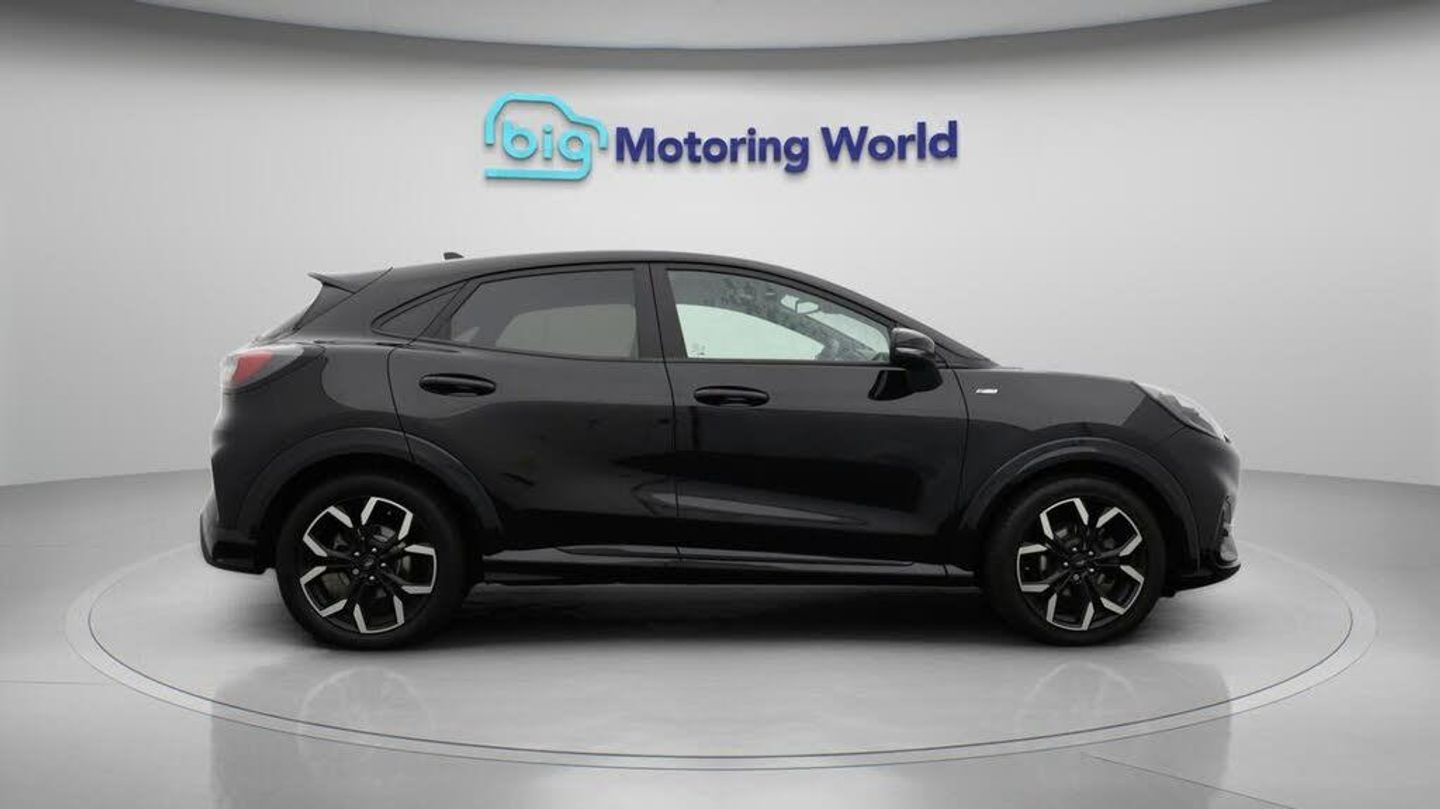 18'' alloy wheels,Part Leather-Our Ford Puma is finished in Black. Specification includes a range of fantastic features including 18'' alloy wheels, Part Leather Seats, Lane Assist, Satellite Navigation, Ford SYNC, Privacy Glass, ST Style Pack, Heated Windscreen, Bluetooth, Parking Sensors Specification information is supplied by CAPHPI and may vary to the actual car. This data does not form any part of a buying contact. Please check specification prior to purchase in-store. The MOT is valid until June 2026, visit bigmotoringworld.co.uk for more photos, a 360 tour, service history and a free HPI report.Were BIG on peace of mind and this Black Ford Puma has completed our comprehensive 200 point inspection and passed all checks. Its ready for you to drive away with immediate collection in-store. We include a 90-day warranty as standard plus an option to extend for up to 3 years.Reserve this car exclusively for you, safely and securely at bigmotoringworld.co.uk, with a fully refundable £99 deposit. Test drive before you buy, with no commitment, no hassle and a completely haggle free experience. Still searching and want to see thousands more cars? We are BIG on choice with over 8000 cars to choose from.Visit our award winning web site bigmotoringworld.co.uk.Were Big Motoring World and were BIG on what matters to you.
