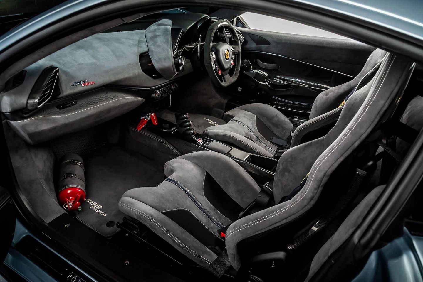 Dick Lovett Ferrari, Europes Leading Pre-Owned Ferrari Dealership, are delighted to present this outstanding 2020 Ferrari 488 Pista, finished in refined Grigio Alloy with a beautifully tailored interior in Charcoal Alcantara with Blu Sterling details. With only 978 miles from new, this example represents one of the lowest mileage Pistas currently available and is in exceptional condition throughout.The specification is extensive and includes a wealth of carbon fibre options such as Racing Seats, Front Flaps, Rear Diffuser, and Engine Covers – highlighting the car’s track-focused character while enhancing its desirability. Additional highlights include Suspension Lift, ensuring practicality for everyday use, alongside Premium Hi-Fi audio and Apple CarPlay for enhanced comfort and connectivity.Further underlining its motorsport DNA, this Pista features Ferrari Telemetry, a Track Interior Camera, and 4-point safety harnesses, making it as at home on the circuit as it is on the open road.Benefiting from a full Ferrari Main Dealer service history, with the most recent service carried out on 12th December 2024, this 488 Pista offers complete peace of mind as part of the Ferrari Approved programme.The Ferrari 488 Pista is widely regarded as one of Maranello’s finest modern masterpieces, its 3.9-litre twin-turbo V8 producing 710bhp and delivering extraordinary performance with breathtaking precision. This low-mileage example is an unmissable opportunity for any serious Ferrari enthusiast or collector.