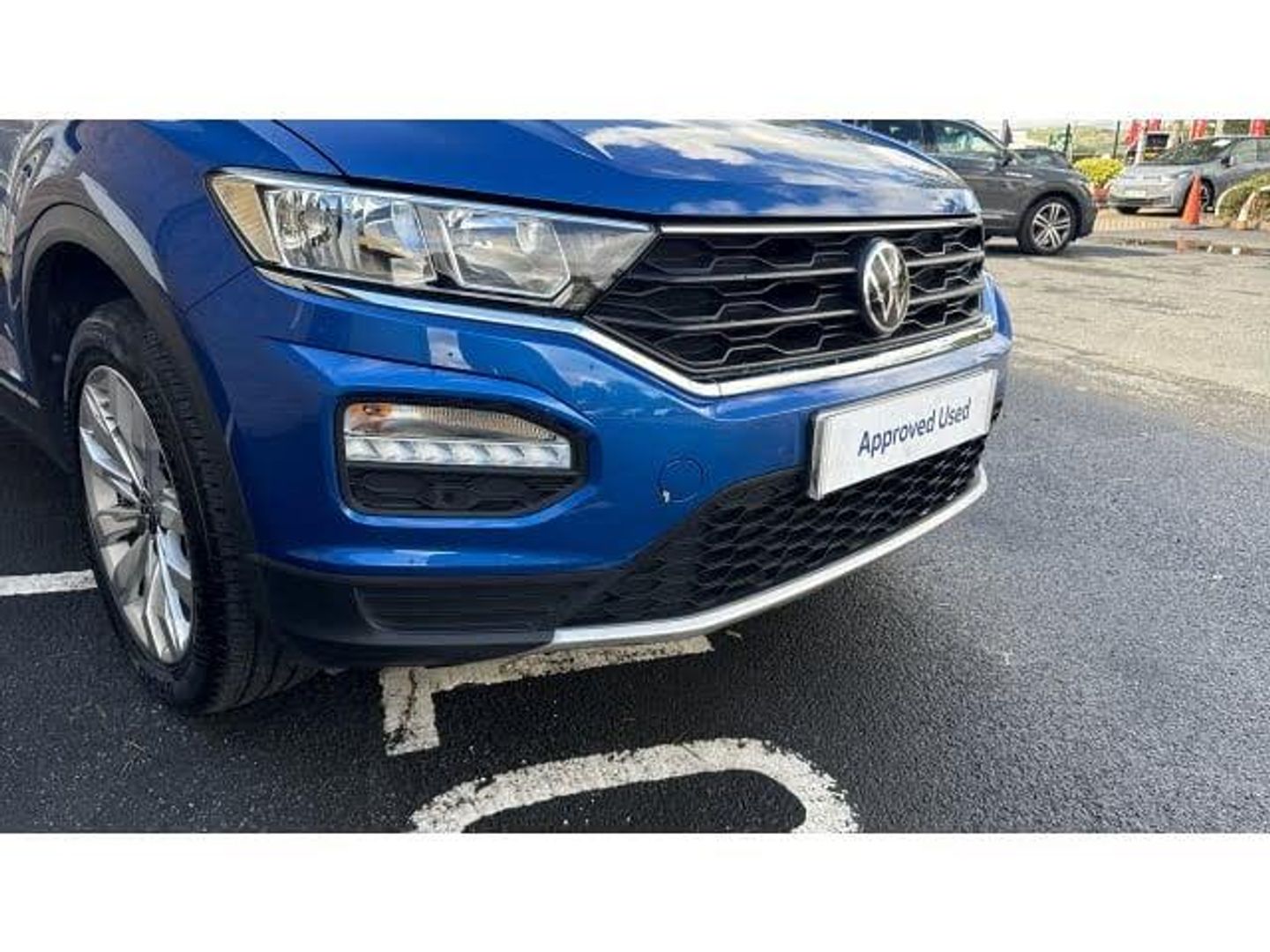 This 1.5 TSi 150 T-Roc has a full service history, and it is absolutely stunning finished in Ravenna Blue metallic paintwork. As a Volkswagen Approved used vehicle included is 1 year unlimited mileage Warranty, 1 year Roadside Assistance, independent vehicle history and mileage checks, comprehensive multi-point vehicle check, service history checks, plus 5 days complimentary Volkswagen Drive Away Insurance. If you purchase with a Solutions Personal Contract Plan (PCP) you will receive an upgrade to 2 years Warranty and 2 years Roadside Assistance. As standard, it comes with alloy wheels, touch screen media with Apple Car Play, Android Auto, Bluetooth and DAB radio, front and rear parking sensors, adaptive cruise control, lane assist, dual zone climate control with air conditioning, auto lights and wipers, front fog lights, LED lights, electronic handbrake, roof rails, privacy glass, and much more.