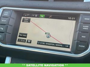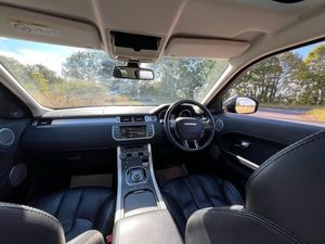 12V Power Socket, 12V Socket in Loadspace, 18in Alloy Wheels - 5 Split Spoke Style 506 - Sparkle Silver Finish, 2-Zone Automatic Climate Control, 380W Meridian Surround Sound System, 5in TFT Driver Information Centre, 6/4 Way - Manual Driver Adjustment, 8in High Resolution Touch Screen, ABS - Anti Lock Braking System, Airbags - Driver and Passenger Side, Airbags - Driver Knee, Airbags - Full Size Driver, Airbags - Full Size Passenger, Airbags - Row One and Two Head Curtain, Alarm, Armrest - Rear Centre with Storage Compartment and 2 Cupholders, Audible Seat Belt Warning, Audio Connectivity System, Audio System - DAB, Automatic Headlights, Bluetooth Audio Streaming, Bluetooth Phone Connection, Cruise Control, Door Mirrors - Electric Adjustment and Heated, DSC - Dynamic Stability Control, EBA - Electronic Brake Assist, EBD - Electronic Brake-Force Distribution, EDC - Engine Drag Torque Control, Electric Parking Brake, Electric Windows - Front and Rear, EPAS - Electronic Power Assisted Steering, Evoque Badge in Black, Exterior Door Handles - Premium Body Coloured, Footwell Lights - Front, Hazard Warning Lights Under Heavy Braking, HDC - Hill Descent Control, HDD Premium Navigation with Touch Screen, Headlight Power Wash, Headlights - Halogen and Manual Levelling, Headlining - Ivory Morzine, Heated Front Seats, HSA - Hill Start Assist, InControl Remote 3 Year Package, Interior Mood Lighting, ISOFIX Child Seat Anchor Points, Land Rover - Tyre Repair System, Locking Wheel Nuts, Multi-Function Steering Wheel, Parking Aid - Front, Privacy Glass, Proximity Sensing and Touch Detection For Overhead Map Lights, Push Button Start, Rain Sensing Windscreen Wipers, Rear Cupholders, Remote Central Locking, Roof - Body Coloured, Roof - Fixed Panoramic, RSC - Roll Stability Control, Santorini Black, Seats - 3 Seat Bench in Rear, Seats - 60/40 Split, Seats - Lumbar Support - Drivers, Seats - Lumbar Support - Passengers, Seats - Rear Centre Head Restraint, Speakers x11, Spoiler - Tailgate Mounted, Steering Column - Manual For Height and Reach Adjustment, Steering Wheel - Oxford Leather, Subwoofer, Sun Visors - Illuminated Vanity Mirrors, TCS - Traction Control System, Terrain Response, Torque Vectoring, TPMS - Tyre Pressure Monitoring System, Trim Finisher - Satin Brushed Aluminium, Trip Computer, TSA - Trailer Stability Assist, USB Socket - Front, Windscreen - Heated, Windscreen Washer Jets - Heated