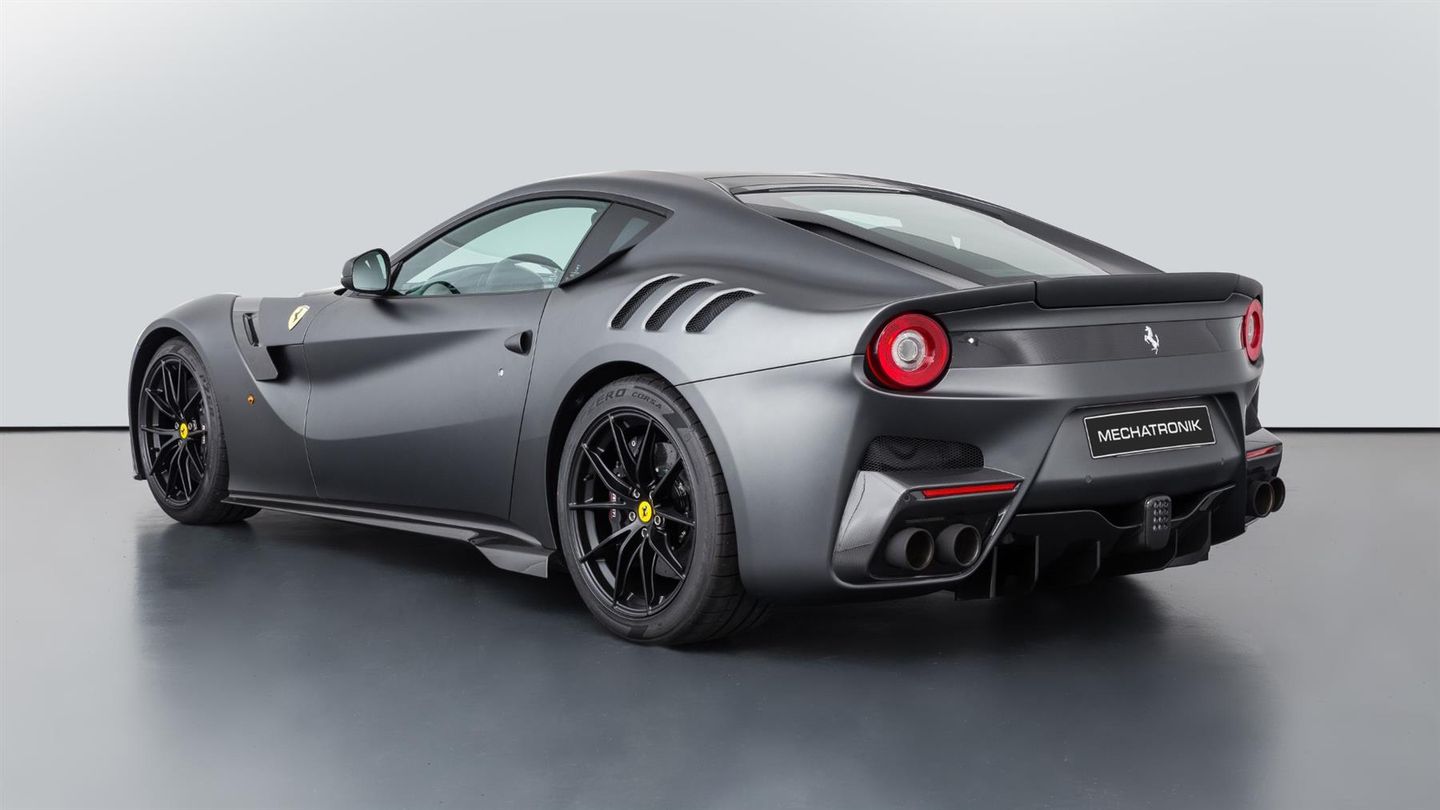 It is the special version of the Ferrari F12 Berlinetta, limited to 799 units, and the ultimate version, which was developed as a tribute to the legendary Tour de France for automobiles, an endurance race that Ferrari dominated in the 1950s and 1960s. The abbreviation tdf stands for precisely this historical reference and emphasises the focus on maximum driving dynamics. Visually, the F12 tdf stands out with its even more aggressive aerodynamics. A revised front bumper with larger air intakes, pronounced side skirts, a striking rear diffuser and fixed spoiler lip not only improve the look, but also the dynamics considerably. Wider track widths, special air ducts and active aerodynamic elements ensure that the vehicle remains stable and precise at high speeds.