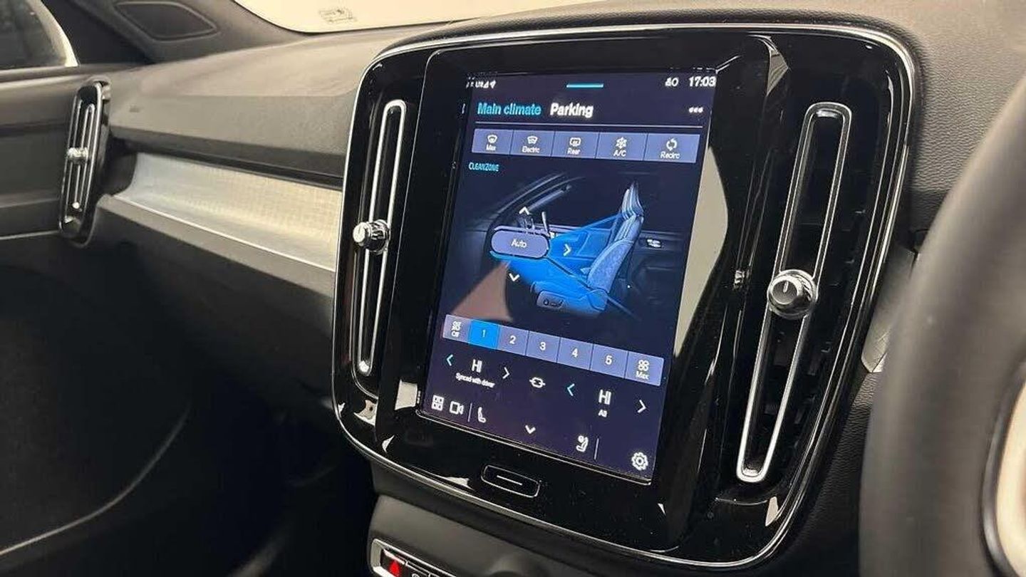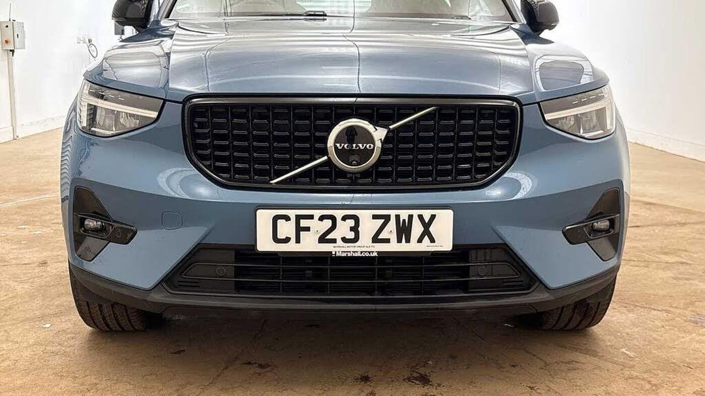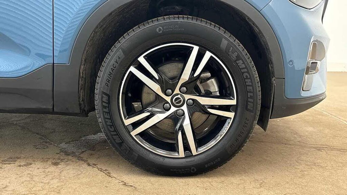 Sculpted gear shift, Charcoal headlining, Door mirror covers. high-gloss black, Urban Grid aluminium decor, Premium textile upholstery, Tailored sport steering wheel. Charcoal, 7-speed Dual Clutch automatic, Two-zone climate system, Afterrun parking climate, Passenger airbag cut-off switch, Dual-stage airbags, Knee airbag. driver side, Charcoal interior inserts, Road Sign Information, Lane Keeping Aid, Front grille with high-gloss black insert, Heated grill emblem, LED headlights, Trailer lamp control, Fog lamps, 12.3-inch driver display, Google Assistant. Google Maps and Google Play Store - included for 4 years, Cruise control, Speed limiter, Volvo Cars App remote functions, Digital Audio Broadcasting (DAB+), High Performance audio system, Power retractable door mirrors, Wireless phone charging, Automatic door locking, Remote key, Small storage. front, Double locking, Alarm, Power child safety lock, Power tailgate, Keyless entry with hands-free power tailgate, Air purifier and remote cabin pre-cleaning, Folding bag hook, Digital owners manual, Power driver seat with memory, Adjustable passenger seat, Heated front seats, Heated rear seats, Fixed rear head restraints, 5 seats, Mechanical release second seat row, Manual cushion extensions. driver and passenger, Power 4-way lumbar support, Sport textile interior cabin floor mats. Charcoal, Protection net, Foldable load floor with cargo divider and grocery bag, Rear centre armrest, Illuminated vanity mirrors, Interior illumination. high level, Power outlet. load compartment, First-aid kit, Auto-dimmed rear view mirrors, Front centre armrest, Glossy black tunnel console, Chassis, Hill Start Assist, Tyre pressure monitoring, Oncoming Lane Mitigation, Hill Descent Control, Slippery road alert, Emergency brake light, Heated steering wheel, Adaptive power steering, 18? 5-double spoke glossy black diamond cut, Temporary mobility kit, Lockable wheel bolts, Hidden tail pipes, Heated windscreen, Body-coloured door handles with ground lighting, High-gloss black side window trim, Roof rails. glossy black, Warning triangle, Volvo tread plates. aluminium, Tempered side windows, Rain sensor, Park assist. front. rear and sides, Ticket holder, 360° camera, Protective cap kit. Matt Tech Grey, Apple CarPlay, Comfort front seats, 9-inch centre display, Whiplash injury protection, Inflatable Curtain, Side impact protection, ISOFIX mounting points. rear seat, Steering wheel remote control, Humidity sensor, Bluetooth® connection, Safety belts
