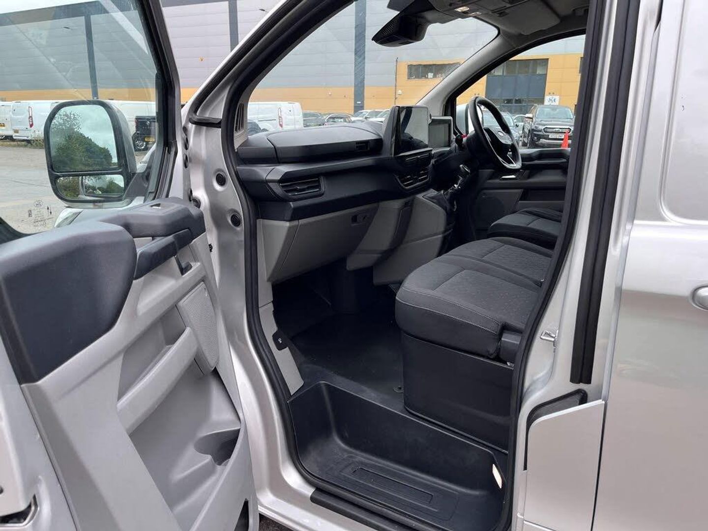 13in Touchscreen, 16in Alloy Wheels - Sparkle Silver, 2 Remote Keys, ABS and ESP Plus, Alcohol Interlock, Automatic Air Conditioner, Body Colour Rear Bumper, Body Coloured Exterior Mirror Finish, Bulkhead - Full Steel, Bumper - Body Colour Front Bumper, Comfort Dual Passenger Seat Pack, Configurable Unlocking - Config 1, Courtesy Lights - Header, Daytime Running Lamps, Doors - Rear Hinged, Driver Airbag Restraint, Driver Illuminated Sunvisor, Dual Note Electric Horn, Dual Power Mirrors - Auto-Power Fold and Heated, ESC - Electronic Stability Programme, Electrically-Operated Front Windows with One Touch Drivers, Embedded Modem, Emergency Brake Light Flashing, Fixed DSS LED Headlamps with Auto High Headlamps, Ford Easy Fuel System, Front Active Seat Belts, Front Seat Belts with Pre-Tensioners, Full Height Polypro Interior Trim Panels, HLA - Hill Launch Assist, Interior Grab Handle with Drivers Sunglasses Holder, Interior LED Lights, Kerbside Side Load Door, Keyless Entry and Start System, Load Compartment - Tie Down Loops x6, Lockable Glovebox, Locking Wheel Nuts, Mechanical Parking Brake, Moulded Load Floor Liner, Passenger Airbag, Passenger Illuminated Sunvisor, Power Assisted Steering, Power Door Deadlocks - Double Locking, Quickclear Heated Windscreen, Reversing Camera Pack - DAT Pack 2, SYNC 4, Seat Belt Reminder System - Drivers and Front Passengers, Seat Belts - 3-Point Diagonal Inertia Reel - All Seats, Sensico Gear Shift Knob, Sensico Steering Wheel, Spare Wheel - 16in Steel, Speed Dependent Locking, Standard Duty Suspension, Steering Column - Rake and Reach Adjustment, Super Bright Load Compartment Lights, Temporary Spare Wheel, Thatcham Category 1 Alarm, Tinted Glass Complete, Tool Kit, Trailer Sway Control, Trip Computer, Tyre Pressure Monitoring System - TPMS, Wipers - Front Variable Intermittent, Cloth - Barlo Style 1 - Black Onyx