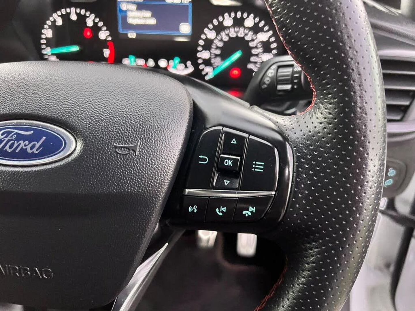 17in Alloy Wheels - 5x2-Spoke - Rock Metallic, 4.2in TFT Instrument Cluster Screen, Air Conditioning - Electronic Automatic Temperature Control - EATC, Airbags - Driver and Front Passenger, Airbags - Front Side Impact, Airbags - Front and Rear Side Curtain, Anti-Lock Braking System - ABS with Electronic Brake Force Distribution - EBD, Automatic Rain Sensing Wipers and Auto-Dimming Rear View Mirror, Black Belt Line Finisher, Centre Console with Armrest and Illuminated Cupholders, Courtesy Light - Ambient LED Courtesy Lighting Cup Holder, Courtesy Light - Front Map Light and Rear - Overhead LED, Cruise Control, Door Handles - Body Colour, Door Lever - Chrome Finish, Door Mirrors - Electrically-Operated and Heated - Power-Foldable with Integrated Side Indicators - Body Colour Housings and Puddle Lights, Driver Alert, Driver and Passenger Seat Height and Lumbar Support, EPAS - Electric Power Assisted Steering, Emergency Brake Warning - Automatic Hazard Warning Lights, Enhanced Electronic Stability Control - ESC with Traction Control - Emergency Brake Assist - EBA - Hill Start Assist - HSA and Trailer Sway Control, Floor Mats - Front and Rear - ST-Line, Ford Easy-Fuel Capless Refuelling System, Ford Navigation System with Ford SYNC 3 - Apple CarPlay and Android Auto and FordPass Connect - Embedded Modem, Front Bumper - Unique ST-Line, Front Door Threshold Plates - ST-Line, Front Seat - Drivers Manual Height and Fore-Aft Adjustment, Front Seat - Drivers Manual Lumbar Support Adjustment, Front Seats - Sports Style, Gearshift Knob - Leather-Trimmed with Aluminium Insert, Glovebox - Illuminated, Headlights - Automatic High Beam Assist, Headlights - Automatic On-Off, Headlights - Automatic On-Off and Highbeam, Headlights - Halogen Projector with Black Bezel and Dedicated LED Daytime Running Lights, Headliner - Black Woven, Headliner - Woven-Dark, IPS - Intelligent Protection System, Keyless Start with Ford Power Start Button, Large Rear Spoiler - Body Colour with Centre High Mounted Stop Light, Leather-Trimmed Handbrake, MyKey, NCAP Pack, Overhead Console - Sunglasses Holder, Quickclear Heated Windscreen, Rear Bumper - Unique ST-Line, Rear Fog Lamps, Rear Lights - LED Night Signature, Rear Privacy Glass, Rear Seat - 60-40 Split Back and Cushion, Remote Central Locking and Engine Immobiliser, ST-Line Front Fog Lamps with Cornering Lights, ST-Line Side Skirt Body Mouldings - Body Colour, Seats - ISOFIX Mounting Provision for Child Seats, Sports Pedals, Sports Tuned Suspension, Steering Column - Rake and Reach Adjustment, Steering Wheel - ST-Line 3-Spoke Leather Trimmed Flat Bottomed, TSR - Traffic Sign Recognition, Tailgate Wash-Wipe, Thatcham Category 1 Alarm, Trip Computer, Tyre Pressure Monitoring System - TPMS, Tyre Repair Kit, Unique ST-Line Upper Grille and Full Bodystyling Kit with ST-Line Wing Badges, Warning Triangle Storage