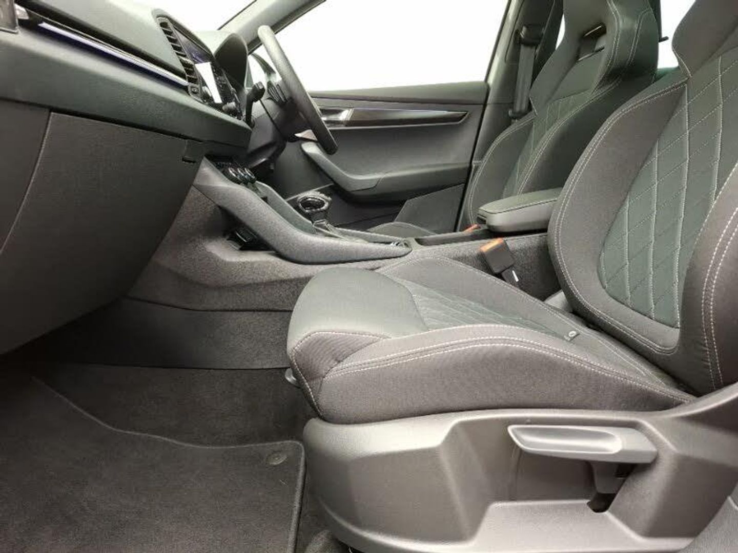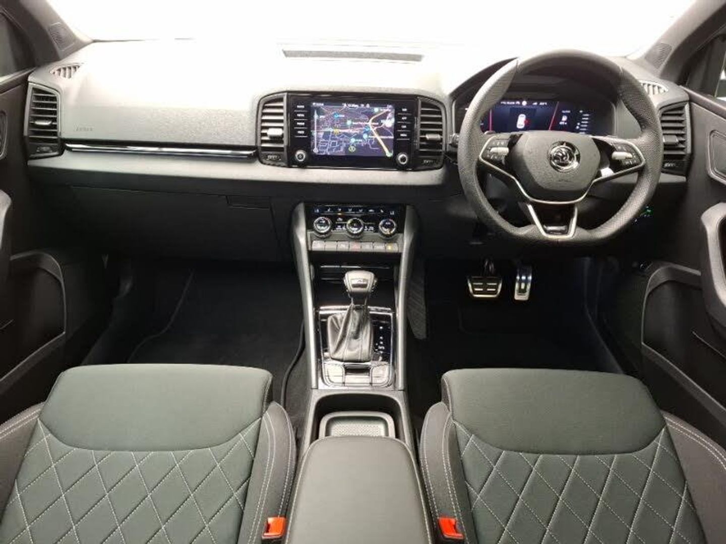 Android Auto, Apple CarPlay, Heated steering wheel, LED daytime running lights, 8" Digital display, Advanced driver attention and drowsiness monitor, SmartLink wireless for Apple and wired for Android, Virtual pedal with electrically operated boot door, Virtual Cockpit - 10.25" digital display, Wireless smartphone charging, Cruise control + speed limiter, LED daytime running lights, LED rear lights with high functionality welcome effect and dynamic indicators, Panoramic sliding sunroof, Privacy glass, Metallic paint, Isofix child seat preparation for front passenger seat, Dual zone climate control, Fabric sports seats with thermoflux and silver stitching, Light Pack - Karoq, LED Interior lighting pack with Skoda welcome logo - Karoq, 19" Sagittarius anthracite alloy wheels