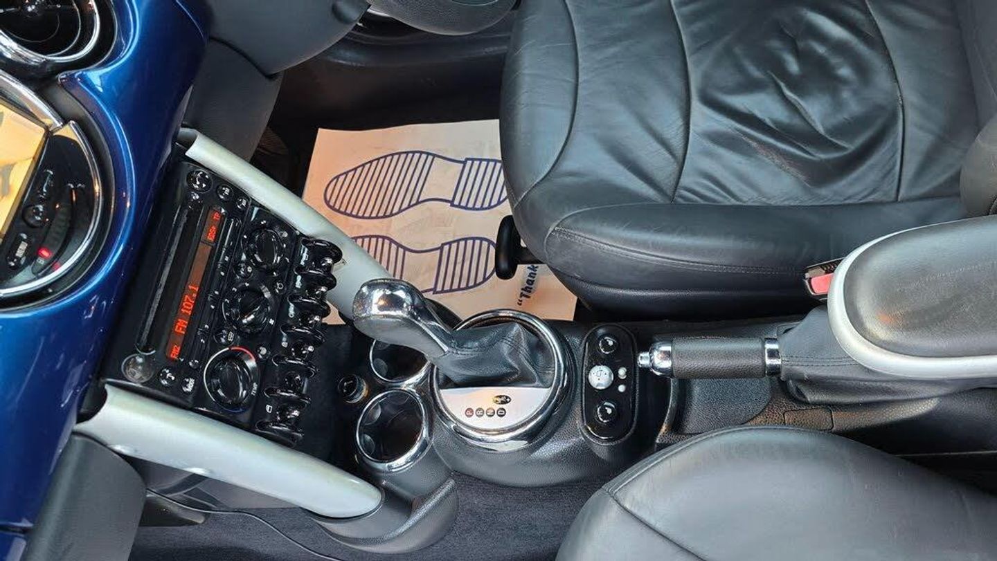 15in 5 star Rocket Alloy Wheels, 15in 7 Hole Alloy Wheels, 16in 7Spoke Fin Alloy Wheels when with Chilli Pack, 16in Bridge Spoke Alloy Wheels when with Chilli Pack, 2Spoke Steering Wheel, Anthracite Interior Trim, Anti dazzle Rear view mirror, Black hood, Body colour door mirrors, Brilliant Silver Interior Trim when with Chilli Pack, Brilliant Silver Interior Trim when with Pepper Pack, CD Changer I- bus preparation, Cassette player, Delete COOPER badge, Light Alloy Wheels & mirror caps- White, Radio WAVE, Single CD player, Soft top hood- Dark Blue, Soft top hood- Dark Green, Sport suspension - when with Chili Pack, Steptronic paddles for Steering Wheel, Tyre Repair kit with Tyre sealant & 12V C & pressor, Chili Pack Cooper, Chili Pack with Sports suspension Cooper, SatNav, Mobile phone preparation with Bluetooth interface, 17in Crown Spoke Light Alloy Wheels, Manual Air Conditioning, Xenon Headlights & wash & wipe, Visibility Pack, Front Sports Seats, Heated Front Seats, 3Spoke Sports Leather Steering Wheel, Radio BOOST, Interior Trim - body colour, Chrome line Exterior, Front Armrest, Auto dimming Rear view mirror, Chrome line Interior, Front Foglights, Interior Lights Package, Rain sensor with Auto Headlights activation, Heated Exterior mirrors & washer Jets, MINI Storage compartment Pack, Leather- Gravity with lumbar support