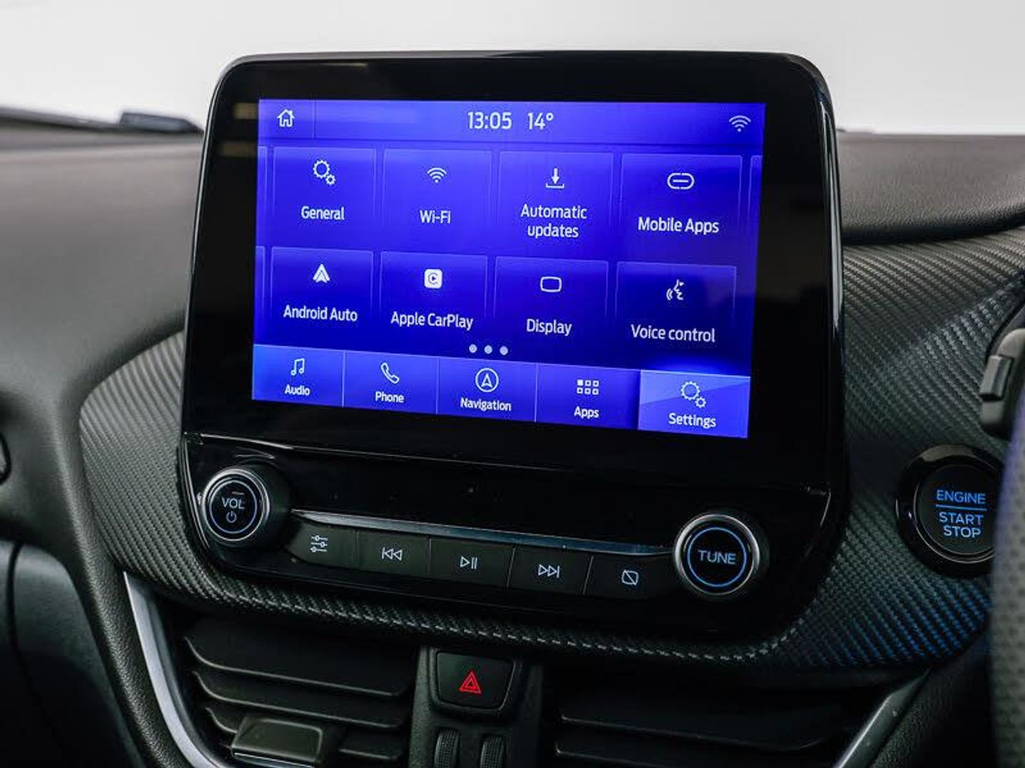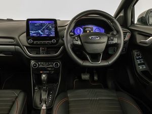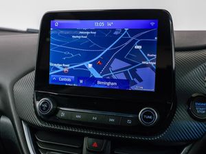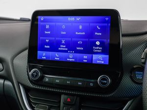 B&O Premium Audio system + Ford SYNC 3 navigation pack - Puma, Bluetooth, Full digital 12.3" instrument cluster, Automatic headlights with auto high beam, Automatic rain sensing wipers, Quickclear heated windscreen, ST-Line body styling kit with unique grille and large body colour rear spoiler, ST-Line flat bottomed sensico leather steering wheel with leather handbrake and aluminium gear knob, Sport suspension, Power start button, LED daytime running lights, Rear parking sensor, Rear parking sensor, 17" Alloy Wheels