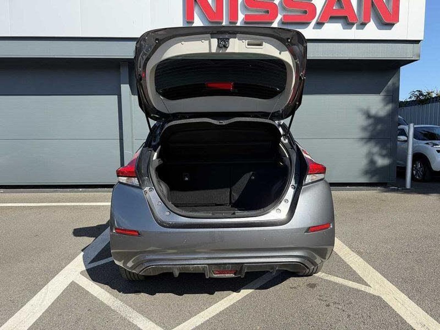 Exterior Features, Metallic paint, Safety, Body coloured door mirrors with integrated LED turn signals, Wheels, Tyre puncture repair kit, Paint - Metallic, Metallic - Gun metal, Trim - Part Leather, Part leather with ultrasuede and synthetic leather - Black, Exterior Features, Automatic rain sensing wipers, Electric front/rear windows, Rain sensor, Rear privacy glass, Rear wiper, Mac Pherson strut front suspension and twist beam axle rear suspension, Aero roof spoiler, Chrome door handles, Grey rear bumper finisher, Illuminated charge port, Rear side wing doors, Shark fin antenna, Automatic activation of hazard warning lights, Follow me home headlights, High beam assist, Intelligent auto headlights, LED signature daytime running lights with directional indicator, LED signature rear lights, LED third brake light, Safety, ABS with EBD and brake assist, Electrically driven intelligent braking system, Electronic parking brake, Electronic Stability Programme (ESP), Front and rear vented brake discs, Hill start assist, Intelligent emergency braking with pedestrian recognition, Intelligent ride control, Intelligent trace control, Traction control, VDC Dynamic Vehicle Control, 360 degree colour camera view, Blind spot intervention, Blind spot warning, Electric power assisted steering, Front and rear parking sensors, Intelligent around view monitor, Intelligent Cruise control (ICC), Intelligent driver alert system, Intelligent lane intervention, Intelligent lane keep assist, Lane departure warning system, Moving object detection, Rear cross traffic alert, Speed limiter, Traffic jam pilot, Auto dimming rear view mirror, Electrically adjustable and folding door mirrors, 3 point front seatbelts with pre-tensioners, 3x3 point rear seatbelts, Curtain airbags, Driver and passenger airbags, Front seatbelt pretensioners + load limiters, Height adjustable front seatbelts, Manual child proof rear door locks, Nissan safety shield, Seatbelt reminder for driver and front passenger, Side airbags, Tyre pressure monitoring system, Audio / Communications, Apple car play/Android Auto, eCall emergency call system, Audio system with USB, Bluetooth with audio streaming, Bose audio system 7 speakers - 2 tweeters, 4 high and medium frequency door speakers including subwoofer, DAB Digital radio, Rear USB ports, Miscellaneous, 7 inch full colour TFT screen combimeter, 8 inch colour display with touchscreen, E Pedal, EV telematics system, Navigation system with voice control, Nissan connect services app (air conditioning control, cabin heating and charging), Trip computer, Interior Features, Automatic climate control with pollen filter and timer, Energy saving cabin heating system with heat pump, PTC (Positive Temp Co-efficent) heater, 12V socket, Front centre console and armrest, Multifunction leather steering wheel, Part leather with ultrasuede and synthetic leather upholstery, Rake and reach adjustable steering column, Rear assist grips, Telescopic steering wheel adjustment, Single motor, Packs, Heat pack with Heated front seats - Leaf, LED pack with Full LED headlights - Leaf, Trim, 3 seat bench in 2nd row, 60/40 split folding rear seat, Front head restraints, Front seatback pocket, Heated rear seats, Height adjustable driver seat, Isofix child seat anchor points, Manual adjust driver/passenger seats, Rear head restraints, Single front passenger seat, Security, Deadlock, Immobiliser, Intelligent Key with push button starter, Remote central locking, Thatcham Cat.1 alarm, Vehicle Charging, 39kWh usable battery capacity, 6.6 kw On-board charger, Charging port remote opening, Max DC charging power, ChaDeMo type: up to 50kW, Wheels, 17 inch Diamond cut black alloy wheels