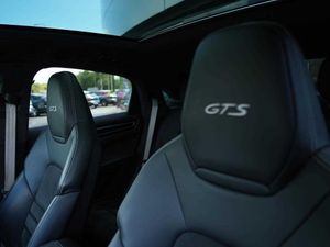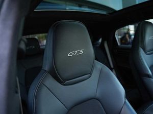 PORSCHE logo LED door courtesy lights (UD1), 22-inch 911 Turbo Design wheel (46S), 21 rear seat system (3NS), 18-way Adaptive Sports Seats with memory package (Q1J), Ambient lighting (QQ1), Automatically dimming interior and exterior mirrors (4L6), BOSE® Surround Sound System (9VL), Black SportDesign package (2D5), Exclusive Design fuel filler cap (2W6), Heated steering wheel (2ZH), HomeLink® (VC2), Ioniser (2V4), Matrix LED headlights in black, with Porsche Dynamic Light System Plus (PDLS Plus) (8JU), GTS Adaptive air suspension with Porsche Active Suspension Management (PASM) (2MA), ParkAssist including Surround View (KA6), Rear-axle steering (0N5), Seat heating (front and rear) (4A4), Smoking package (9JB), Steering column cover in leather (5HJ), Smartphone compartment with wireless charging (9ZE), Tyre sealing compound and electric air compressor (1G8)