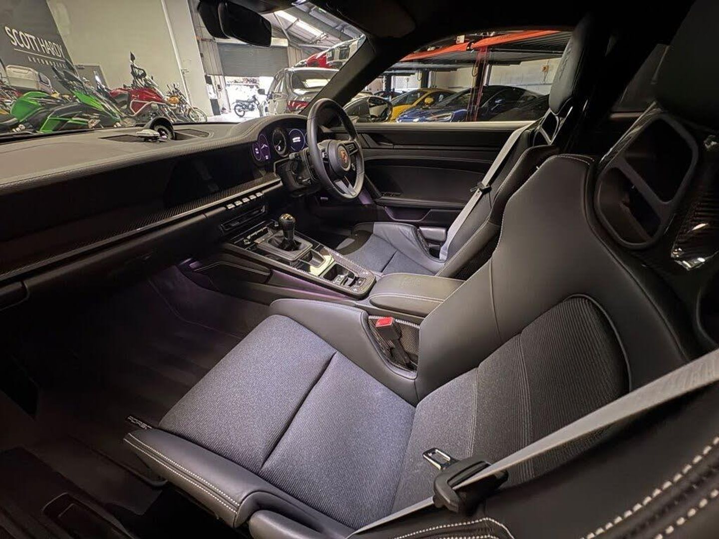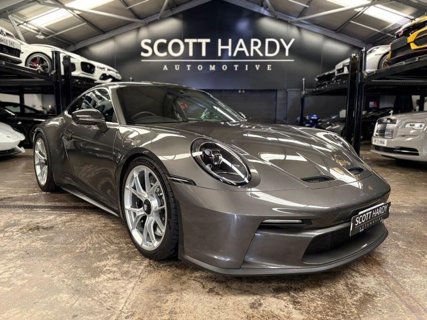 Scott Hardy are proud to present this stunning PORSCHE GT3 Touring finished in Agate grey. The Porsche 911 GT3 Touring is a track-bred Soul In a world of excess, the 911 GT3 Touring whispers its dominance. Finished in the brooding sophistication of agate Grey, it's a machine that doesn't shout—it resonates. Understated yet uncompromising, this GT3 touring is sculpted for those who know that true performance doesn't need a wing to fly. The lightweight carbon fibre roof lowers the centre of gravity and raises the pulse. Full carbon bucket seats cradle you in motorsport precision, while the carbon ceramic brakes deliver stopping power worthy of the Nürburgring. Navigate city streets with grace thanks to the front axle lift system, and illuminate every curve with the Porsche Dynamic Light System Plus—technology that sees as sharply as you drive. Inside, the BOSE surround sound system transforms every journey into a symphony, even when the flat-six sings its own operatic crescendo. This is not just a car. It's a statement of intent. A celebration of purity. A Porsche for those who understand that the thrill lies not in the spectacle, but in the drive. 911 GT3 Touring. The art of restraint. The science of speed. Full dealer facilities available, Finance available, please apply via our website or call for a quote. We have a team of experienced buyers who hand pick our cars from all parts of the UK so you can buy with confidence all vehicles are HPI Clear and prepared to the highest standard. We believe in providing our customers with a personal and first class level of service,Full dealer facilities available, Part exchanges welcomed. TO ENQUIRE OUT OF BUSINESS HOURS PLEASE CALL MATT ON: 07711097959