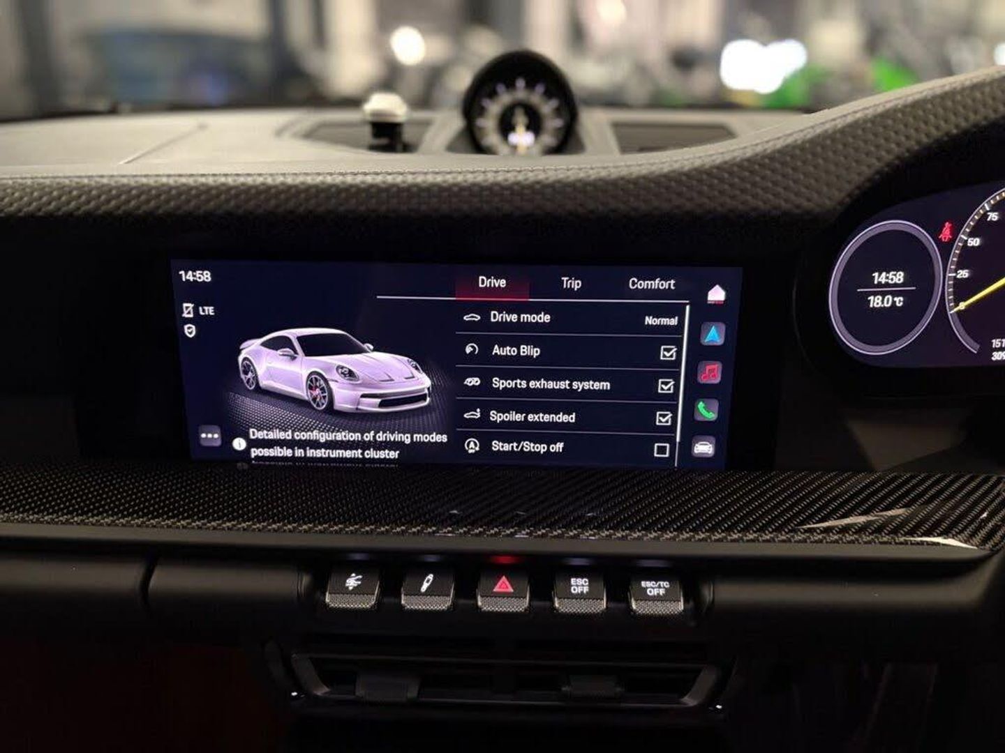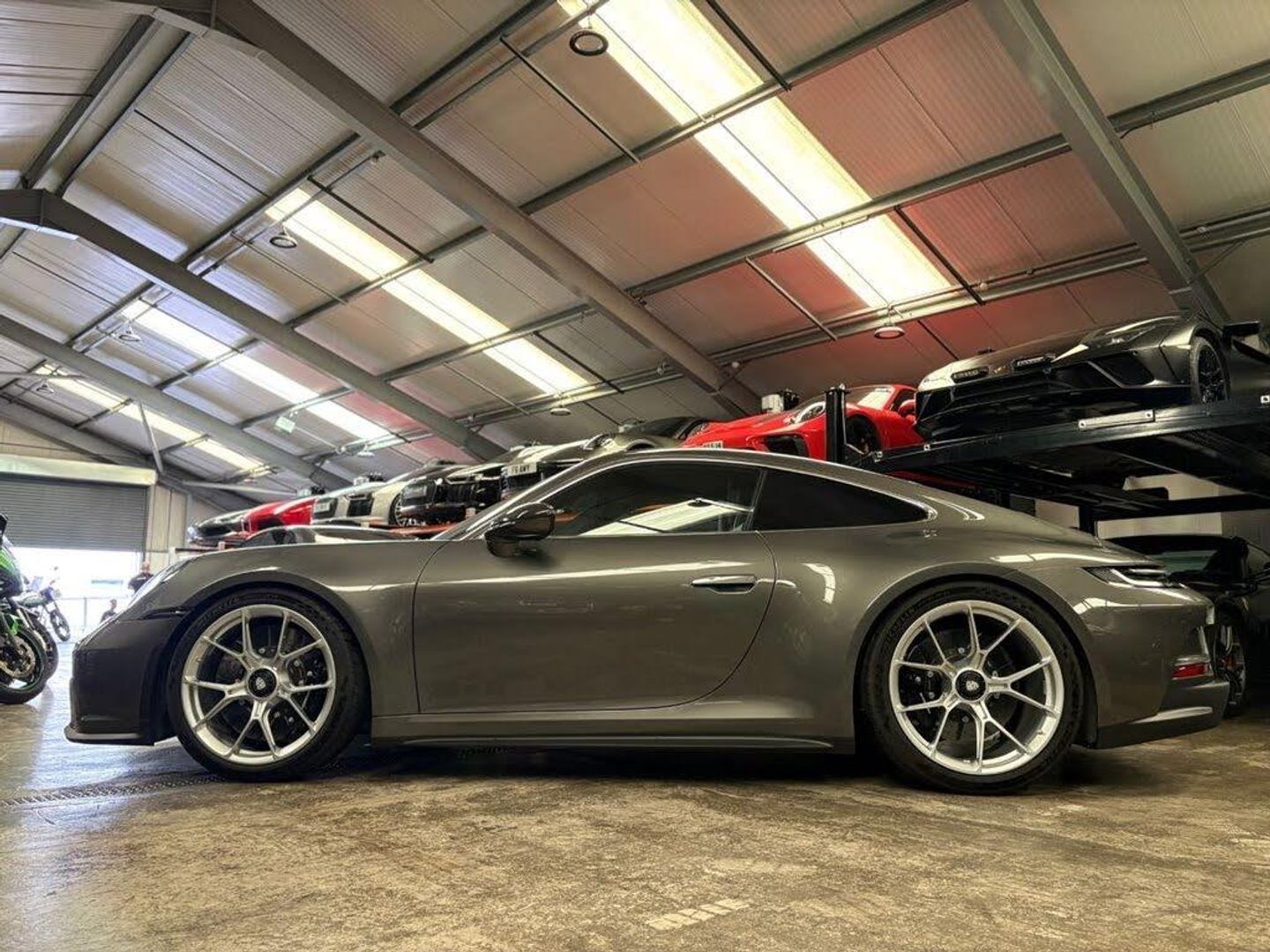 Dashboard and Door Trim Package in Leather, Extended Interior Package in Matt Carbon, Interior Package - Carbon, Seats - Full Bucket, Chrono Stopwatch Instrument Dial - White, Bespoke Door Sill Guards in Matt Carbon Illuminated, Front Axle Lift System, ParkAssist - Rear with Reversing Camera, Exterior Mirror Upper Trims in Carbon, Lightweight Carbon Roof, PCCB - Porsche Ceramic Composite Brakes - Calipers in Black High Gloss, LED Matrix Headlights including Porsche Dynamic Light System Plus, LED Main Headlights including Porsche Dynamic Light System - PDLS, BOSE Surround Sound System, Agate Grey, 2 USB-C Ports in Centre Console Main Storage Compartment Lid - 12V Socket in Passenger Footwell, 20in Front 21in Rear Alloy Wheels - 911 GT3 Forged - Silver, 3-Point Automatic Front Seat Belts with Seat-Mounted Buckles - Pretensioners and Force Limiters, Adjustable Suspension for Race Track Use, Automatic Headlight Activation including Welcome Home Lighting, Automatically Dimming Interior and Exterior Mirrors with Integrated Rain Sensor, Automatically Extendable Rear Spoiler and Distinctive Air Intake Grille including Plaque with GT3 Touring Logo, Brake Pad Wear Indicator, Brushed Aluminium Interior Package in Black, Central Wheel Bolts in Black and Wheel Hub Cover with Two-Tone Porsche Crest, Clothes Hooks on Seat Backrests, Cruise Control, Deletion of Model Designation on Rear Apron, Digital Radio, Door Sill Guards in Black Brushed Aluminium, Double Wishbone Front Suspension with Anti-Roll Bar, Electric Parking Brake, Electromechanical Power Steering with Variable Steering Ratio and Speed Sensitive Power Steering Assistance, Engine Immobiliser, Engine Water Cooled with Thermal Management, Exterior Mirrors Upper and Lower Trim Painted in Exterior Colour - Mirror Base Painted in Satin Black, Exterior Mirrors on Door Waist Rails - Electrically Adjustable and Heatable - Aspherical on Drivers Side, Floor Mats, Front Apron in Exterior Colour - Integral Cooling Air Intakes with Anthracite-Coloured Grilles and Black Spoiler Lip, Full-Size Airbags for Driver and Front Passenger, Glove Compartment - Lockable and Storage Compartment in Each Door, Heated Rear Screen, Illuminated Vanity Mirrors in Sun Visors - Driver and Passenger Sides, Instrument Cluster with Central Analogue Rev Counter - Two 7in TFT Display, Intelligent Lightweight Construction in Aluminium-Steel-Composite Construction, Keyless Go, LED Auxiliary Lights Units in Front Apron with Position Lights - Direction Indicators and Side Indicators, LED Main Headlights - Daytime Running Lights with 4-Point LED Spotlights, LED Reading Lights - Orientation - Ignition Lock - Luggage Compartment - Footwell - Glove Compartment and Exit Courtesy Lighting, Lightweight Bonnet in Carbon-Fibre Reinforced Plastic in Exterior Colour with Two Air Outlets, Lightweight Glazing made of Compound Glass and Acoustic Film, Lightweight Rear Cover - Covered with Black Carpet, Lightweight Sport Exhaust System in Stainless Steel with Two Central Stainless Steel Tailpipes in Silver, Luggage Compartment - Front, Multi-Link Rear Axle with Integrated Helper Springs - Anti-Roll Bar, Multifunction GT3 Sports Steering Wheel - Mode Switch, PASM - Porsche Active Suspension Management, PCM - Porsche Communication Management - Include Navigation, PTV Plus - Porsche Torque Vectoring Plus, PVTS - Porsche Vehicle Tracking System, Particle-Pollen Filter with Active Carbon Filter, Porsche Connect Online Navigation, Porsche Side Impact Protection - POSIP, Porsche Stability Management - PSM Including ABS with two Switchable Stages - SC OFF and SC Plus TC OFF, Porsche Track Precision App, Power Windows with One-Touch Operation and Door Seal Protection Function, Preparation for Porsche Dashcam, Rear Apron with Additional Air Outlets Including Anthracite-Coloured Grilles - Black Lower Section, Rear Axle Steering with Sports Tuning, Remote Central Locking, Retractable Door Handles, Rev Counter with Digital Display for Selected Gear and Vehicle Speed - Distinguishable Dial and Illuminated GT3 Logo, Roof Lining and A-B-C Pillars in Fabric, Seamless Taillight Strip with Integrated Porsche Logo in High Gloss Light Silver, Seat Bolsters - Headrests and Steering Wheel Airbag Module in Black Leather, Side Window Trims in Anodised Aluminium and Side Skirts in Black, Six-Piston Closed Type Aluminium Monobloc Fixed Brake Calipers at Front and Four-Piston Closed Type Aluminium Monobloc Fixed Brake Calipers at Rear - Brake Calipers with Red Finish, Smartphone Integration - Apple Carplay and Android Auto, Sound Package Plus, Sports Seats Plus - Electrical 4 Way, Stitching and Door Release Levers in Black, Taillight Strip as Rear Driving Lights with Integrated Parking and Rear Fog Light, Taillights with Brake Light - Reversing Light and Direction Indicators Plus Third LED Brake Light, Two Individual Cupholders, Two-Zone Automatic Climate Control, Tyre Pressure Monitoring - TPM, Tyre Repair Kit, Underbody Panelling with Rear Diffuser Featuring Fins, VarioCam Plus, Water-Repellent Coating on Side Windows, Windscreen Washer System with Aero Wiper Blades and Washer Jets, Windscreen with Grey Top-Tint