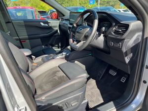 12-Way Ergonomic Power Adjust Drivers and Passengers Seat12V Power Point in Floor Console12v Power Point in Cargo Area12v Socket - Voltage Regulator19in Alloy Wheels - ST-Line- Ebony Black - Machined Finish2nd Row Sliding Seats360 Degree CameraABS - Anti-lock Braking SystemAdaptive Cruise ControlAir Conditioning - Electronic Automatic Temperature Control - EATCAirbag - Driver and Front Passenger SideAirbag - Front Passenger Deactivation SwitchAirbags - Driver and Front PassengerAirbags - Front and Rear Side CurtainAluminium - Finish Front Scuff Plates with ST-Line ScriptAluminium Foot Pedals - ST-Line DesignAmbient LightingAuto Dimming Rear View MirrorAuto WipersAutomatic Door RelockingBlack Roof RailsCentre Console with Electronic Parking BrakeChild Locks - Manual on Rear DoorsCross Traffic AlertDigital Colour 12.3in Instrument ClusterDriver Assistance PackDriver and Passengers Sun Visor with IlluminationDual Exhaust Tailpipes with Unique Brushed Stainless Steel FinishEPAS - Electric Power Assisted SteeringElectric Parking Brake with Auto HoldElectrical Charging Point in Second RowEngine Immobiliser - SecuriLockExterior Door Handles - Body ColouredFord Easy Fuel SystemFord Keyfree System - Keyless Entry with Ford Power Starter ButtonFord SYNC 4 NavigationFront Seats - 2-Way Manual Height Adjust Passive Head RestraintsFront Seats - Drivers and Passengers Seatback Map PocketsFront Seats - Sports Style V-shape with High BolsterFront Windows - Laminated GlassFront and Rear Bumper - Sporty Body Colour with Rear Ebony High-Gloss InsertFront and Rear Floor Mats with Red StitchingFront and Rear Parking SensorsFull LED HeadlampsGearshift - Automatic - Electronic Rotary Gearshift DialGlovebox LightsHandsfree Power TailgateHeadlights - Automatic Follow Me Home LightingHeadlights - Automatic High Beam AssistHeadlights - Levelling System - ManualHeadlights - Unique BendingHeadliner - Sports DarkHeated and Power Folding Door Mirrors - Puddle Lights - Memory Function - CameraHigh-Mounted Brake LightKuga BadgeLED Daytime Running LightsLED Fog Lights - FrontLane Keeping Aid with Lane Departure WarningLarge Rear SpoilerLoad Compartment - LightsLoad Compartment - Tie Down HooksLoad Compartment CarpetLocking Wheel NutsLower Bodyside Moulding - Body ColourLower Door Frame Beltline - BlackMini Overhead Console with Sunglasses Holder BinMyKeyPop-Out Door Edge ProtectorsPower Door Deadlocks - Double LockingPower Door LocksPower Opening Panoramic RoofPre-Collision Assist with Autonomous Emergency BrakingQuickclear Heated WindscreenRear Duct on B-PillarRear Lights - LEDRear Privacy GlassRear Seat - 60-40 Split Folding SeatsRear Seat Centre Head RestraintRear Seats - 2-Way Head Restraint Up-DownRear Seats - Folding Centre Armrest with Integrated Cup HolderRear Seats - Sliding Seat Adjust Tracks - Fore-AftRed Brake CalipersRemote Tailgate ReleaseRemovable Package TrayRocker Panel Mouldings - Body Colour - ST-Line DesignST-Line Badge on Left and Right Side WingsST-Line Bodystyling KitST-Line Front and Rear Bumper Moulding - Body ColourSeat Belt - Drivers - Front Passenger and Rear Seat Belt Reminder AlertSeat Belts - Front 3-Point Seatbelts with Load LimiterSeat Belts - Front Height AdjustableSeat Belts - Rear Retractable Rear Belt - 3-Point All PositionsSeats - ISOFIX Mounting Provision for Child Seats - Outer Seats OnlySelectable Drive ModesSingle Rear Fog LightSteering Column - Locking ElectricSteering Column - Rake and Reach AdjustmentSteering Wheel - ST-Line Sports-Style Perforated Sensico-Trimmed with Red StitchingSuspension - SportsTailgate Handle - Body ColourTether Anchorage - Two Rear Seat Top Tether Anchorage RestraintsThatcham Category 1 Perimeter and Volume Sensing AlarmTow Hooks - Front and RearTrip ComputerTyre Inflation KitTyre Pressure Monitoring SystemUpper Door Frame Beltline - BlackWindows - Power Front and Rear with Global ClosingWinter PackWiper - Intermittent Rear Window WiperWrong Way AlerteCall