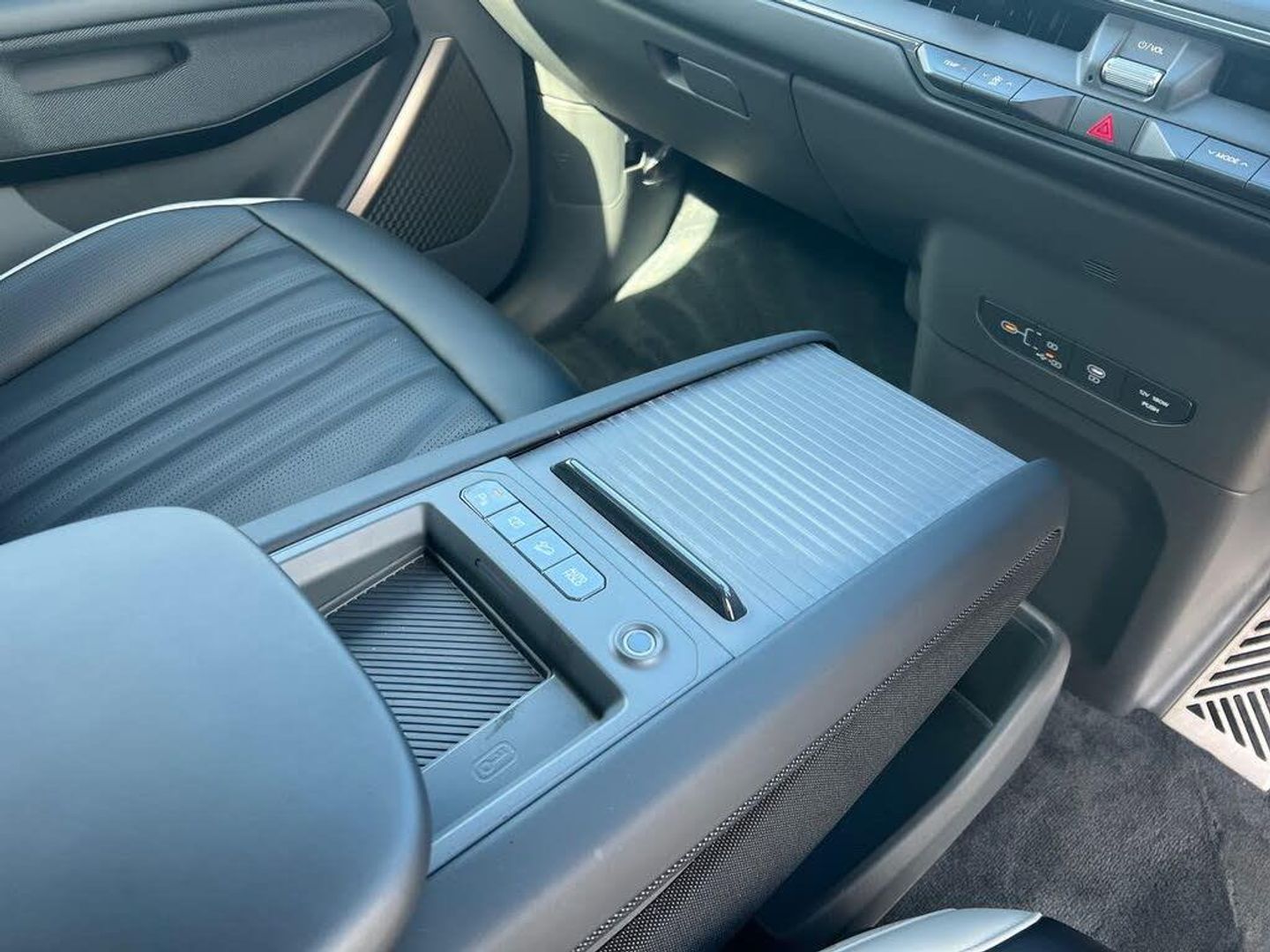 12.3" Driver display screen, 12.3" Touchscreen navigation system, 360 degree around view monitor, 5.3" Climate control touchscreen, Apple car play/Android Auto with voice control, Blind spot collision avoidance assist (BCA), Blind spot monitor, Bluetooth connectivity with voice recognition, Drive mode selector, E-call, Fingerprint recognition, Forward collision avoidance assist, Front parking sensors, Head up Display, Highway Driving Assist 2 with hand-on detection (HDA2 w HOD), Intelligent speed limit assist (ISLA), Lane Following Assist 2 (LFA2), Lane keep assist, Low washer fluid warning, Manual speed limit assist (MSLA), Navigation based smart cruise control with stop and go functionality, Over air updates (OTA), Parking collision avoidance assist (PCA), Power assist steering, Rear cross traffic assist, Rear parking sensors, Remote Smart Park Assist 2.0 (RSPA 2.0), Smart power tailgate, Terrain mode select, Wireless Mobile Phone Charger, Acceleration boost, 2 USB-C ports in the front, 2 x USB-C charge port on 3rd row, 2 x USB-C charge port on front seats, Meridan premium sound system with 14 speakers, Steering wheel mounted controls, USB-C port for connection of a media device, 2nd row fixed sunroof with electric blind, All round electric windows with drivers auto up/down function, Automatic defog system, Automatic headlight control system, Black side sill moulding, Body colour exterior door handles - flush, Body coloured bumpers, Dark Satin Finish Beltline, Deluxe door scuff plates, Electrically folding/adjustable/heated door mirrors with LED indicators, Electronic rear view mirror with full display, GT exterior styling, Heated rear window, High gloss black door garnish, High gloss black door mirrors, High level LED brake light, LED daytime running lights, LED rear combination lights, LED rear fog lights, Rain sensing front wipers, Rear privacy glass, Rear side wing doors, Rear spoiler, Rear wiper, Roof Rails - Bridge Type, Silver painted front and rear skid plates, Small cube LED headlights with adaptive driving beam, Sunroof with tilting and sliding function, Trailer stability assist, 1 x Front 12V socket, 1 x Luggage compartment 12V socket, 1 x Luggage compartment 3-Pin socket, 2 seats in 2nd row with console sliding table, 2 seats in 3rd row, 2nd Row centre armrest with and cupholders, 2nd Row Manual Window Blinds, 2nd row passenger grab handle, 2nd row sliding seat with reclining function, 4-Spoke Artificial Leather Steering Wheel with Illuminated Emblem, 50:50 split remote folding 3rd row seats, Alloy pedals, Ambient lighting, Artificial leather upholstery, Black headlining, Centre console cupholders, Centre console with open storage compartment and armrest, Driver + front passenger electric lumbar support, Driver and front passenger premium relaxion seats, Driver and passenger sunvisors with illuminated LED vanity mirrors, Driver power adjusted memory seat with front passenger power seat, Dual zone air conditioning (Front and 2nd row), E-Shift Column Gear Selector, Electric tilt/telescopic steering wheel, Ergo motion driver seat, Fabic centre console, Front and rear door storage, Front seat back pockets, Front seat headrest up/down and sliding adjustment, Frunk LED lights, Heat pump, Heated and ventilated front seats and rear first row seats, Heated steering wheel, Illuminated glovebox, Interior door lock/unlock function, ISOFIX Child seat top tethers and anchor fixings, LED lighting in overhead console, LED luggage area lights, Luggage area load cover, Luggage net + hook, Metal paint interior door handles, Rear seat head restraint, Regenerative braking paddles, Rotating Roof Vents in 2nd & 3rd Row, Single front passenger seat, Suede sunvisors, Under floor storage in luggage area, Vehicle 2 load technology including 3 pin domestic socket, 3 point seatbelts on all seats, ABS, Active bonnet, Automatic unlocking of doors in case of impact, Downhill brake control, Dual shell horn, Dynamic brake control, Electric parking brake with auto hold function, Electronic stability control, Front and rear curtain airbags, Front and rear side airbags, Front centre airbag, Height adjustable front seatbelts, Hill start assist control (HAC), Multi collision brake assist, Power child locks, Tyre pressure monitoring system, Vehicle stability management, Digital key, Engine immobiliser, Engine Start/Stop Button with Smart Entry System, Locking wheel nuts, Rear occupant alert, Thatcham category 1 alarm, Visible vehicle identification number, 21" Alloy wheels, Tyre mobility kit