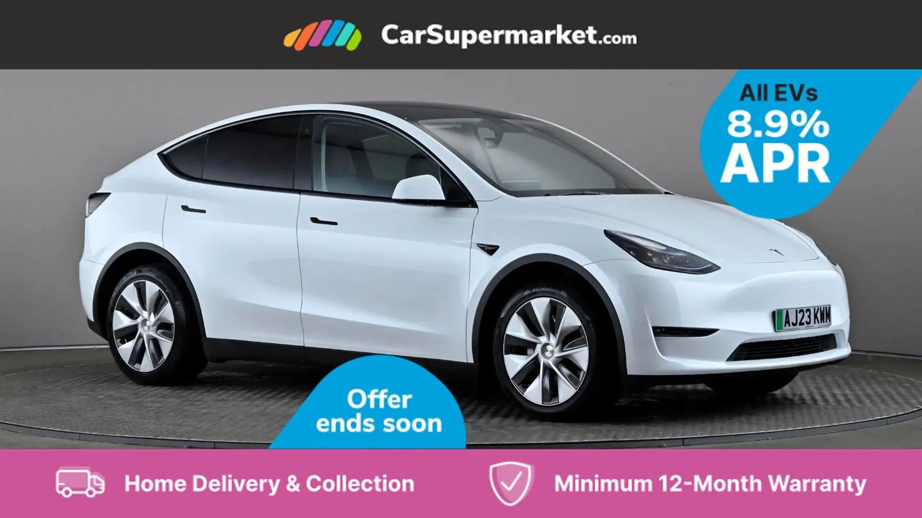 15" Touchscreen, Blind Spot Monitoring, Bluetooth, Sat Nav, Digital Radio, Heated Front Seats, Heated Steering Wheel, Keyless Entry, Wireless Phone Charging;With its MOT valid until June 2026 and a recent service completed in August 2025 at 22,556 miles, this 2023 Tesla Model Y Long Range presents a compelling proposition. As a single owner vehicle with a clear history check, it offers peace of mind alongside its impressive electric capabilities. This Four Wheel Drive model boasts an 85 kWh battery, providing a maximum range of 331 miles when new. Inside, you'll find a host of convenient features, including music and media via Bluetooth, Blind Spot Monitoring for enhanced safety, and an expansive glass roof with ultraviolet and infrared protection. Comfort is also a priority, with a heated steering wheel and wireless phone charging ensuring a pleasant driving experience. The performance of this Tesla Model Y is truly noteworthy, with an acceleration of 0-60mph in just 4.8 seconds, demonstrating its dynamic power. This acceleration figure is a key indicator of how this vehicle outperforms many others in its class. Furthermore, the generous boot space offers exceptional practicality for everyday use and longer journeys. Charging is also efficient, with a full charge at home taking approximately 12 hours on a 7kW charger, and the fastest public charging option can take the battery from empty to 80% in as little as 25 minutes.