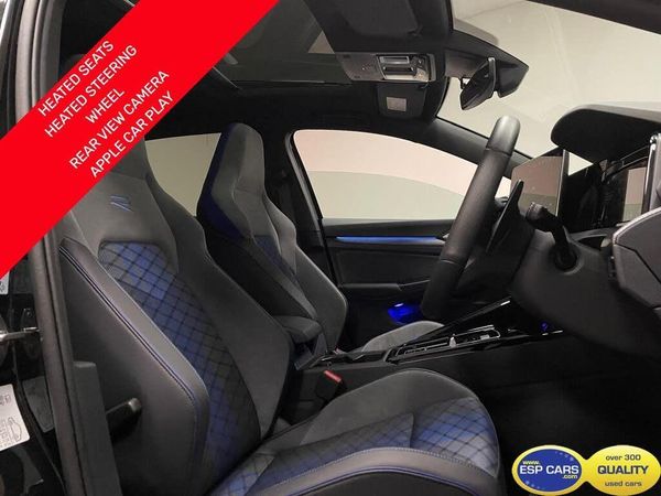 12V Socket - Centre Console, 12V Socket - Luggage Compartment, 2 USB-C Ports in the Front - 2 USB-C Ports in Centre Console in the Rear - Charging Capacity up to 45 W, 6 Speakers - 4 Front-2 Rear with Centre Speaker, DAB - Digital Radio Reception, eCall - Emergency Call Service, E-Sim Card for Online Connectivity, Mobile Phone Interface with Wireless Inductive Charging Function, Navigation System, Preparation for We Connect and We Connect Plus, Wireless App Connect, Adaptive Cruise Control, Advanced Driver Attention and Drowsiness Monitor, Driving Profile Selection, Dynamic Road Sign Display, Lane Change System with Side Assist - Rear Traffic Alert and Exit Warning System, Parking Sensors - Front and Rear, Rear View Camera, Speedo - Rev Counter - Electronic Odometer - Trip - Service Interval Display and Exterior Temperature Display, Tyre Pressure Loss Indicator, Voice Control and Voice Enhancer, 19in Alloy Wheels - Estoril Black, Black Edition, Body Coloured Bumpers, Body Coloured Door Handles, Brake Calipers - Front and Rear - Black with Darkened R Logo, Door Mirrors - Convex on Passenger Side - Aspherical on Driver Side, Exterior Ambient Lighting with Illuminated Lighting Animation with Wake Up-Goodbye Scenario, Heat Insulating Glass in Side and Rear Windows, Laminated Safety Glass Windshield - Heat Insulating, Mirror Caps in Black - Black Strips on Radiator Grille and Headlights - Headlights Darkened, R Name Plate, R Styling Pack, Rear Exhaust Tailpipe, Rear Fog Light on One Side and Reversing Lights on Both Sides, Rear Tinted Glass, Remote Electrically Foldable Door Mirrors - Puddle Lights and Reverse Activated Passengers Door Mirror, Tyre Mobility Kit and Compressor, Automatic Headlight Control with LED Separate Daytime Running Lights and Coming Home-Leaving Home Feature, Dynamic Headlight Range Control, LED Rear Lights with Dynamic Turn Signal, Matrix LED Headlights with Automatic Headlight Control - Poor Weather Light and Entry Lighting, Poor Weather Light and Cornering light, 3-Point Seat Belts for the Outer Rear Seats, Activated Carbon Canister - Evaporative Emission Control System - EVAP, Air Care Climatronic 3-Zone with Rear Air Conditioning Control Panel, Aluminium Gearshift Knob and Handle, Auto-dimming Rear View Mirror, Carpet Mats - Front and Rear, Decorative Inserts Carbon Grey in Dash and Front Door Trim Panels, Digital Cockpit Pro, Diversity Antenna for FM Reception, Door and Side Trim Panel, Door Insert - Side Trim Panel and Arm Support in Leatherette, Front Centre Armrest, Front Seats with Manual Height Adjustment, Heated Front Seats, Integrated Head Restraints for Front Seats, LED Light Unit in Front Footwell - Selectable Light Colour, Manually Adjustable Lumbar Support in Front Seats, Pedals - Brushed Stainless Steel, Preparation for Light Assist System for Features on Demand, Rain Sensor, Reading Lights - Front and Rear x2 Incorporating LED Technology, Rear Seat Bench Unsplit - Backrest Split Folding with Centre Armrest - Cupholder and Loadthrough, Sport Seats in Front, Steering Wheel - Leather Wrapped - Sports - Heated - Multifunction - Touch Control - Shift Paddles, Sun Visors with Illuminated Vanity Mirrors, Technology Package Park and Comfort, Three Rear Head Restraints, Welcome Light with Surround Lighting, Dynamic Steering, Electronic maximum Speed Limit Increased to 270 kmh, Front Stabilizer Bar, Progressive Steering, Speed Limiter, Sports Suspension, Start-Stop Function with Battery Regeneration - Recuperation - Energy Recovery During Braking, 3-Point Seatbelts in Front with Height Adjustment and Seatbelt Pretensioners, Alarm with Interior Protection, Autonomous Emergency Braking - Front Assist with Pedestrian and Cycling Monitoring, Curtain and Side Airbags in Front with Centre Airbag, Disc Brakes in Front, Disc Brakes in Rear, Driver and Front Passenger Airbag with Front Passenger Airbag Deactivation, Drivers Assistance Pack, Electronic Parking Brake with Auto Hold Function, ESC - Electronic St