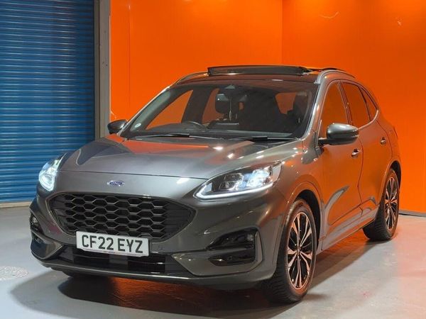 10-Way Power Adjustable Drivers Seat, 12V Power Point in Floor Console, 12v Power Point in Cargo Area, 12v Socket - Voltage Regulator, 19in Alloy Wheels - 5x2 Spoke - High Gloss - Machined, 2nd Row Sliding Seats, 8-Way Manual Passenger Seat including Lumbar Support and Height Adjust, ABS - Anti-Lock Braking System with Enhanced Electronic Stability Control - ESC with Traction Control - Emergency Brake Assist - EBA - Hill Start Assist, Air Conditioning - Electronic Automatic Temperature Control - EATC, Airbag - Driver and Front Passenger Side, Airbag - Front Passenger Deactivation Switch, Airbags - Driver and Front Passenger, Airbags - Front and Rear Side Curtain, Aluminium - Finish Front Scuff Plates with ST-Line Script, Aluminium Foot Pedals - ST-Line Design, Ambient Lighting, Auto Dimming Rear View Mirror, Auto Wipers, Automatic Door Relocking, Automatic Headlights with Auto High-Low Beam, Black Roof Rails, Centre Console with Electronic Parking Brake, Cruise Control with Intelligent Speed Limiter, Driver and Passengers Sun Visor with Illumination, Dual Exhaust Tailpipes with Unique Brushed Stainless Steel Finish, EPAS - Electric Power Assisted Steering, Electric Childproof Locks on Rear Doors, Electric Parking Brake with Auto Hold, Electrical Charging Point in Second Row, Engine Immobiliser - SecuriLock, Exterior Door Handles - Body Coloured, Ford Easy Fuel System, Ford Keyfree System - Keyless Entry with Ford Power Starter Button, Ford SYNC3 DAB Navigation System, Front Lower Grille - Ebony Black Mesh, Front Seats - 2-Way Manual Height Adjust Passive Head Restraints, Front Seats - Drivers and Passengers Seatback Map Pockets, Front Upper Grille - Carbon Black Honeycombe Mesh and High-Gloss Black Surround, Front Windows - Laminated Glass, Front and Rear Bumper - Sporty Body Colour with Rear Ebony High-Gloss Insert, Front and Rear Floor Mats with Red Stitching, Front and Rear Parking Sensors, Full Digital 12.3in Instrument Cluster, Full LED Headlamps, Gear Shift - Unique Sensico-Trimmed Knob with Satin Aluminium Insert and Red Gaiter Stitching, Glovebox Lights, Handsfree Power Tailgate, Headlights - Automatic Follow Me Home Lighting, Headlights - Levelling System - Manual, Headlights - Unique Bending, Headliner - Sports Dark, Heated Driver and Passenger Seats, Heated Rear Seats, Heated Steering Wheel, Heated and Power Folding Door Mirrors with Puddle Lights, High-Mounted Brake Light, Kuga Badge, LED Daytime Running Lights, LED Fog Lights - Front, Lane Keeping Aid with Lane Departure Warning, Large Rear Spoiler, Load Compartment - Lights, Load Compartment - Tie Down Hooks, Load Compartment Carpet, Locking Wheel Nuts, Lower Bodyside Moulding - Body Colour, Lower Door Frame Beltline - Black, Mini Overhead Console with Sunglasses Holder Bin, MyKey, Power Door Deadlocks - Double Locking, Power Door Locks, Power Opening Panoramic Roof, Pre-Collision Assist with Autonomous Emergency Braking - Camera Detection, Privacy Glass, Quickclear Heated Windscreen, Rear Duct on B-Pillar, Rear Lights - LED, Rear Seat - 60-40 Split Folding Seats, Rear Seat Centre Head Restraint, Rear Seats - 2-Way Head Restraint Up-Down, Rear Seats - Folding Centre Armrest with Integrated Cup Holder, Rear Seats - Sliding Seat Adjust Tracks - Fore-Aft, Rear View Camera, Red Brake Calipers, Remote Tailgate Release, Removable Package Tray, Rocker Panel Mouldings - Body Colour - ST-Line Design, ST-Line Badge on Left and Right Side Wings, ST-Line Bodystyling Kit, ST-Line Front and Rear Bumper Moulding - Body Colour, Seat Belt - Drivers - Front Passenger and Rear Seat Belt Reminder Alert, Seat Belts - Front 3-Point Seatbelts with Load Limiter, Seat Belts - Front Height Adjustable, Seat Belts - Rear Retractable Rear Belt - 3-Point All Positions, Seats - ISOFIX Mounting Provision for Child Seats - Outer Seats Only, Selectable Drive Modes, Single Rear Fog Light, Sports Seats, Steering Column - Locking Electric, Steering Column - Rake and Reach Adjustment, Steering Wheel - ST-Line Sports-Style Perforated Sensico-Trimmed with Red Stitching, Suspension - Sports, Tailgate Badge - Hybrid - MHEV, Tailgate Handle - Body Colour, Tether Anchorage - Two Rear Seat Top Tether Anchorage Restraints, Thatcham Category 1 Perimeter and Volume Sensing Alarm, Tow Hooks - Front and Rear, Trip Computer, Tyre Inflation Kit, Tyre Pressure Monitoring System, Upper Door Frame Beltline - Black, Windows - Power Front and Rear with Global Closing, Winter Pack, Wiper - Intermittent Rear Window Wiper, Wrong Way Alert, eCall, Magnetic, Partial Sensico - Rapton Cloth - Ebony with Red Stitching, Wireless Charging