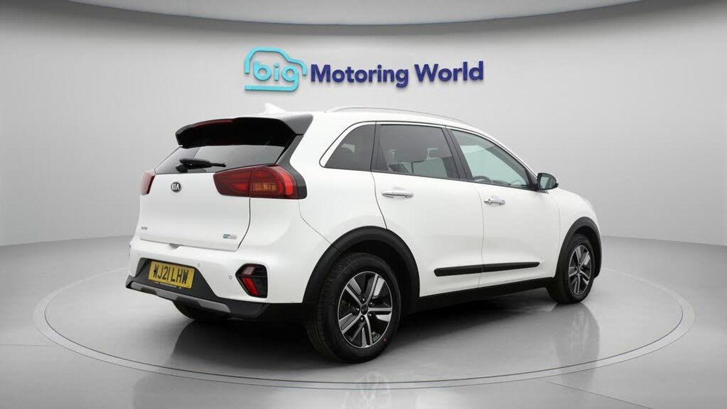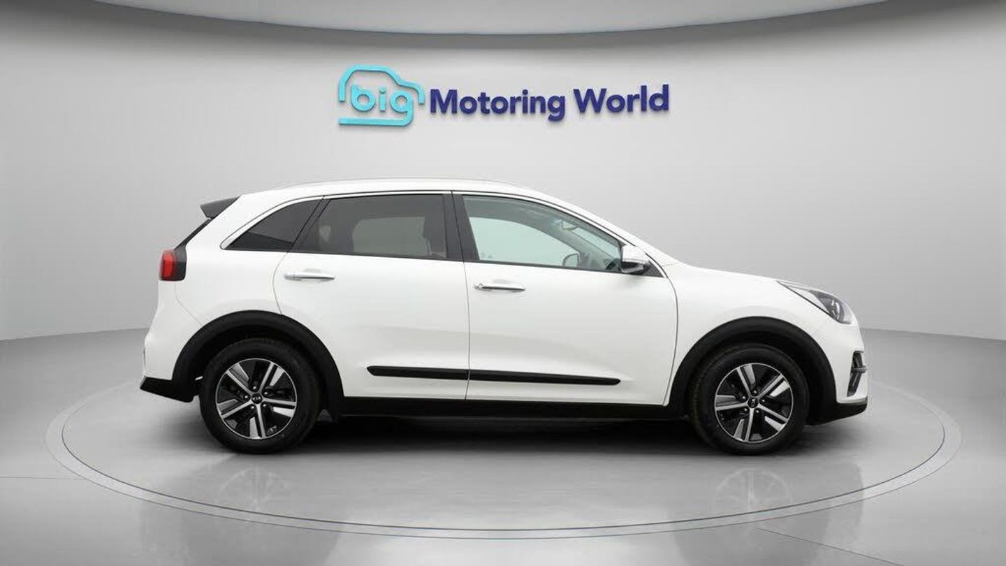 Part Leather Seats,Apple CarPl-Our Kia Niro is finished in White. Specification includes a range of fantastic features including Part Leather Seats, Apple CarPlay, Adaptive Cruise Control, Android Auto, Privacy Glass, Rear View Camera, Bluetooth, Parking Sensors, Ambient Lighting, 2 Zone Climate Specification information is supplied by CAPHPI and may vary to the actual car. This data does not form any part of a buying contact. Please check specification prior to purchase in-store. The MOT is valid until April 2026, visit bigmotoringworld.co.uk for more photos, a 360 tour, service history and a free HPI report.Were BIG on peace of mind and this White Kia Niro has completed our comprehensive 200 point inspection and passed all checks. Its ready for you to drive away with immediate collection in-store. We include a 90-day warranty as standard plus an option to extend for up to 3 years.Reserve this car exclusively for you, safely and securely at bigmotoringworld.co.uk, with a fully refundable £99 deposit. Test drive before you buy, with no commitment, no hassle and a completely haggle free experience. Still searching and want to see thousands more cars? We are BIG on choice with over 8000 cars to choose from.Visit our award winning web site bigmotoringworld.co.uk.Were Big Motoring World and were BIG on what matters to you.