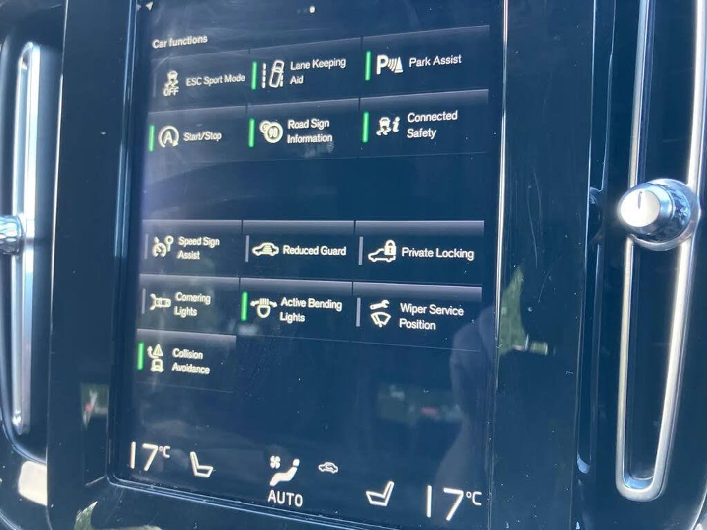 12.3" Active TFT crystal driver's instrument display,9" Touch screen,Adjustable steering wheel force,Bluetooth hands free telephone kit,Drive mode selector,E-call,Lane keep assist with driver alert control,Oncoming Lane Mitigation,Sensus navigation system,Speed limiter,Speed sensitive steering,Voice control system,Volvo on call,DAB Digital radio,Steering wheel mounted remote controls,Active bending headlights,Adaptive brake lights,Auto dimming interior mirror,Automatic headlamp levelling,Dark grey front grille with chrome surround,Electrically adjustable and heated door mirrors,Front and rear electric windows,Front tread plates,Headlamp cleaning system,Heated front windscreen,Heated washer nozzles,High Gloss silver front and rear skid plate,Home safe and approach lighting,LED front fog lights with static cornering light function,LED Headlights + Active high beam incorporating daytime running lights,Rain sensor windscreen wipers,Rear wiper,Roof antenna,Roof spoiler,Silver roof rails,Visible VIN plate,12V socket in front tunnel console,2 zone electronic climate control with air quality system,3 spoke leather steering wheel with chrome trim,60/40 split folding rear seat,A-pillar parking ticket holder,Centre console cupholders,Centre console storage box,Cooled glovebox,Driver seat height/tilt/lumbar adjust,Driver's lower storage shelf,Extended front seat cushions,Floor mats,Front footwell illumination,Front reading lights,Glovebox bag hook,Glovebox illumination,Heated front seats,Height/reach adjustable steering column,Illuminated driver/passenger vanity mirrors,Illuminated luggage compartment,Isofix attachments on outer rear seats,Leather gearknob,Load protection net,Passenger seat adjustable for lumbar support,Pollen filter,Power memory driver's seat + door mirror memory,Rear armrest / integral cup holders / storage tray,Theatre lights,Underfloor stowage compartment,ABS/EBD,City safety,Drivers knee airbag,DSTC-Dynamic Stability and Traction Control,Dual stage driver/passenger airbags,EBA,Electronic parking brake with auto hold,Fasten seatbelt reminder,First aid kit,Front seat side impact airbags,Hill descent control,Hill start assist,Inflatable curtain,Passenger airbag cut-off device,Road sign information display,Run off Road Mitigation,Run off Road Protection,Seatbelt pre-tensioners,Side impact protection,Tyre pressure monitoring system,Warning triangle,WHIPS whiplash protection system - front,Anti-theft alarm including immobiliser/volume sensor + level sensor,Fuel flap with deadlocking system,Key integrated remote control central locking,Locking wheel nuts,Private locking,Onyx Black,Textile-Vinyl - Charcoal