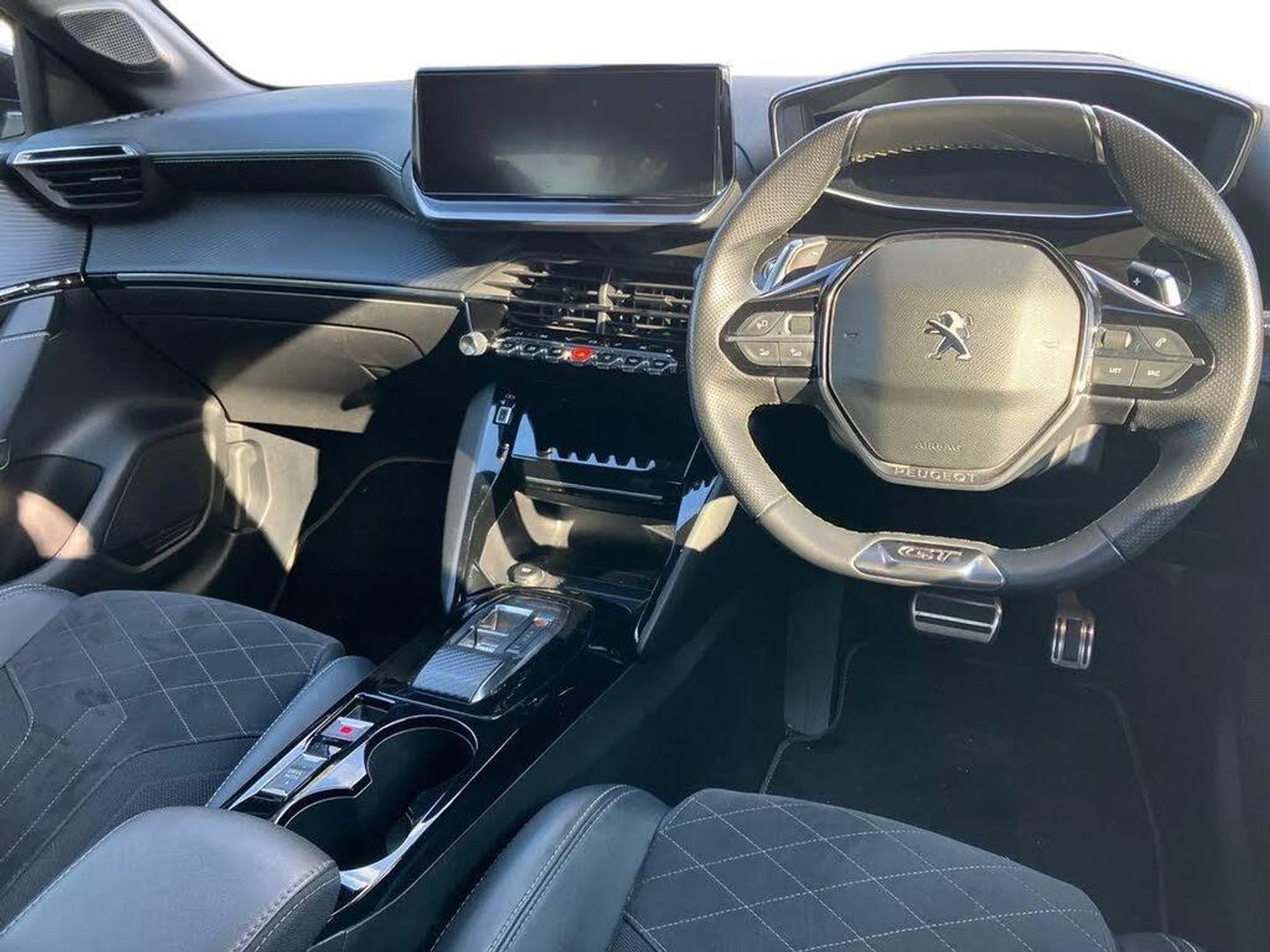 10" Capacitive colour touchscreen with connected 3D navigation,Blind spot monitoring,Bluetooth telephone facility,Driver attention warning,e-Toggle driving selector,Exterior temperature indicator with ice warning,Mirror screen with mirror link, apple carplay and android auto,Multi function trip computer,PEUGEOT i-Cockpit with compact steering wheel,PEUGEOT i-Cockpit with configurable 3D headup instrument panel,PEUGEOT SOS and assistance,Push button start,Smart phone docking station,Speed limit recognition and recommendation,Start/stop system,Visio park assist 180 with colour reversing camera + front and rear parking sensor,2 front USB socket with USB-C,2x USB sockets in rear,6 speakers radio with mp3 compatible,DAB Digital radio,Voice recognition for radio, navigation and telephony features,2 X Rear number plate lights,Automatic hazard light activation upon heavy brake application,Automatic lights,Automatic windscreen wipers,Body coloured exterior door handles,Dark tinted rear side and tailgate windows,Diamond Black roof,Electric front windows + one touch + anti-pinch,Electric rear windows with one touch/anti-pinch,Electrically adjustable, heated and power folding door mirrors,Extended diamond black rear spoiler,Follow me home headlights,Frameless electrochrome interior rear view mirror,Full LED headlights with smartbeam assist,Gloss black finish on B pillar,Gloss black rear cluster connecting strip,Gloss black wheel arch extensions,Gloss black window surround,GT model designation badging on C pillar,GT model designation badging on tailgate,Headlights left on audible warning,LED daytime running lights with 3 claw headlight with distinctive tooth design,LED side indicator lights integrated into door mirrors,LED third brake light,Model designation badges front and rear,Nera black door mirror shells,Peugeot scuff plates,Radiator grille - Dark chrome chequered and gloss black edge trim,Rear bumper with gloss black finish,Rear full LED 3D peugeot signature claw effect lights with daylight function,Rear lower bumper diffuser effect trim in gloss black,Rear reversing lights,Rear side wing doors,Rear windscreen wiper triggered automatically in reverse gear,Roof mounted aerial with fin design,Roof spoiler,Tailgate with heated rear windscreen and wiper blade,Twin chrome exhaust tailpipes,Variable front intermittent wipers,1/3 to 2/3 split folding rear seats,12V socket,3 seat bench in 2nd row,8 Colour personalisable ambient lighting,Aluminium pedals and foot rest,Automatic air conditioning,Automatic gear lever in full grain leather and satin chrome,Driver and front passenger seat manual adjustment in longitudinal and back rest angle,Driver and front passenger seat mechanical height adjustment,Driver and front passenger sport seats,Electric power steering with reach and rake adjustable steering column,Front and rear carpet mats in black with lime green stitch detail,Front centre armrest with storage compartment,Front LED interior light with 2 reading spotlights and rear interior light with timer,High centre console with 2 cup holders,ISOFIX child seat mounting points on passenger seat,Lime green contrast stitching to armrest, front centre console, door panels and dashboard facia,Map pockets on the backs of the front seats,Mistral full grain perforated leather steering wheel with aikinite stitch detail and satin chrome 'GT' emblem,Paddle shifts,Piano keys gloss black plated toggle switches to access main functions of the vehicle,Piano keys gloss black plated toggle switches to access touchscreen functions,Push button finished in black with chrome circle,Rear centre headrest,Roof lining - Mistral black,Seatbelt unfastened on the move audible and visual alert for front and rear seats,Single front passenger seat,Drive assist pack plus - 208,3 rear 3 point seatbelts,ABS (Anti-lock Braking System) with EBD (Electronic Brakeforce Distribution) and EBA (Emergency Braking Assistance),Active safety brake with night function/cyclists/pedestrians,Adaptive driver and front passenger airbags with passenger airbag deactivation function,Child locking functionality on rear doors,Driver/front passenger side airbags,Electric parking brake,ESP with Hill Assist,Front and rear curtain airbags,Front and rear disc brakes,Front optimised safety headrests and 3 x rear retractable headrests with height adjustable,Front three point retractable seatbelts with force limiters,Tyre pressure sensor,Acoustic vehicle alert system (AVAS),Automatic door locking when moving off,Deadlock,Electronic code immobiliser,Peugeot Open and Go System,Remote central locking,Thatcham cat. 1 alarm with anti lift sensor,Carbon effect Dashboard, front and rear door panel finish,17" Bronx two-tone alloy wheels,Space saver spare wheel