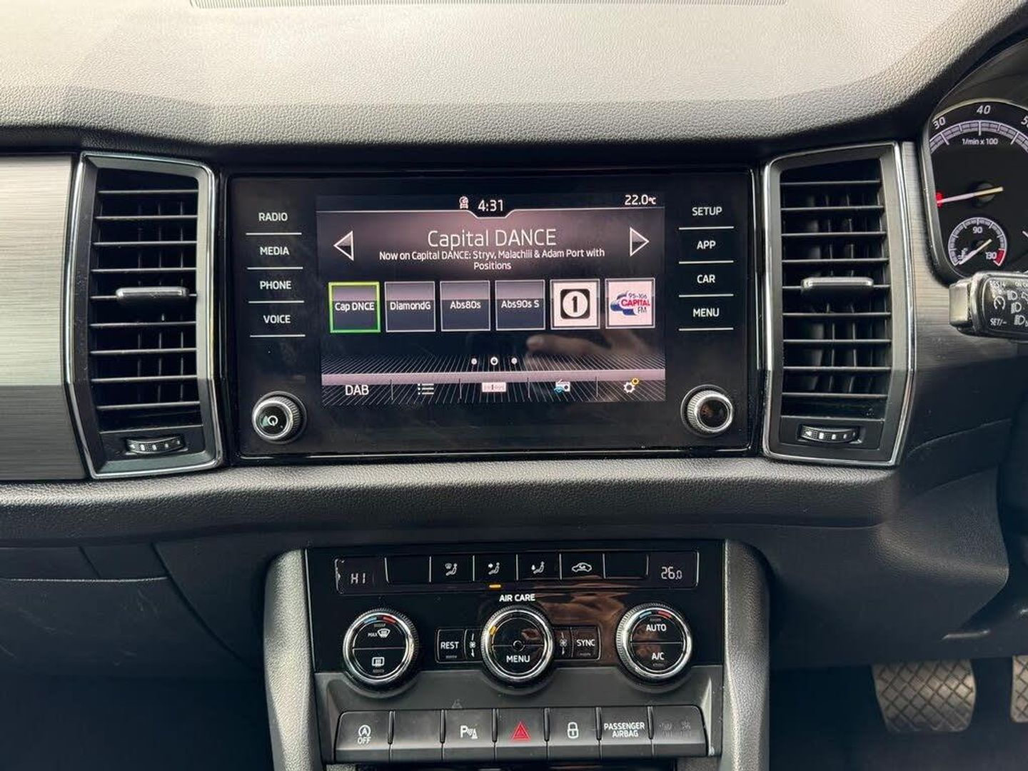 12V Power Socket in Boot, 18in Alloy Wheels - Elbrus, 2 Rails with 2 Hooks Including 4 Hooks for Net Programme, 3-Spoke Leather Multi-Function Steering Wheel, 4 Foldable Roof Handles with Clothes Hooks in Rear, 4 Lashing Points in Luggage Compartment, Aero Rear Window Wiper, Aero Windscreen Wipers with Intermittent Function, Airbags - Front Side, Alarm with Interior Monitoring and Tilt Sensor, Anti-Theft Locking Wheel Bolts, Auto Dimming Rear View Mirror, Auto Door Release and Activation of Warning Lights, Automatic Fuel Supply Cut-Off in Case of Accident, Black Roof Rails, Black Wheel Arch Surround, Bluetooth, Body Coloured Door Mirrors and Door Handles, Bolero Radio, Boot Net Programme, Bottle Holders in Door Panel - Front and Rear, Bumpers - Body Coloured, Care Connect, Centre Console with Open Storage Box - Cup Holder and 12V Socket, Coat Hooks on B Pillar, Courtesy Lights - Front, Covered Storage Compartment on Drivers Side, Cruise Control, DAB Radio, Door Handles - Interior in Chrome, Driver and Passenger Airbag, Dual-Zone Air Conditioning with Humidity Sensor and Control, ESC Electronic Stability Control incl ABS Anti Lock Braking System, Electrically Adjustable and Heated Door Mirrors with Integrated Indicators, Electro-Mechanical Power Steering, Electromechanical Parking Brake with Hill Hold Control, Emergency Brake Signal, Exterior Temperature Gauge, Front Assist including AEB City-Urban, Front Centre Armrest with Storage Compartment - Cupholder and 12V Socket, Front Fog Lights, Front and Rear Electric Windows, Front and Rear Height Adjustable Headrests, Front and Rear Three Point Safety Belt, Gear Shift Lever with Chrome Frame and Black Gloss Insert, Glove Box on Co-Drivers Side with Lid, Glovebox - Illuminated and Cooled, Halogen Headlights with LED Daytime Running Lights, Head and Knee Airbag, Headlights - Washers, Heated Rear Windscreen, ISOFIX Child Seat Fittings on Outer Rear Seats with Top Tether, Illuminated Luggage Compartment, Immobiliser, Invisible Tailpipe, KESSY GO - Keyless Start, LED Rear Fog Lights, LED Third Brake Light in Spoiler, Light Assistant, Light and Rain Sensors, Manually Adjustable Steering Column, Net Compartment on Centre Console on Passenger Side, Non-Smoking Package, Overhead Glasses Storage Compartment, Parking Sensors - Rear, Pedestrian Monitor, Pollen Filter, Radiator Grille Frame in Black Design with Chrome Strip, Reading Lights - Front, Reading Lights - Rear, Rear Centre Armrest and Cupholders, Rear Lights - LED, Rear Seats Divided 60-40 - Foldable with Sliding Adjustment and Backrest Angle Adjustment, Remote Central Door Locking, Roll Up Luggage Compartment Cover with Intermediate Position, Safety Reflectors on Front and Rear Doors, Safety Vest Holder in Door, Seat Belt Reminder for all Seats, Seats - Front Height Adjustment, Small Bags on the Inner Sides of Front Backrests, Small Pockets on the Inner Sides of Front Backrests, SmartLink, Speakers x4 - Additional, Speed Limiter, Storage Compartment in Lower Middle Instrument Panel - Illuminated and Closing, Sun Visor with Illuminated Vanity Mirror, Sunset Glass, TPMS - Tyre Pressure Monitoring System, Third Rear Headrest, Ticket Holder, Tinted Windows, Trip Computer - Maxi-Dot, Two Tone Horn, Tyre Repair Kit, Umbrella in Door Compartment, Warning Lights in Front Doors, Without Engine Designation, Rough Road Package, Driver Alert with Fatigue Sensor, Parking Sensors - Front and Rear, 18in Alloy Wheels - Trinity