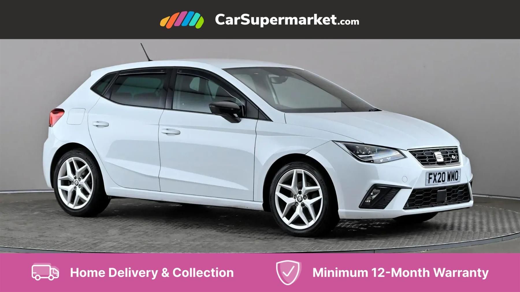 'Lights On' Reminder warning buzzer,Bluetooth Handsfree Phone Connection,Cruise control,Digital clock,Full Link Smartphone Integration with Mirror Link, Apple Car Play, Google Android Auto,Low fuel warning light,Outside temperature gauge,Power Steering,Satellite navigation system with 3D mapping, 8" touch screen, voice control and additional USB port,SEAT Drive profile,SEAT logo boot release,Trip computer,Sports suspension,6 speakers,Auxiliary input socket,CD player,Digital Audio Broadcast (DAB) Tuner,Radio/MP3 player,SD card slot,SEAT USB media cable,Steering wheel mounted controls,USB port,Anti theft roof antenna,Auto dimming rear view mirror,Automatic headlights,Automatic rain sensing wipers,Body colour bumpers,Body colour door handles,Brilliant black door mirrors,Chrome front grille frame,Chrome grille,Coming/leaving home lighting function,Cornering front fog lights,Dark tinted rear windows,Electric folding door mirrors,Electric front windows,Electric headlight adjustment,Electrically adjustable and heated door mirrors,Exclusive FR rear bumper,Full LED headlights,LED daytime running lights,LED tail lights,Rear fog lights,Twin exhaust pipes,3 rear headrests,60/40 split folding rear seat,Air conditioning,Door and steering wheel ice metal decorative inserts,Driver's sunvisor with ticket holder/vanity mirror,Dust/pollen filter,Flat bottomed perforated leather steering wheel with red stitching and FR logo,Front courtesy lights,Front cupholders x 2,Front reading lights,Gear shift indicator,Glovebox,Height adjustable driver's seat,Height adjustable front/rear head restraints,Height adjustable passenger seat,Height/reach adjust steering wheel,Illuminated boot,Instrument lighting with brightness control,Leather handbrake,Multi-colour ambient interior lighting,Nora cloth upholstery,Passenger sunvisor,Rear top tether child seat ISOFIX attachment,Sports seats,Full LED headlight pack - Ibiza,3 point seatbelts on all 3 rear seats,ABS,Active front headrests,Child locks on rear doors,Curtain airbags,Driver/Front Passenger airbags,ESP+EBA,Front assist (AEB),Front passenger airbag deactivation,Front side airbags,Hill hold control,Multi-Collision braking,Rear disc brakes,Seatbelt warning,Tiredness recognition system,Tyre pressure monitoring system,Electronic engine immobiliser,Locking wheel bolts,Remote central locking + deadlocks,Volumetric alarm with back up horn,Leather dashboard,17" Dynamic alloy wheels