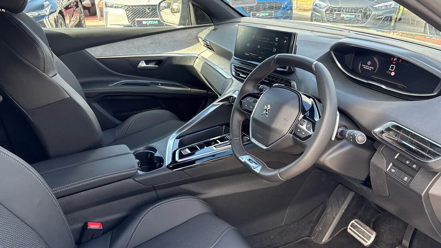 12V Sockets x3 - Front-Rear-Load Area, 3D Connected Navigation, 6-Speaker Radio - MP3 Compatible, Bluetooth Telephone Facility, DAB - Digital Audio Broadcasting, Mirror Screen - Apple CarPlay and Android Auto, Twin USB Charging Sockets - Rear Centre Console, 180 Degree Colour Reversing Camera, Blue Ambient Lighting to Head-Up Instrument Panel, Drive Mode Selection - Eco-Normal-Sport, Exterior Temperature Indicator with Ice Warning, Front Parking Sensors, Multifunction Trip Computer, Rear Parking Sensors, Voice Recognition - Radio-Navigation-Telephony Features, 18in Alloy Wheels - Detroit - Gloss Onyx Black - Diamond Cut, Aluminium Longitudinal Roof Bars, Body Protectors - Wheel Arches and Protection at Bottom of Doors - Black, Dark Tinted Rear Side and Tailgate Windows, Door Mirror Covers - Black Diamond, Electric - Heated and Power Folding Door Mirrors with Courtesy Floor Lighting, Exterior Door Handles - Body-Colour, Front Bumper - Lower Trim in Silver, Front Radiator Grille - Dynamic - Frameless Design, Front Wing Trim - Black with Chrome Detail, Gloss Black B and C Pillar and Aerodynamic Deflector Trim, Gloss Black Rear Cluster Connecting Strip, Gloss Black Windscreen Trim, GT Emblems - Front Wings and Tailgate, Heated Rear Windscreen with Integrated Antenna, LED Side Indicator Lights Integrated into Door Mirrors, One-Touch Electric Front and Rear Windows with Pinch Protection, Rear Number Plate Lights x2, Roof - Black Diamond, Roof and Rear Spoiler - Black Diamond, Side Window Trim - Chrome, Stainless Steel Door Sill Scuff Plates, Stainless Steel Roof Arch Trim, Twin Exhaust Effect Trim, Tyre Repair and Inflation Kit, Automatic Lights and Wipers, Follow Me Home Headlights, Full LED Headlights with Fog Mode, Headlights Left On Audible Warning, Rear LED Peugeot Signature Claw Effect Lights with Daylight Function and Scrolling LED Direction Indicators, Self Levelling Headlights, Air Conditioning - Automatic Dual Zone Climate Control, Blue Ambient Lighting for Central Connecting Zone, Blue Ambient Lighting to Front Door Panels and Central Cupholders, Carpets - Mistral Black, Central Front Armrest with Butterfly-Wing Opening and Illuminated Storage Compartment, Dashboard Trim - Satin Chrome, Digital Instrument Panel Trim - Satin Chrome, Flocked Front Door Pocket Interior with Blue Ambient Lighting, Flocked Glove Box Interior, Floor Mats - Mistral Black with Aikinite Contrast Stitching, Frameless Electrochrome Rear View Mirror - Auto Dimming, Front Central Console with Two Cup-Holders, Front Door Panel Recess Trim - Satin Chrome, Front Interior Light with Reading Spotlights x2 and Rear Interior Light with Timer, Front Optimised Safety Headrests and Rear Retractable Headrests - x3 - Height-Adjustable, Front Windscreen Wiper with Magic Wash Cleaning System, Grab Handles x4 - Retractable - Damped, Illuminated Glove Box - Central Storage Area and Load Area, Illuminated Vanity Mirrors, Interior Door Handles - Satin Chrome, Leather Steering Wheel - Full-Grain Perforated with Aikinite Stitch Detail and Satin Chrome GT Emblem, LED Interior Lighting - Roof, Map Pockets on Front Seat Backs, Peugeot i-Cockpit, Reading Spotlights x2 in Rear, Rear Centre Console Ventilation System, Rear Coat Hooks x2, Roof Lining - Mistral Black, Row 2 Underfloor Storage Compartments, Scorpions Tail and Toggle Switch Trim - Satin Chrome, Seating - Driver and Front Passenger Seat Height Adjustment, Seating - Driver Seat Manual Adjustment - Longitudinal and Back Rest Angle, Seating - Front Passenger Seat - Flat Folding with Picnic Table, Seating - Front Passenger Seat Manual Adjustment - Longitudinal and Back Rest Angle, Seats - Drivers Lumbar Support, Third Row Seats - Can be Stored Under Bootfloor or Removed Completely, Tray Tables on Front Seat Backs, Window Blinds - Row 2, Electric Power Steering with Reach and Rake Adjustable Steering Column, ABS - Anti-Lock Braking System with REF - Electronic Braking Distribution and AFU - Emergency Braking Assistance, Airbags - Adaptive Driver and Front Passenger, Airbags - Driver and Front Passenger Side, Airbags - Front and Rear Curtain, Alarm, Automatic Door Locking When Moving Off, Automatic Hazard Light Activation Upon Heavy Brake Application, AVAS - Acoustic Vehicle Alerting System, Drive Assist Plus Pack, DSC - Dynamic Stability Control and ASR - Electronic Anti-Skid System, Electric Child Locking Functionality on Rear Windows and Doors, Electric Parking Brake includes Hill Assist, Electronic Code Immobiliser, Front Three-Point Retractable Seatbelts - Height-Adjustable with Pre-Tensioners and Force Limiters, Horn, ISOFIX Child Seat Fittings - x3 - Second Row Rear Seats, PEUGEOT Open and Go System, Rear Three-Point Retractable Seatbelts x3 - with Pre-Tensioners and Force Limiters in the Outer Rear Seats, Rear Windscreen Wiper Triggered Automatically in Reverse Gear, Remote Central Locking - Two Remotes, Seatbelt not Fastened Audible and Visual Alert for Front Seats, Seatbelt Unfastened on the Move Audible and Visual Alert for Front and Rear Seats, Speed Limit Recognition and Recommendation